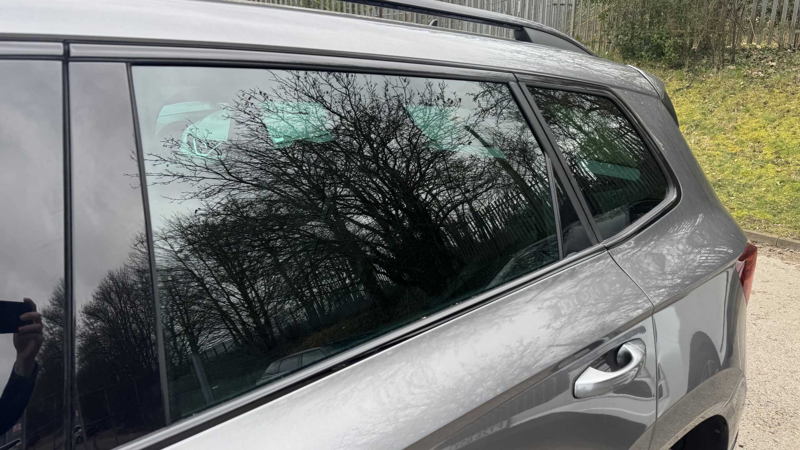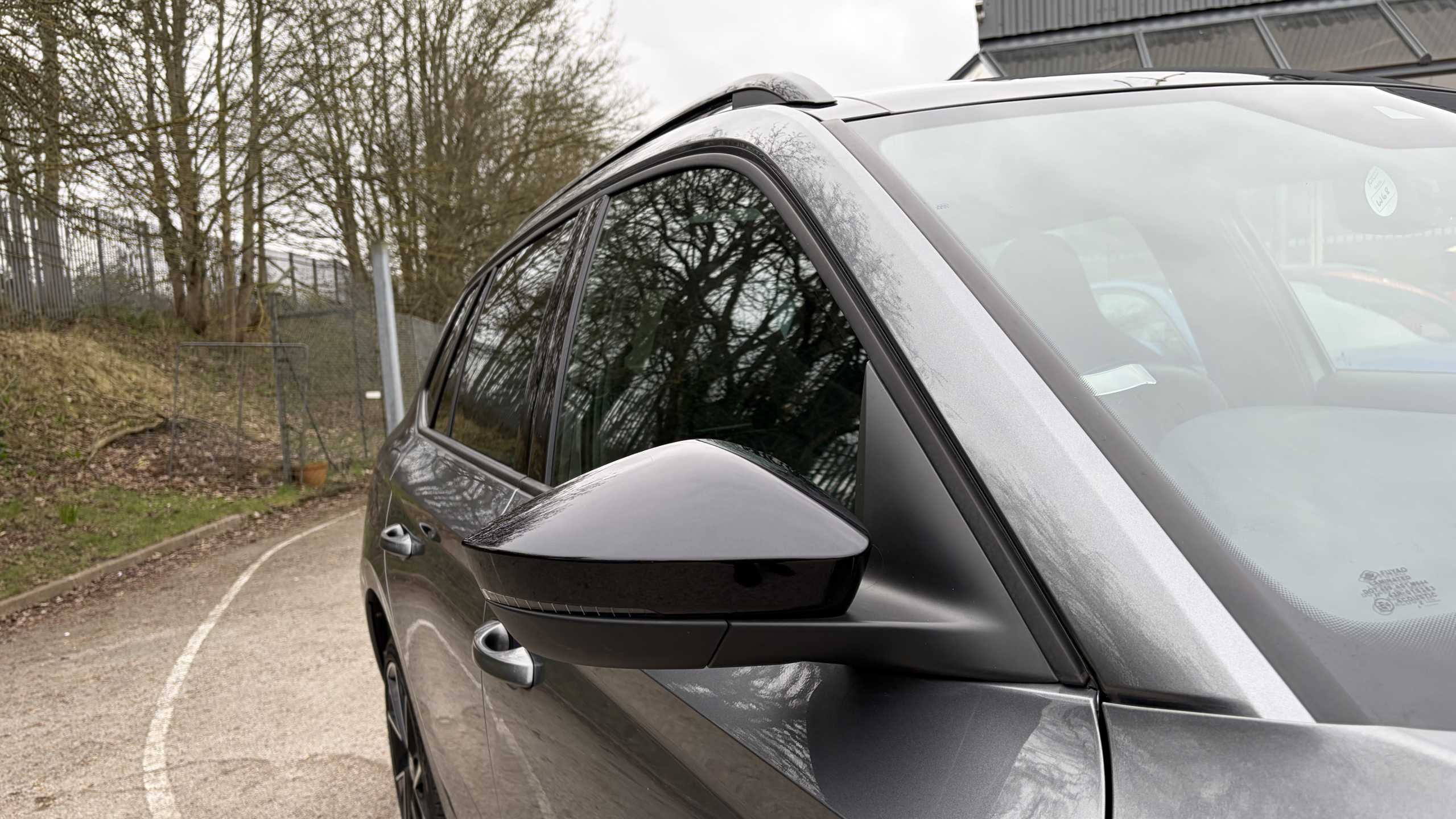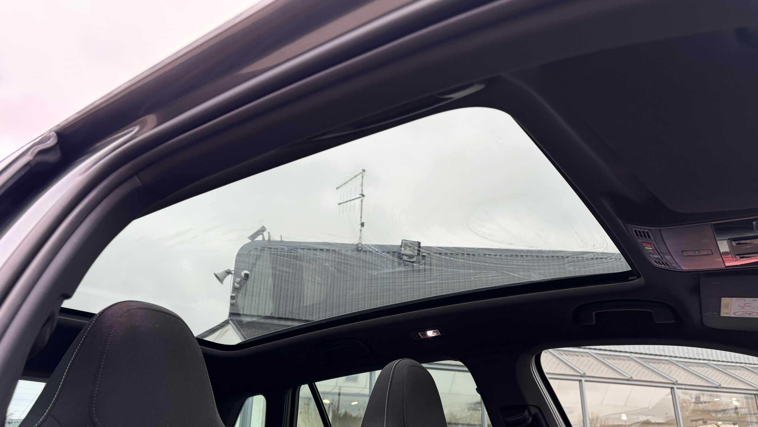 "Fixed panoramic sunroof with black roof rails",