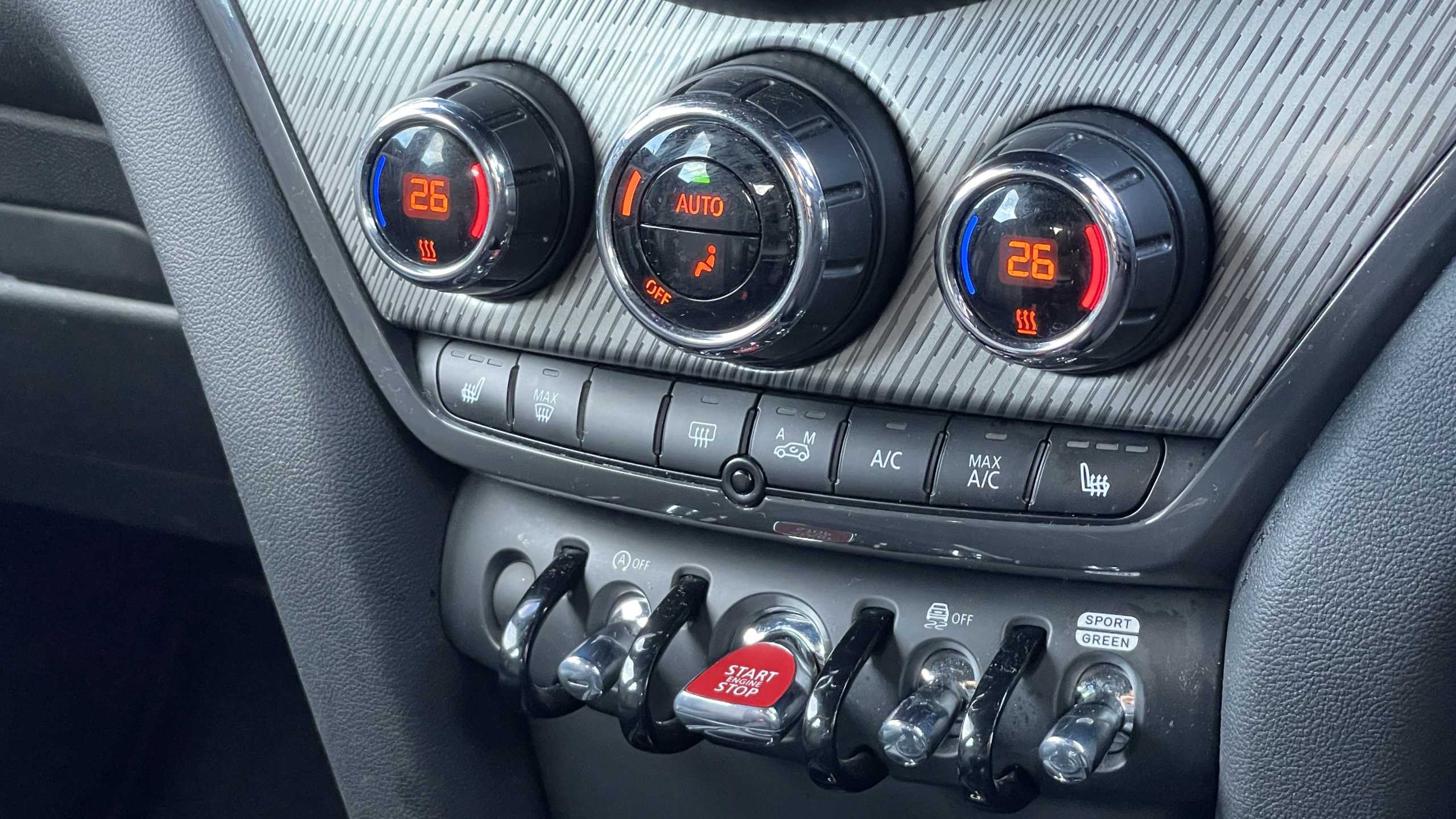 "Piano keys: Gloss black and chrome toggle switches to access main functions of the vehicle and touchscreen functions",