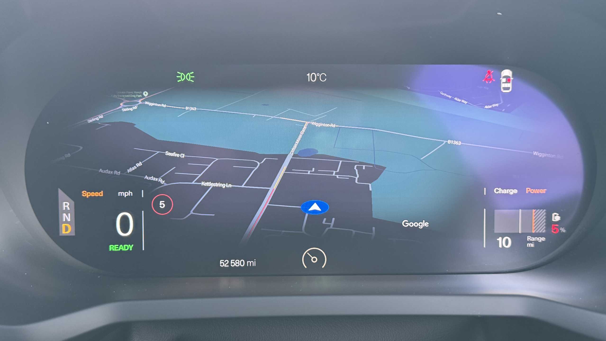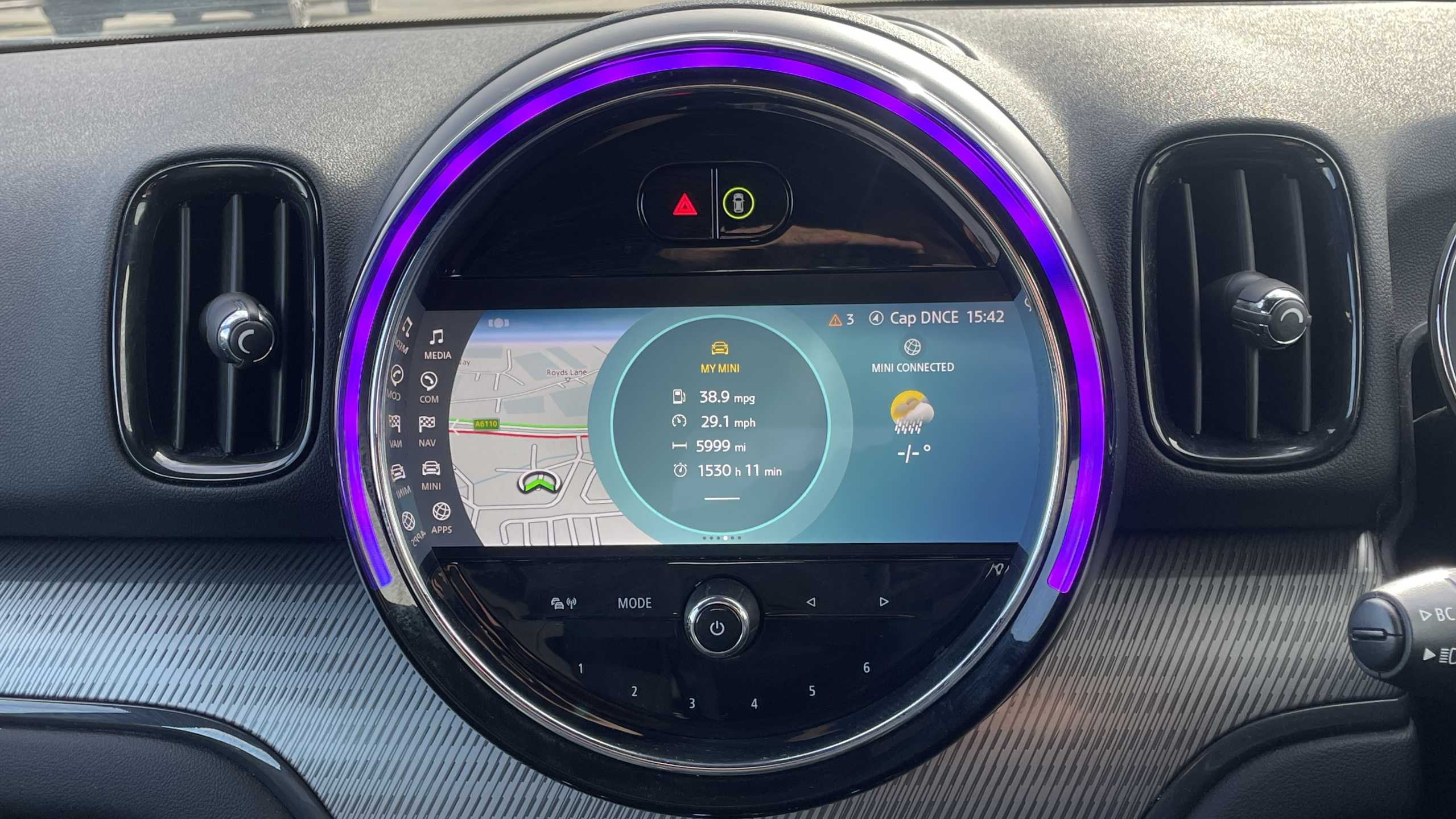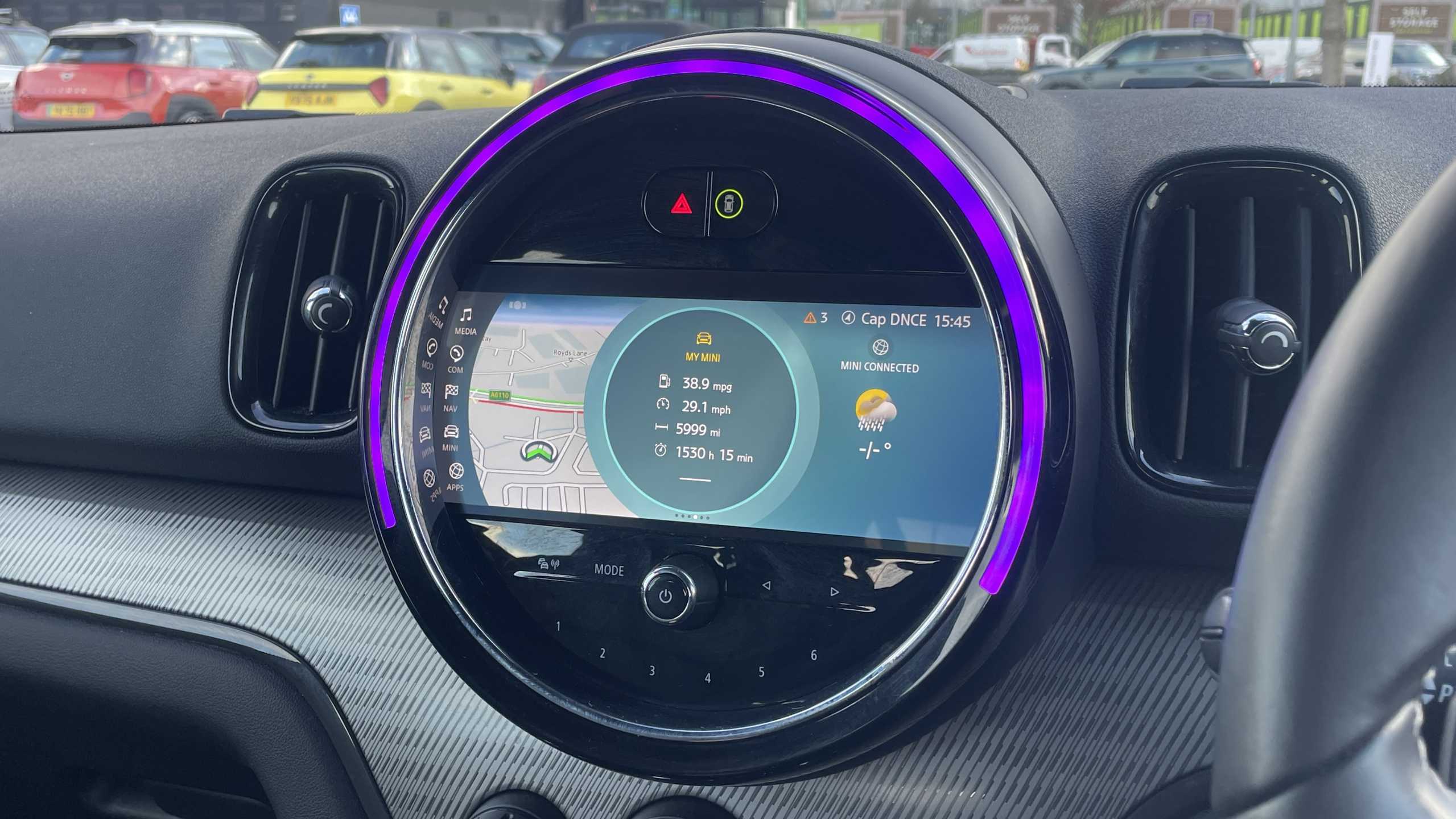 "Exterior temperature indicator with ice warning",