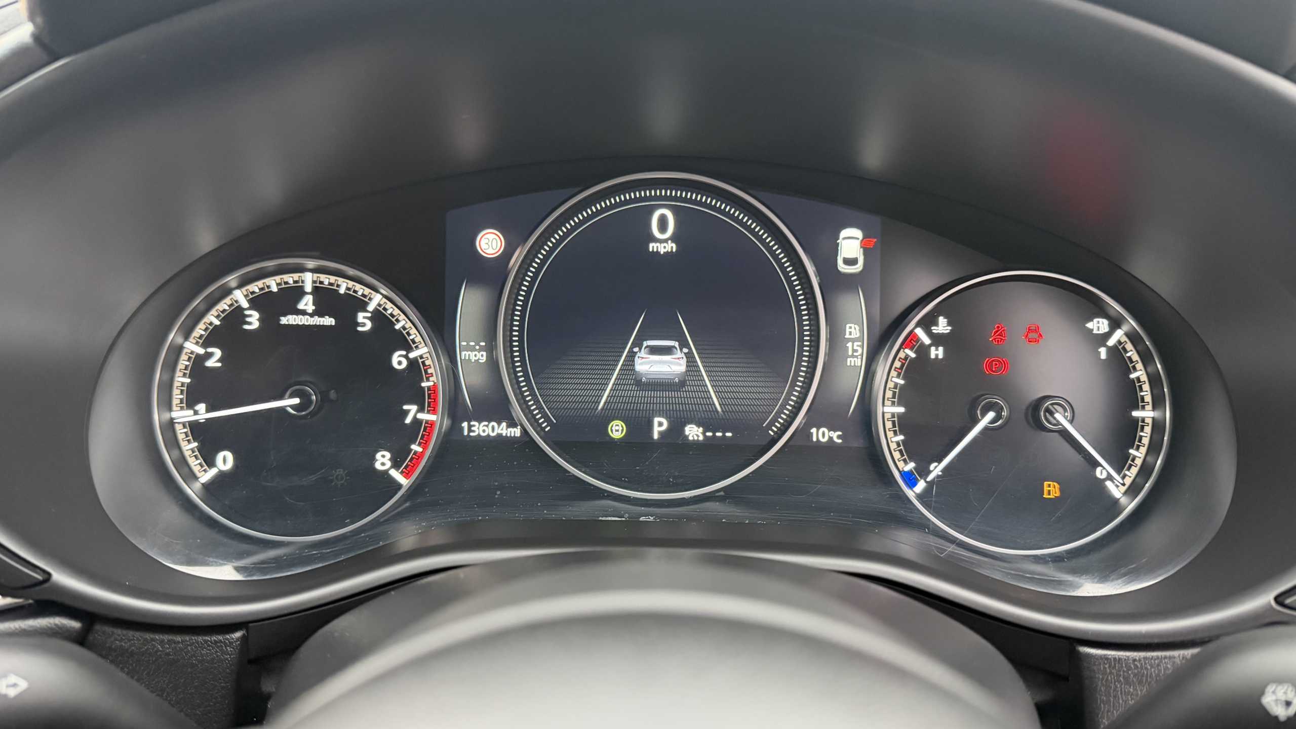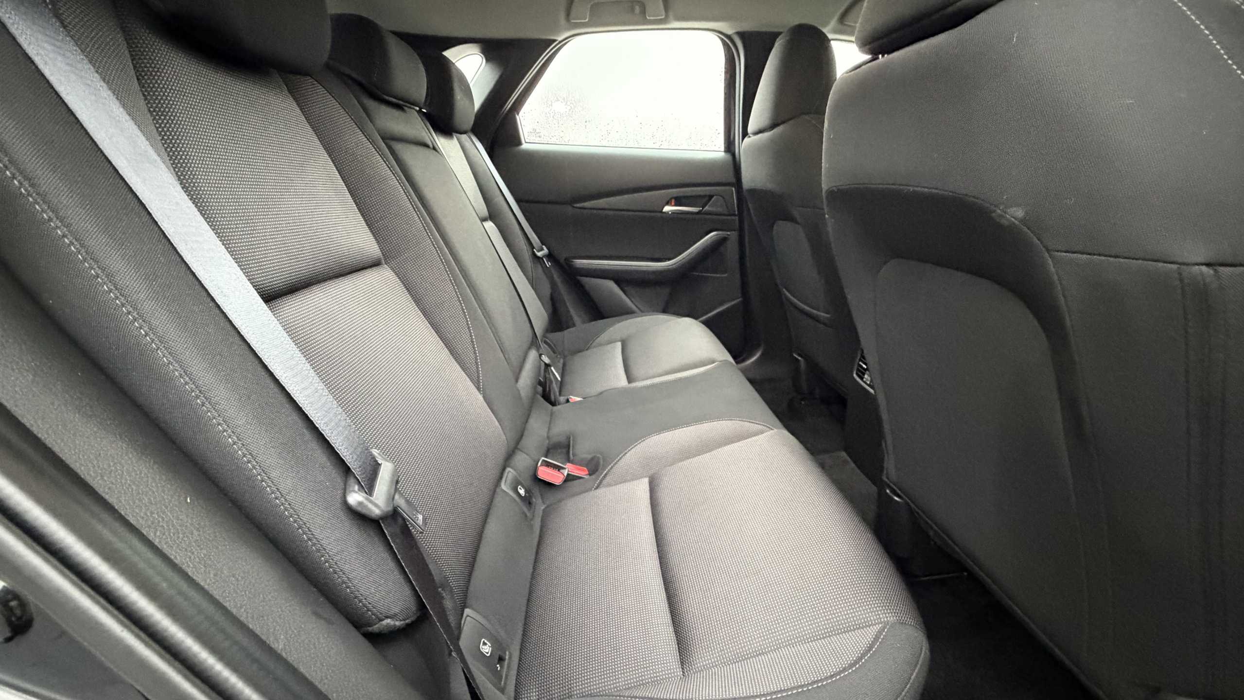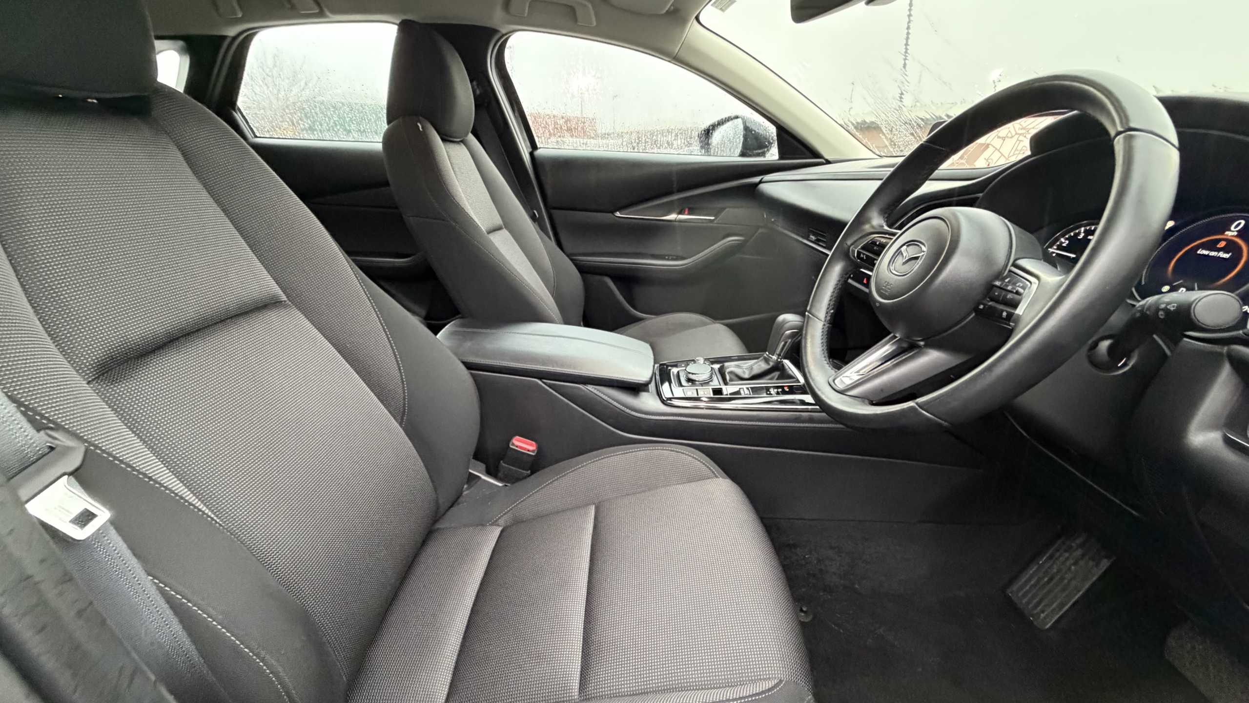 "features": "10.25\" display with Mazda Connect infotainment, 7\" TFT Colour driver instrument panel display, Adaptive cruise control (Mazda radar cruise control) features stop and go, Blind spot monitoring with rear cross traffic alert, Drive mode selector, Driver attention alert system, E-call with GPS, Emergency stop signalling system, Engine start/stop button, Front and rear parking sensors, Integrated Alexa Voice Assistant, Integrated bluetooth, Integrated Mazda navigation system, Intelligent speed assist, Lane keep assist system (LAS) with Lane departure warning system (LDWS), Mazda connected services, PAS, Qi wireless charging, Reversing camera, Service indicator, Tailgate, Traffic sign recognition, Trip computer, Windscreen projected colour active driving display (HUD), Wireless Apple CarPlay/Android Auto, Cylinder Deactivation, i-stop, 2 x USB Type-C inputs, AM / FM / DAB radio with 8 speakers, Multimedia Commander including separate volume dial, Steering wheel mounted audio/bluetooth controls, B-pillar and C-pillar garnishes in satin black finish, Auto dimming driver's door mirror, Auto dimming rear view mirror, Body coloured, electrically adjustable, heated auto power folding door mirrors with integrated indicators, Chrome finish signature wing in front grille, Coming/leaving home lighting function, Dual bright finish exhaust tip trim, Dusk sensing headlights, Electric front/rear windows with one touch auto up/down, Front kodo turn signal, Gloss black rear roof spoiler, LED auto headlight levelling, LED headlights with halogen daytime running lights and high beam control, LED rear combination lights, Rain sensing front wipers with adjustable speed and intermittent wipe, Rear fog lights, Rear side wing doors, Rear wiper, Satin black front grille, Third brake light, 12V power outlet in centre console, 3 seat bench in 2nd row, 60/40 split fold down rear seats, Cloth upholstery with interior accents, Dark cloth door panel inserts, Dashboard, door cards and front centre armrest in black cloth, Driver and front passenger visors with covered vanity mirror and driver ticket holder, Driver seat manual slide, recline, height and seat tilt adjust, Driver, front passenger and two rear door storage, Driver, Front passenger and two rear grab handles with coathooks, Dual zone climate control air conditioning with rear air vents, Folding rear centre armrest with two cup holders, Front and rear (x3) head restraints, Front and rear LED lighting, Front armrest, Front centre storage with two cupholders, Front passenger seatback pockets, Front passengers seat manual slide, recline and height adjustment, Gear shift indicator, Glovebox illumination, Heated front seats with 3 stage setting, ISOFIX child seat anchorage points attached on outer rear seats, Leather wrapped gear shift knob, Leather wrapped steering wheel with telescopic and tilt adjustment, LED luggage compartment lighting, Light roof headlining and pillars, Roof mounted sunglasses holder, Single front passenger seat, 3 point ELR front seat belts x2 with pretensioners, 3 point ELR rear seat belts, Anti-lock braking system (ABS), Drivers knee airbag, DSC - Dynamic Stability Control, Electronic parking brake with auto disengage function and auto hold function, Front and rear curtain airbags, Front dual stage driver and single stage front passenger airbags, Front passenger airbag cut-off switch, Front side airbags, Front smart city brake support, G-Vectoring control plus, Hill launch assist, Manual child lock in rear doors, Mild Hybrid system with regenerative braking, Seatbelt reminder for driver/front passenger and rear seats, Traction control system (TCS), Tyre pressure monitoring system (TPMS), Remote central locking with deadlocking and automatic door lock when driving, Smart keyless entry, Thatcham accredited alarm and immobiliser, 16\" Grey metallic alloy wheels, Emergency tyre repair kit, ",