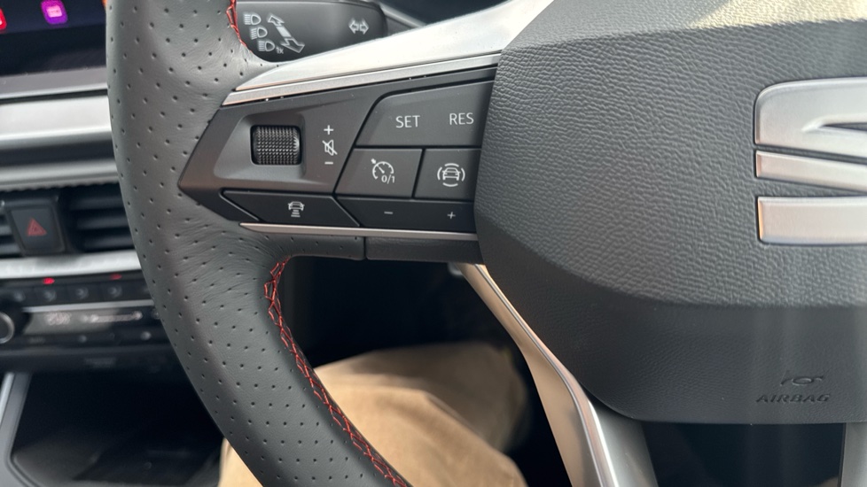 "Leather steering wheel with moonlight bezel",