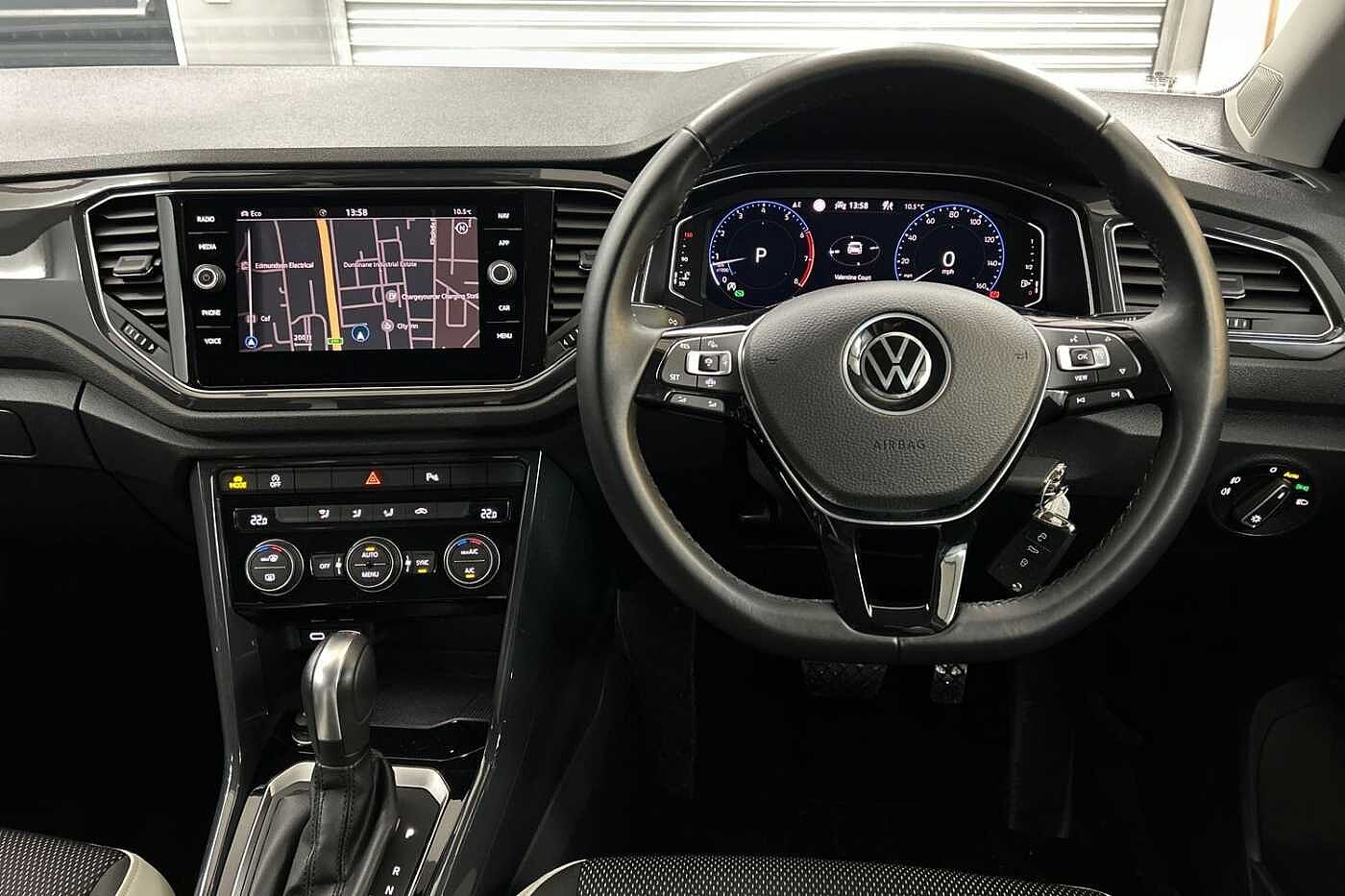 "features": "Adaptive cruise control and speed limiter, Bluetooth mobile phone interface, Brake pad wear indicator, Car information display, Driver alert system with fatigue detection, Driver tips and journey analysis, Emergency call service, Modified key software - reduce switch off time for key status change to Long no motion, Multifunction computer with visual gear change recommendation for fuel consumption, Multifunction front facing camera, Park assist including front and rear parking sensors, Speedo and rev counter, electronic odometer, trip, service interval display and exterior temperature gauge, Start/stop system with brake energy recovery, Tailgate/trunk lid release from outside, Warning sound and light for front seatbelts unfastened, Diversity antenna for FM reception, Music playback - MP3, WMA and AAC files, SMS functionality - read, compose and send SMS messages using touch-screen display, Title and cover art display, USB-C Interface and USB charging socket, We Connect and We Connect Plus functionality, Ambient lighting with logo projection, Auto dimming interior rear view mirror, Automatic hazard lights activation under emergency braking, Automatic headlight control with LED separate daytime running lights with coming/leaving home function, Black roof, Body colour door handles, Body colour rear spoiler, Body coloured bumpers and radiator grille with chrome trim and front fog lamps with chrome bezel, Chrome effect left and right trapezoid exhaust tailpipe fascia surround, Dark red rear combination lamps in LED technology, Dusk sensor, Exterior mirrors aspherical on driver side, convex on front passenger side, Headlight range control, Heat insulating glass windscreen, High level 3rd brake light, LED Headlights, LED rear number plate lights, Power operated canvas convertible top, Power windows with comfort operation and circuit breaker, Rain sensor, Rear boot, Rear exhaust tailpipe, Rear fog light on one side and reversing lights on both sides, Remote electrically foldable door mirrors, puddle lights and reverse activated passenger door mirror, Volkswagen roundel, Windscreen wiper with intermittent wipe light, Without exterior ambient lighting, 12V socket in centre console storage area, 2 LED front reading lights, 2 seat bench in 2nd row, 50:50 Split folding rear seat backrests with fixed rear seat bench, Air care climatronic air conditoning system with active combination filter and 2-zone temperature control, Black door lower parts with chrome trim, Chrome plated surround to light, mirror and window switch, Door and side trim panel with leatherette insert, Easy entry backrest release, Front and rear carpet mats with black stitching, Front centre armrest, Front cupholders x 2, Front door pockets, Front seat back storage pockets, Heated multi function steering wheel, Height/reach adjust steering wheel, Instrument lighting, white adjustable panel illumination, Interior light delay, Interior light in footwell, Interior lighting with switch off delay and contact switches on all doors, Interior white ambient lighting and surround lighting, Isofix child seat preparation, Lockable glove compartment with light, Luggage compartment lighting, Rear head restraints, Single front passenger seat, Sun visors with illuminated vanity mirrors, Driver assistance pack without proactive passenger protection - T-Roc cabriolet, 2 x 3-point seatbelts/outer rear seats with ECE label, Driver and front passenger airbag with front passenger airbag deactivation, Driver and front passenger safety-optimised head restraints, Drivers seatbelt reminder, Electronic parking brake, Electronic Stability Control (ESC) including ABS, ASR and EDL, Front and rear disc brakes, Front assist with autonomous emergency braking, Pedestrian monitoring, Predictive pedestrian protection, Rigid safety cell with front and rear crumple zones, Side airbag/thorax airbag system, for front passengers, Single tone horn, Three point height adjust front seatbelts + pretensioners, Tyre pressure loss indicator, Volkswagen roadside assistance, Anti-theft alarm system with interior protection and central locking system with SAFELOCK, radio remote control and 2 remote control folding keys, Electronic engine immobiliser, Trims for alloy wheels, ",