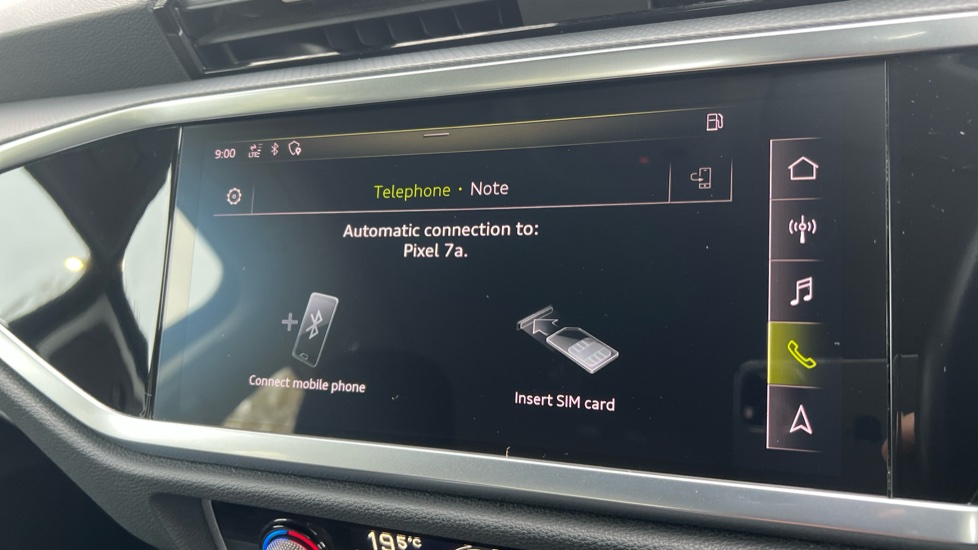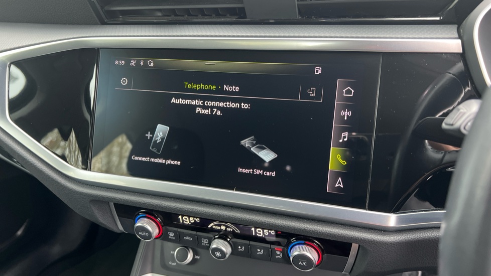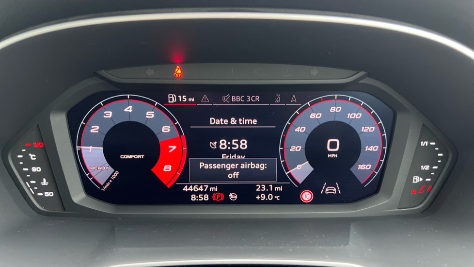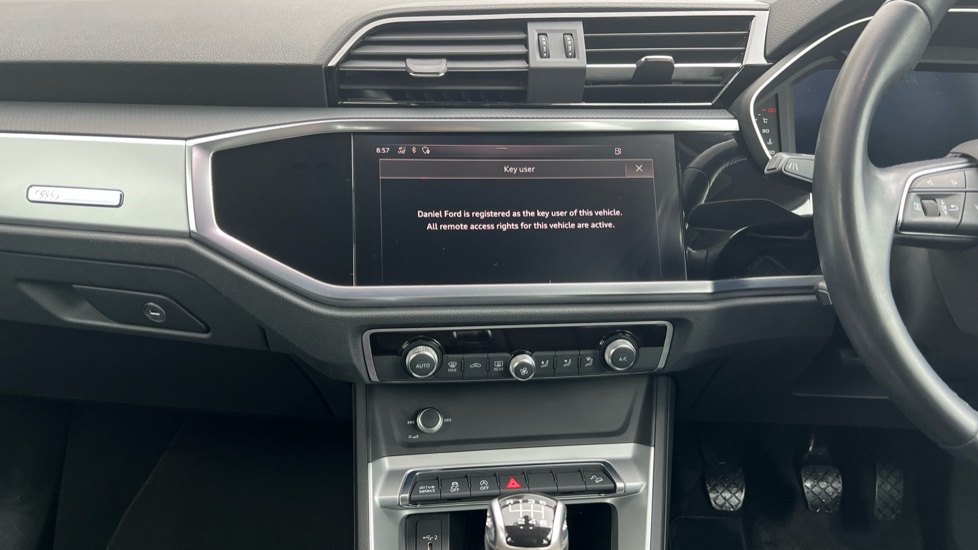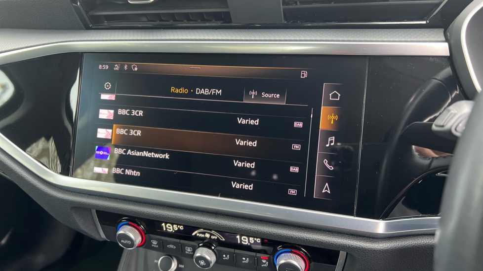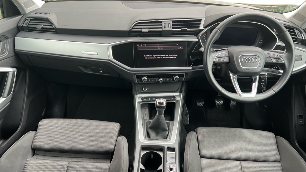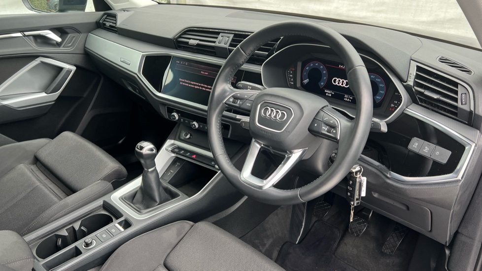 "features": "Audi connect safety and service (e-call), Audi drive select, Audi lane departure warning, Audi side assist, Audi smartphone interface includes wireless Apple carplay/Android Auto, Audi Virtual Cockpit - 10.25\" display, Bluetooth interface, Camera based traffic sign recognition, Cruise control + speed limiter, MMI Navigation Plus with high resolution 10.1 inch touchscreen colour display, Power operated tailgate, Progressive steering, Rear parking sensors, Service interval indicator, Start stop system with recuperation, Voice control system with natural language interaction, Sports suspension, 1 x USB type C and 1 USB type A charging points, 6 passive loudspeakers, DAB digital radio module, Acoustic windscreen, Aluminium window trim, Auto dimming frameless rear view mirror, Bumpers and underbody protection in contrasting manhattan grey paint finish, Diffuser grille in grained matt black, Diffuser trim in manhattan grey metallic, Door sill trims with illuminated aluminium inlay, Electrically folding, adjustable and heated door mirrors with integrated LED side indicators and kerb view function for passenger side, Front and rear electric windows, Front fog lights, Front side air inlets in Manhattan grey metallic, Grille surround in aluminium silver matt, High gloss black finish B and C pillars, Honeycomb design radiator grille in matt titanium black, LED headlights with LED daytime running lights and dynamic rear indicator, LED rear lights, Rain and light sensors, 12V socket in rear centre console, 40:20:40 folding with manual adjustment for 60:40 forwards/backwards position and backrest angle, Adjustable rear seat bench/backrest, Dual zone electronic climate control, Front and rear floor mats, Front and rear headrests, Front and rear roof module including reading lights, Front centre armrest, Glove compartment lighting, Height and reach adjustable steering wheel, ISOFIX child seat mounting for front passenger with airbag deactivation and outer rear seat including top tether attachment point for outer rear seats, Luggage compartment light, Lunar silver cloth headlining, Manual front seats with height adjustment, Stainless steel luggage compartment sill finisher, Non smoking pack - Q3, 3x3 point rear seatbelts, 6 airbags - Driver, front passenger, curtain and side windows, Audi pre-sense front with pedestrain and cyclist recognition, Electrically operated child locks on rear doors, Electromechanical parking brake, Electronic stabilisation control including ABS, ASR and EDL, Hill descent control, Hill hold assist, Pre sense basic, Seatbelt monitoring, Tyre pressure warning, Warning triangle and first aid kit, Anti theft alarm, Anti theft wheel bolts, Remote central locking, Detail dashboard around MMI touch colour display in glass look, black with surround in aluminium look, Micrometallic silver inlay, ",
