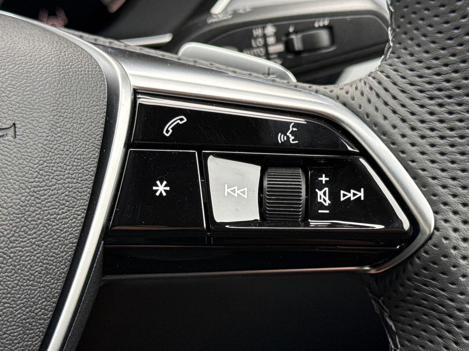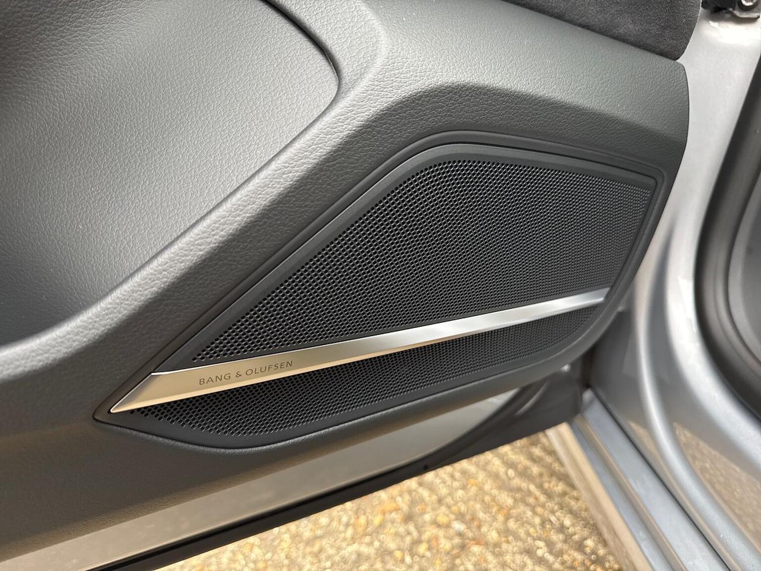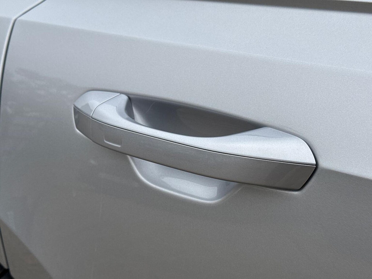 "Interior door handle in matte chrome",