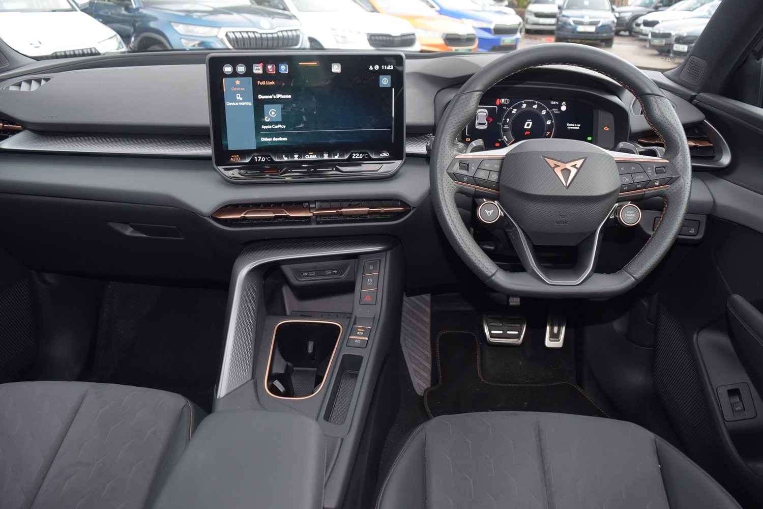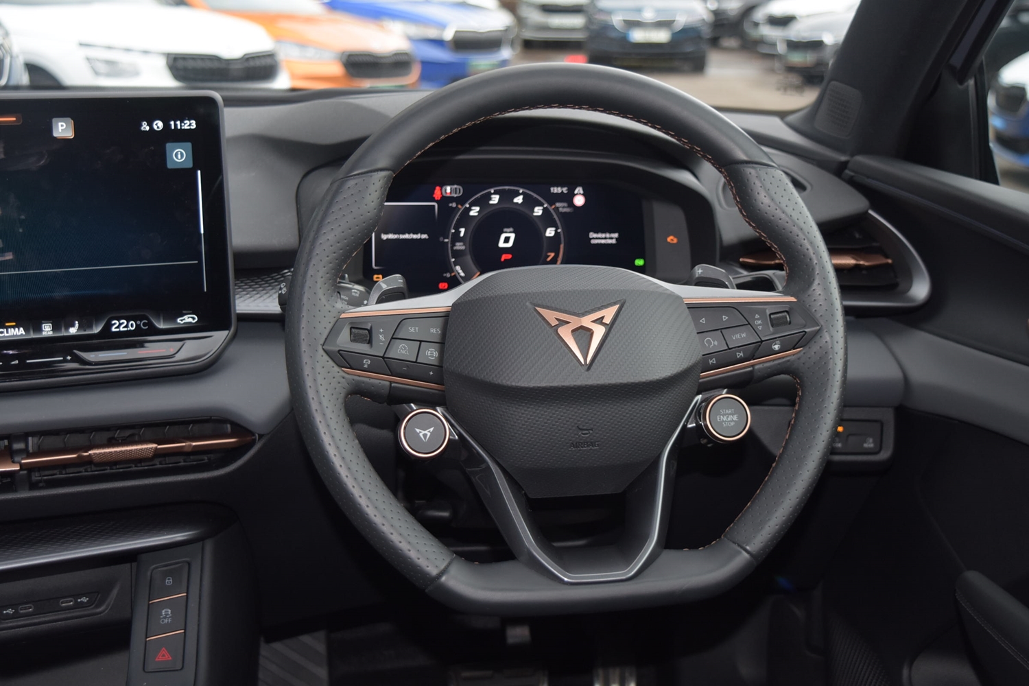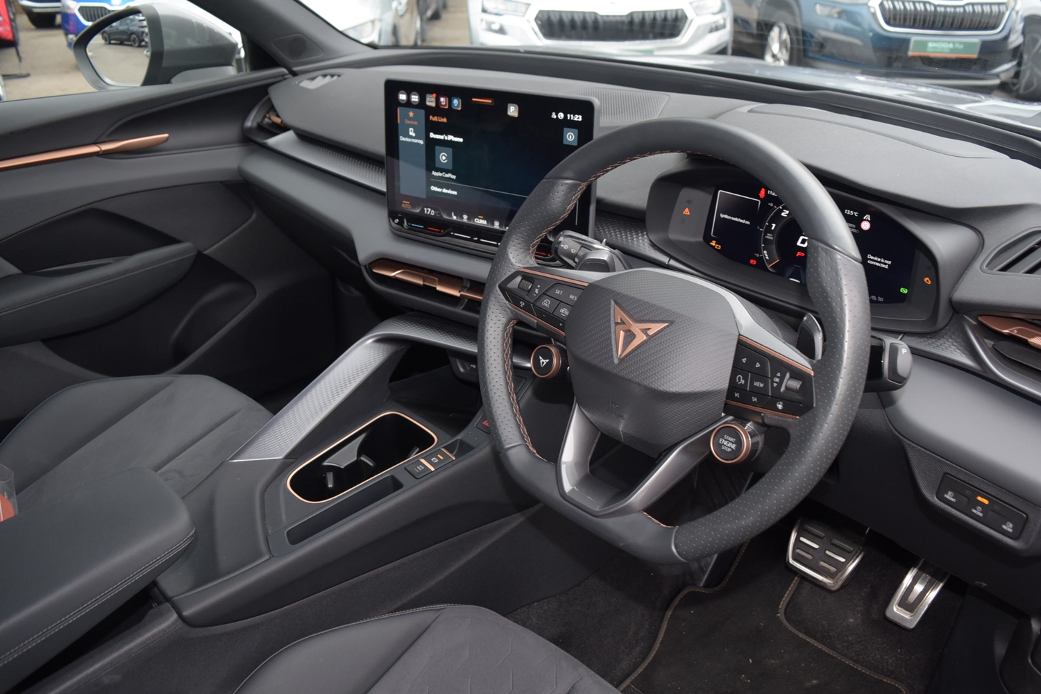 "features": "10.25\" digital cockpit and configurable dashboard, Adaptive cruise control with follow-to-stop and speed limiter, Advanced driver alert system, Advanced lane assist with semi-automatic vehicle control in a medical emergency and traffic jam assist, Driving profile selection and conventional shock absorber, Dynamic road sign display, E-call, Electric tailgate with virtual pedal, Emergency steering support with turn assist, Four x USB Type C ports (2 in front and 2 in rear), Front and rear parking sensors, Front assist (Forward collision warning with automatic braking) with multifunction camera and front cross traffic assist, Head up Display, Intelligent park assist, Media system with Nav - 12.9\" touch display, voice control, full link phone (wired/wireless), DAB and Steering wheel mounted controls, Rear traffic assist, Side and exit assist, Speed sensitive power steering, Start/stop system with regenerative braking, Top view camera (front camera, rear camera, 2 side cameras), Wireless phone charger, Auto dimming rear view mirror, Black roof rails, CUPRA 3D rear lights with ceremony & swiping indicator and illuminated logo, Dark tinted rear windows, Daytime running lights with automatic headlight control and Coming and Leaving home function, Door mirrors with memory function and lowing function on passenger mirror, Dynamic headlight range control, Electric front/rear windows, Electrically adjustable, heated and folding door mirrors, Front fog lamps with cornering function, Heat reflecting windscreen, High beam assist, LED headlamps with signature \"CUPRA LED\", Rain sensing wipers, Rear fog light on one side, back up light on both sides, Rear side wing doors, Rear wash/wipe, Third brake light, Welcome lights (within exterior mirror housing), 3 seat bench in 2nd row, Black roof lining, Cupra sports pedals, Dinamica cloth upholstery, Driver seat memory function, Electrically adjustable front seats including lumbar support, Front and rear head restraints, Front and rear reading lights X 4, Front centre armrest, Heated front seats, Heated leather wrapped multi function sports steering wheel with tiptronic, Illuminated interior front door sills, Isofix, Operating voltage 12V, Single front passenger seat, Smart wraparound interior lighting, Sunvisors with illuminated mirror, Three zone climate control with control panel in rear, Unsplit rear seat bench, split folding backrest, with centre armrest, Variable luggage/load compartment floor, 3 point seatbelts in front with pretensioner and electric height adjustment, 3 point seatbelts on all rear seats, Brake control system - ESC and brake booster, Child proof door locks, Driver and front passenger airbags, Electronic parking brake, Front and rear disc brakes, Front interaction airbag, Front passenger airbag deactivation switch, Front side airbags with curtain airbags, Pre-crash front and rear seat belt tensioner, window closure and hazard lights, Tyre pressure monitoring system, Visual and acoustic seat belt reminder, electric contact in front and rear, Anti theft alarm, Keyless locking and starting system with keyless access, Locking wheel bolts, Black decorative trims, Chrome interior detailing, 19\" Spectrum exclusive machine alloy wheels, Tool kit, ",