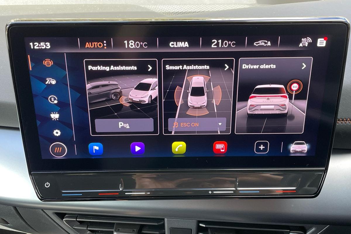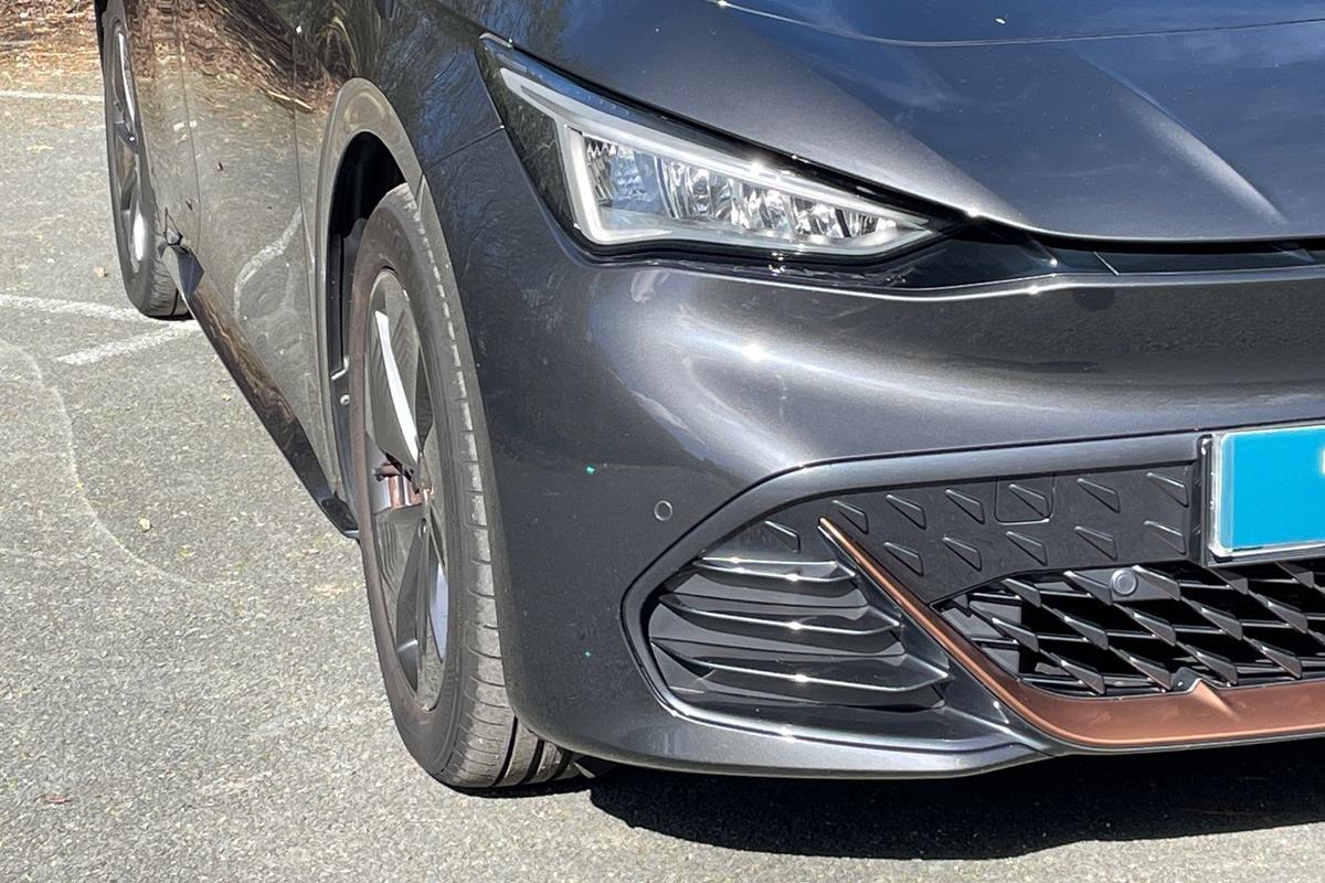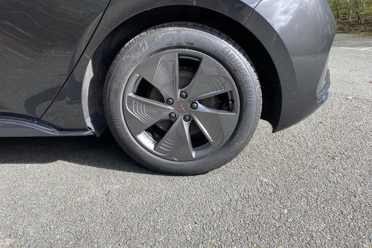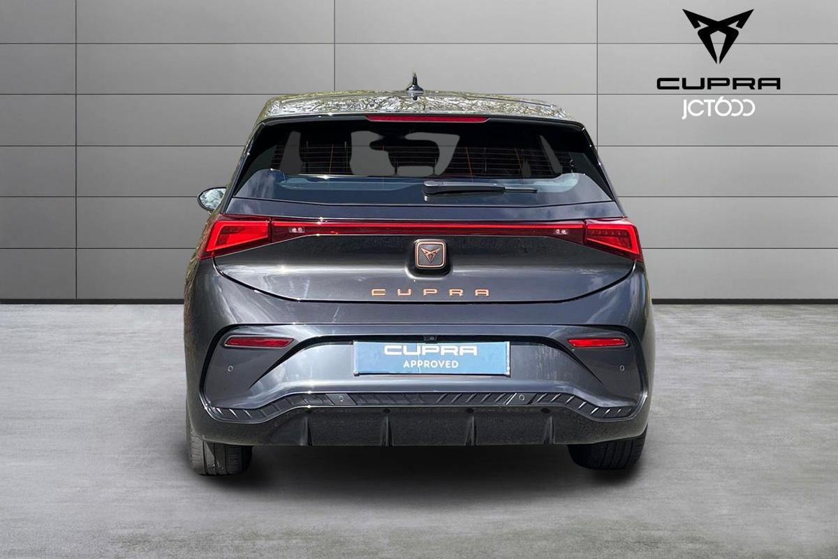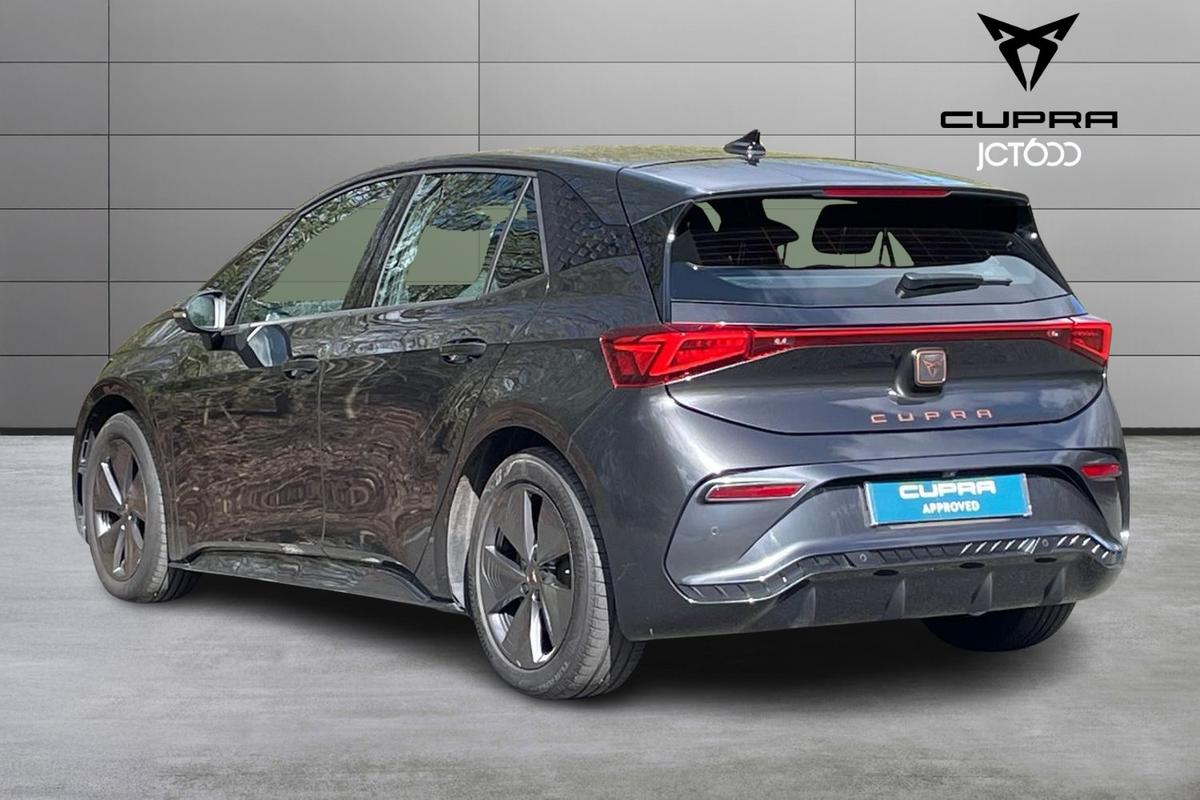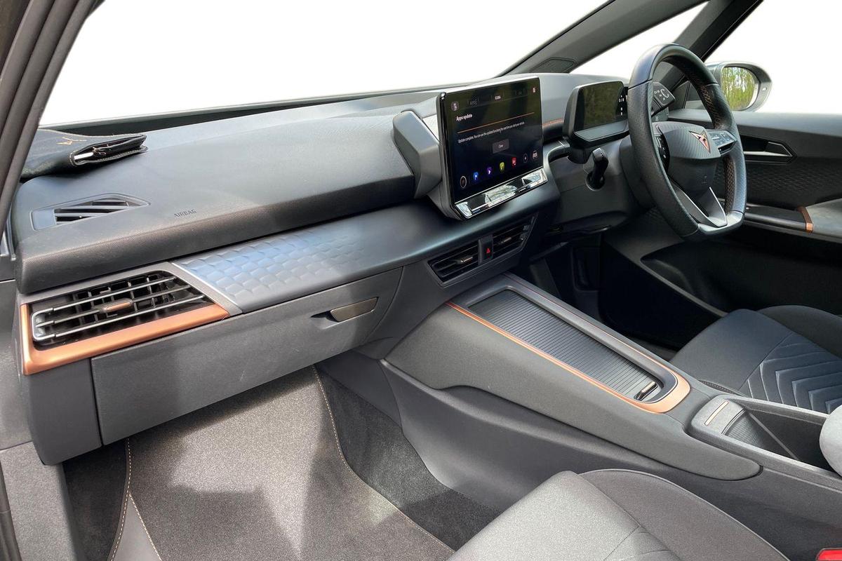 "features": "5.3\" digital cockpit with 12\" central display infotainment system, Bluetooth without wireless charger, Driving profile selection - Range, Comfort, Performance, Individual, Dynamic steering, e-call service, Emergency steering support with turn assist, Forward collision warning with automatic braking, Front/rear park distance control, Lane assist, Tailgate, Voice assistant, Wireless full link smartphone integration, Shock absorption in front, Sports rear shock absorption, 2x USB sockets in front, 2x USB sockets in rear, charge only, DAB (Digital Audio Broadcasting) and AM/FM radio, Acoustic windshield, Auto dimming rear view mirror, Daytime running lights, Electric adjustable/heated/folding door mirrors, Full LED headlights, Grey exterior mirrors, Heat insulated glass, LED 3rd brake light, LED rear lights, Rear side wing doors, Rear wiper, Transport protection film, Variable intermittent wiper, Welcome home function and adverse weather function, Windshield wiper with light/rain sensor, 3 seat bench in 2nd row, Aluminium pedals, CUPRA emblem on steering wheel, Dual zone climate control, Electric auxiliary air heater, Heated leather wrapped multi function steering wheel, Integrated front head restraints, ISOFIX points in outer rear seats with top tether anchorage points, Manual height adjustable front seats, Multi-colour ambient interior lighting, Rear headrests, SEAQUAL Yarn cloth upholstery, Single front passenger seat, Sunvisors with illuminated mirror, Unsplit rear seat bench, split folding backrest, without centre armrest, Pilot M pack - Born, 3 point seatbelts on all rear seats, Driver and front passenger airbags with front passenger airbag deactivation, side airbag in front with curtain airbag and front interaction airbag, Extended safety system with proactive passenger protection system, Manual child lock in rear doors, Tiredness recognition system, driver alert system, Tyre pressure monitoring system, Visual and acoustic seat belt reminder, Anti theft alarm system with interior monitoring in cab, backup horn and towing protection, Anti theft wheel bolts, Keyless go central locking system, 18\" Cyclone alloy wheels, Tool kit, Tyre repair kit, ",