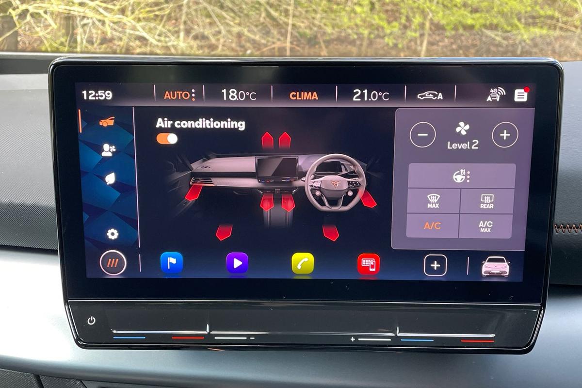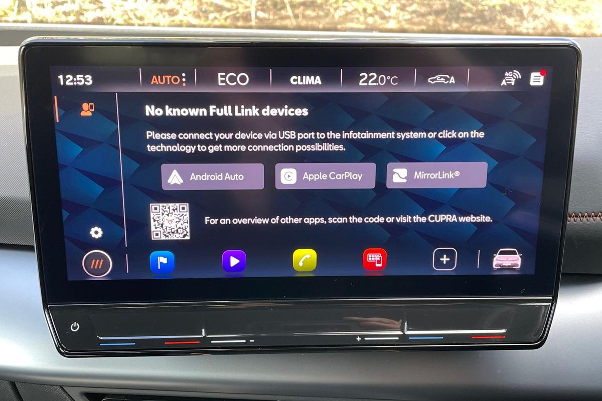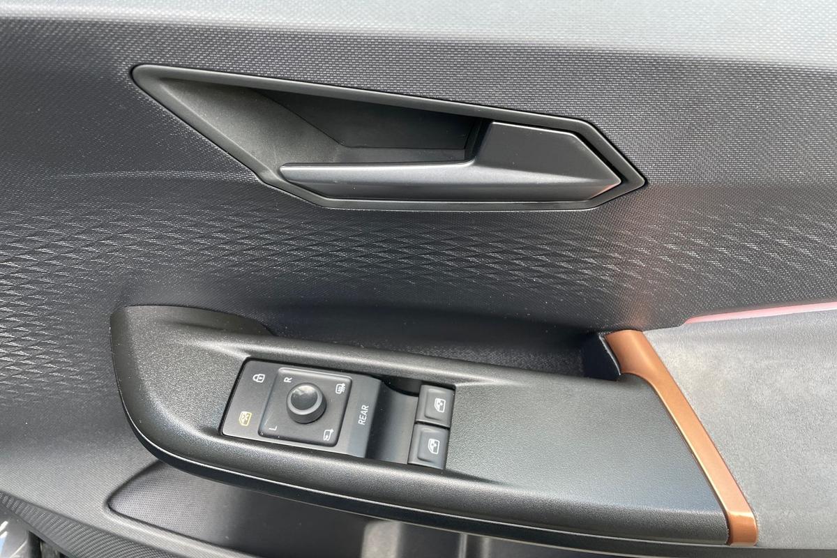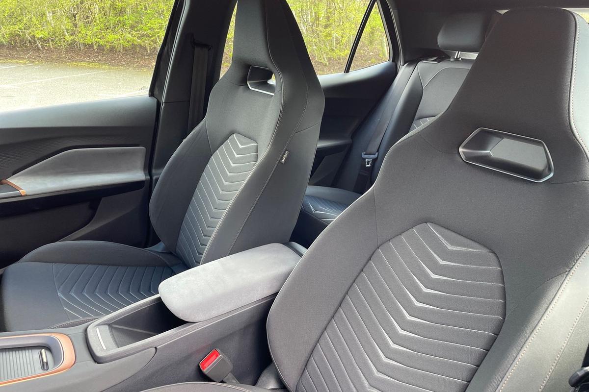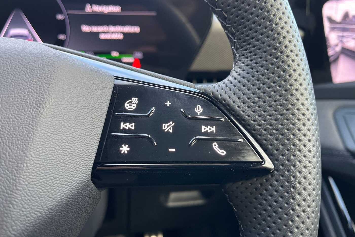"features": "5.3\" digital cockpit with 12\" central display infotainment system, Bluetooth without wireless charger, Driving profile selection - Range, Comfort, Performance, Individual, Dynamic steering, e-call service, Emergency steering support with turn assist, Forward collision warning with automatic braking, Front/rear park distance control, Lane assist, Tailgate, Voice assistant, Wireless full link smartphone integration, Shock absorption in front, Sports rear shock absorption, 2x USB sockets in front, 2x USB sockets in rear, charge only, DAB (Digital Audio Broadcasting) and AM/FM radio, Acoustic windshield, Auto dimming rear view mirror, Daytime running lights, Electric adjustable/heated/folding door mirrors, Full LED headlights, Grey exterior mirrors, Heat insulated glass, LED 3rd brake light, LED rear lights, Rear side wing doors, Rear wiper, Transport protection film, Variable intermittent wiper, Welcome home function and adverse weather function, Windshield wiper with light/rain sensor, 3 seat bench in 2nd row, Aluminium pedals, CUPRA emblem on steering wheel, Dual zone climate control, Electric auxiliary air heater, Heated leather wrapped multi function steering wheel, Integrated front head restraints, ISOFIX points in outer rear seats with top tether anchorage points, Manual height adjustable front seats, Multi-colour ambient interior lighting, Rear headrests, SEAQUAL Yarn cloth upholstery, Single front passenger seat, Sunvisors with illuminated mirror, Unsplit rear seat bench, split folding backrest, without centre armrest, Pilot M pack - Born, 3 point seatbelts on all rear seats, Driver and front passenger airbags with front passenger airbag deactivation, side airbag in front with curtain airbag and front interaction airbag, Extended safety system with proactive passenger protection system, Manual child lock in rear doors, Tiredness recognition system, driver alert system, Tyre pressure monitoring system, Visual and acoustic seat belt reminder, Anti theft alarm system with interior monitoring in cab, backup horn and towing protection, Anti theft wheel bolts, Keyless go central locking system, 18\" Cyclone alloy wheels, Tool kit, Tyre repair kit, ",