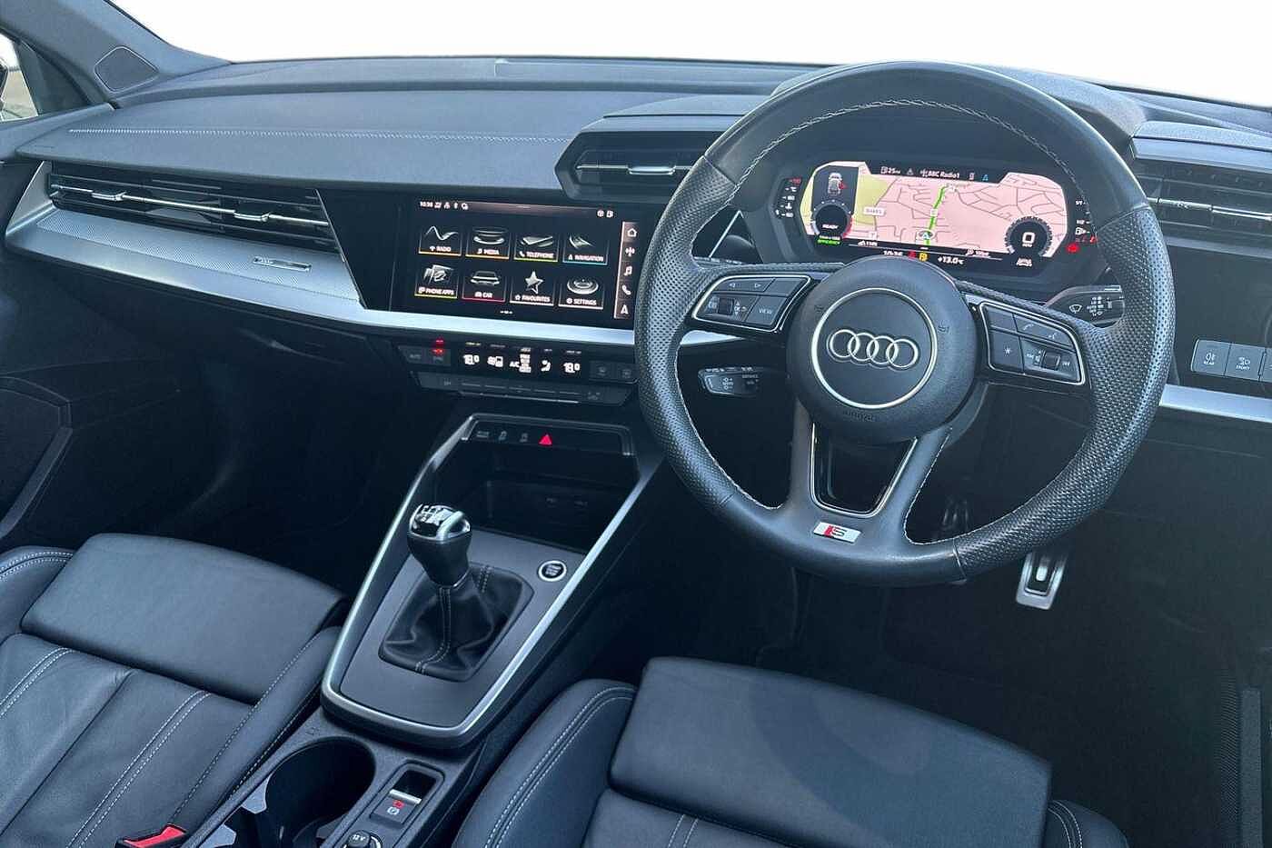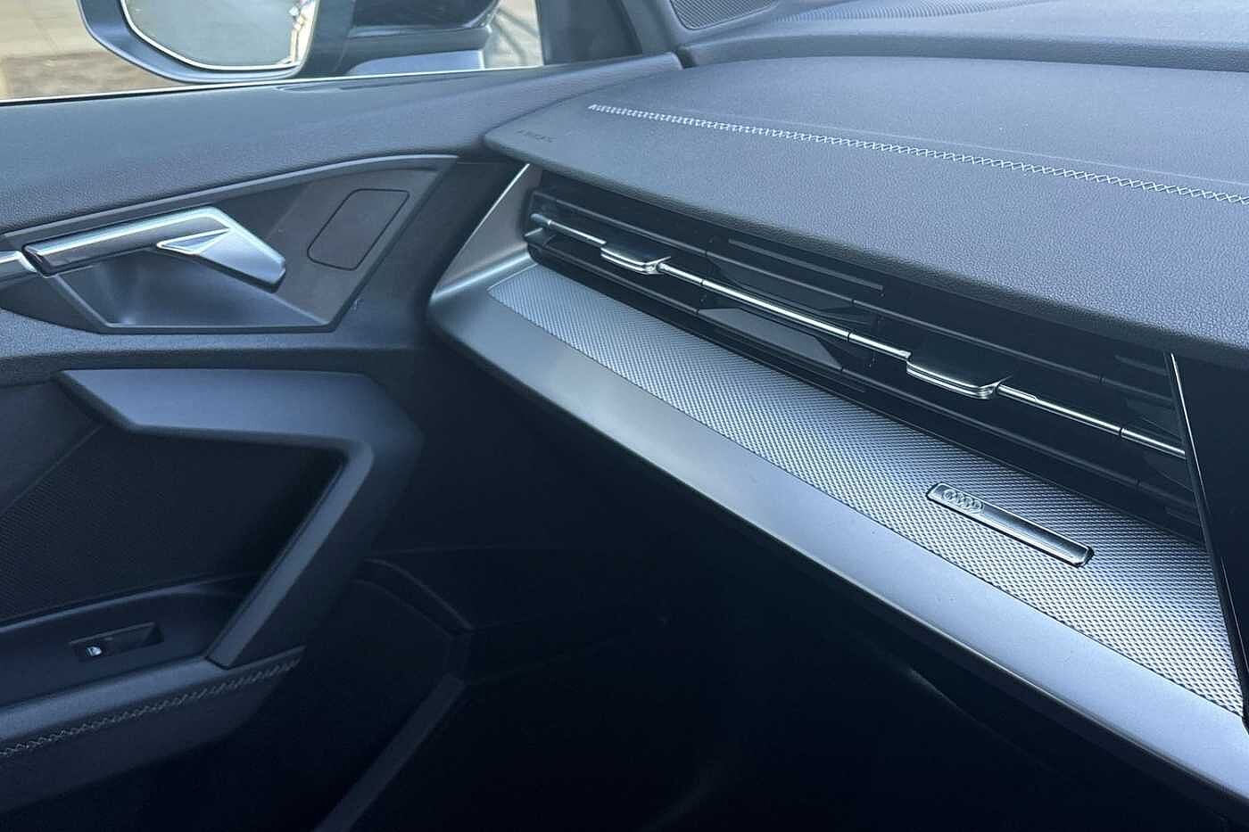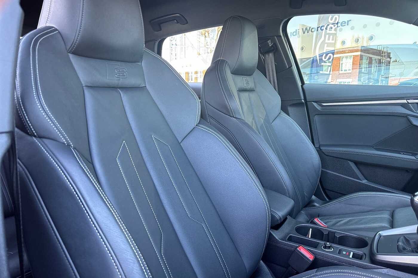 "features": "10.25\" Digital instrument cluster display classis style instrument dials + speed,odometer,time,outside temperature,telephone menu + fuel level warning, Advanced driver attention and drowsiness monitor, Audi connect emergency call and service, Audi drive select, Audi remote connect and control, Audi smartphone interface, Bluetooth interface, Camera based traffic sign recognition, Cruise control, Driver's information system, Electromechanical power steering, Lane departure warning system, Rear parking sensor, Service interval indicator, Speed limiter, Start stop system with recuperation, Voice control system, Washer fluid level indicator, Sports suspension, 2 x USB type C connection points, 6 loudspeakers, DAB Digital radio, MMI radio plus with 10.1\" colour MMI display screen and MMI touch, Auto dimming rear view mirror, Body coloured door mirrors, Door sill trims with aluminium inlays and S line logo in front, Electric front and rear windows, Electrically adjustable, heated, folding door mirrors with integrated LED side indicator, Front side air inlets in grained matt black and C frame in anthracite black, Headlight cleaning system, Heat insulating glass windscreen and side windows, Heated rear windscreen, High level LED brake light, LED daytime running lights, LED headlights with range control LED rear lights + dynamic rear indicators, Light and rain sensors, Privacy glass, Radiator grille and rear diffuser in matt anthracite black, Radiator protective grille frame in matt aluminium silver, Rear fog lights, Rear side wing doors, Rear wiper, S line badges on front wings, Side front spoiler lips in grained matt black, 12V socket in centre console with two cup holders, 3 rear seats with headrests, 3 seat bench in 2nd row, 3 spoke leather multi-function plus steering wheel features S badging and grips in perforated leather with contrast stitching, 40:60 Split folding rear seat or fully collapsed, Black cloth headlining, Front and rear velour black floor mats with contrast stitching in fine silver, Front head restraints, Front passenger seat, Height and reach adjustable steering wheel, Interior lighting includes roof module, front and rear reading lights and right luggage compartment lighting, ISOFIX child seat mounting for front passenger and outer rear seats including top tether attachment point of outer rear seats, Leather gear knob with aluminium trim, Leather handbrake grip, Manual air conditioning, Manual height adjustable for driver and front passenger seat, Manually adjustable lumbar support in front seats, Stainless steel pedals, Ambient lighting package - A1, Luggage compartment pack - A1, S line exterior styling pack - A1 Sportback, 3x3 point rear seatbelts, Audi pre-sense front with pedestrain and cyclist recognition, Brake assist function, Driver and front passenger airbag with front side and head airbags, Electronic Stability Control including ABS, EBD, ASR and EDL, Front passenger airbag deactivation switch, Hill hold assist, Manual rear child locks, Seatbelt height adjustment for front seats, Seatbelt monitoring, Tyre pressure loss indicator, Warning triangle and first aid kit, Anti theft alarm, Anti theft wheel bolts, Immobiliser, Remote control key with safelock, Aluminium trim for control switches, air vents and digital instrument cluster, Black dashboard, Silver grey inlays polygon structure in diamond paint finish, Structured grey accent surfaces insert of air vents, interior door handle recesses and centre console in quartz paint finish, ",