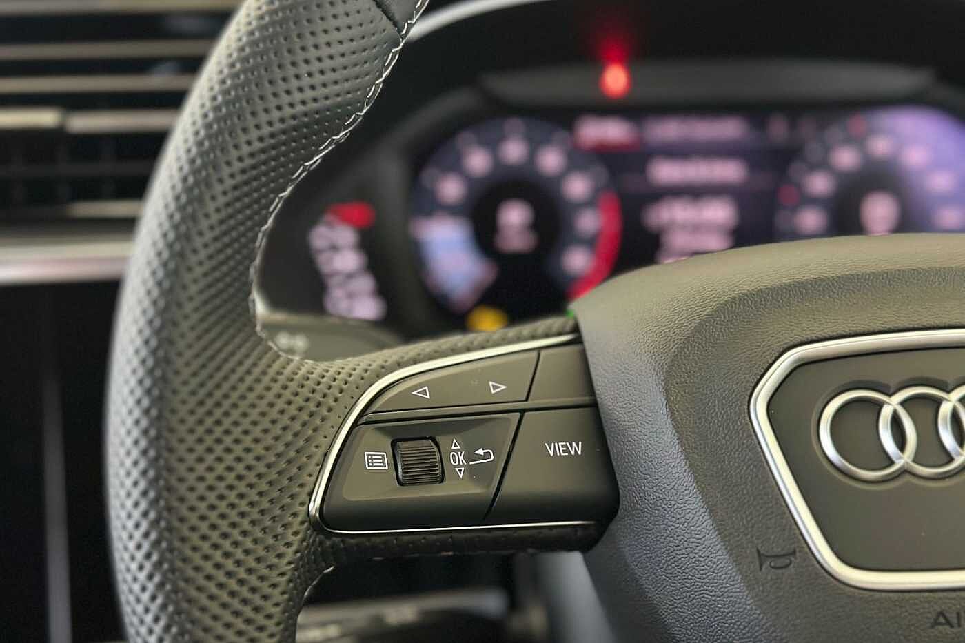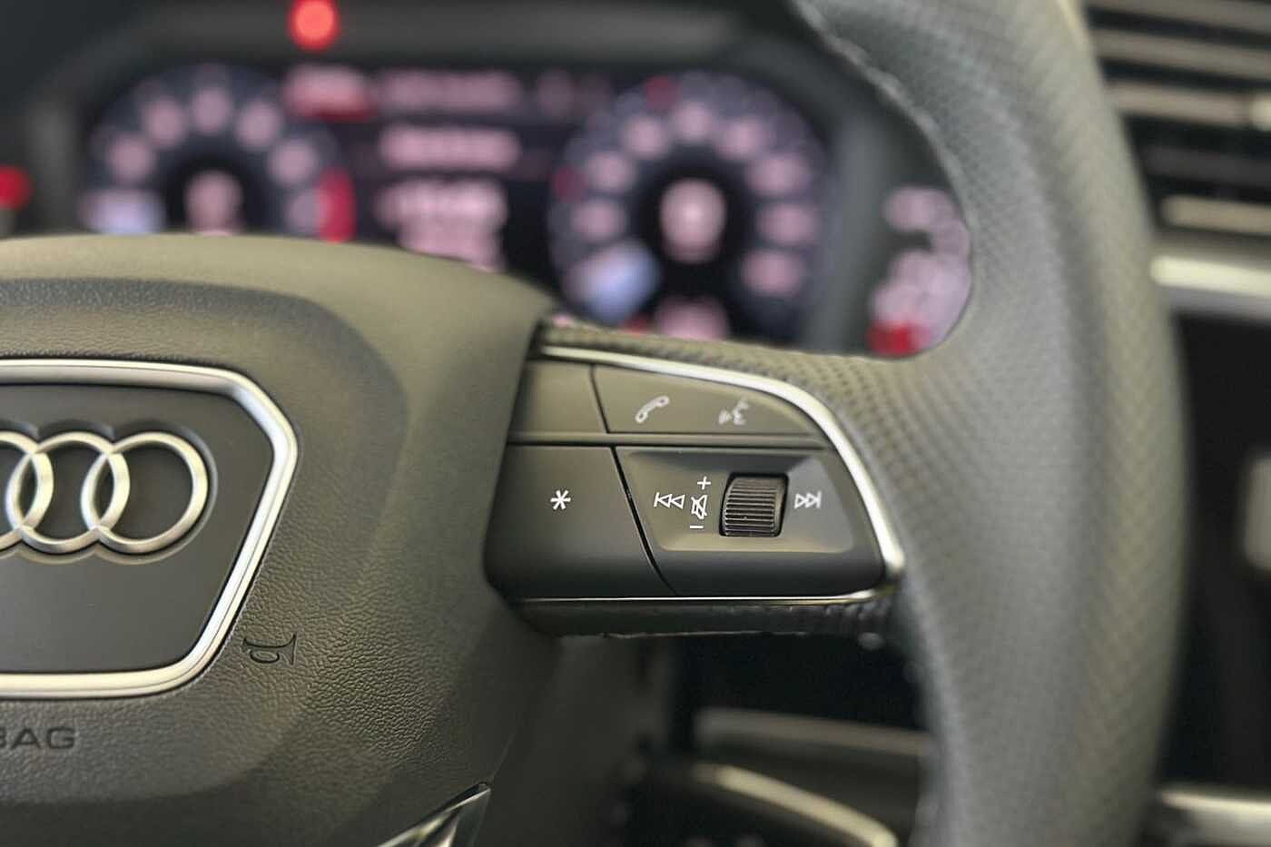 "features": "Adaptive cruise control, Audi connect emergency call and service, Audi connect remote and controls, Audi drive select (Balanced/Individual, effeciency, comfort and dynamic), Audi virtual cockpit plus - 11.9\" display, Bluetooth interface, Camera based traffic sign recognition, Driver attention and fatigue monitor with driver monitoring, Emergency assist, Front cross traffic assist, Panoramic curved display with 12.8\" MMI navigation plus and MMI touch, Park assist plus with parking system and 360 display, Phonebox light with wireless charging, Projection of a black ice warning, Reversing camera, Smartphone interface includes wireless Apple carplay/Android Auto, Start/stop system, Swerve assist and turn assist, Traffic sign based speed limiter, Voice control system with natural language interaction, Diesel particulate filter, 2 USB-C ports with charge and data functions, Audi sound system with 10 loudspeakers, subwoofer,8 channel amplifier with 260 watts, DAB digital radio module, Acoustic glass for front door windows, Acoustic windscreen, Advanced dynamic light scenario of the coming home/leaving home function, All weather light, Aluminium window trim, Audi Q3 lettering on the B-pillars, Auto dimming door mirrors, Auto dimming rear view mirror, Automatic dynamic headlight range control, Contrasting finish in volcano grey, Cornering light, Digital daytime running lights with a choice of 4 digital light signatures, Digital matrix LED headlights, Dipped beam, Dynamic indicators, Electrically folding, adjustable and heated door mirrors with integrated LED side indicators and kerb view function for passenger side, Full paint finish, High resolution main beam, Illuminated door sills with aluminium inserts at the front with S logo, Intersection light, Lane light with side assist and direction indicator, LED third brake light, Loading sill protector in stainless steel, Manoeuvring light, Motorway light, Orientation light with lane departure warning, Position light, Privacy glass - dark tinted rear window, rear door and side windows, Projection light in the exterior mirrors - Projects a graphic element onto the ground, Q3 badging on the rear, Rain and light sensors, Rear side wing doors, Rear window, rear door windows and rear side windows in clear glass, Rear wiper, Sports bumpers, Turning light, 3 seat bench in 2nd row, 3 spoke heated flat top and bottomed leather multi function sport steering wheel with gear shift paddles and \"S\" badging, 3-zone deluxe automatic air conditioning, 4 way lumbar support for the front seats - electric with horizontal and vertical adjustment in four directions, Black cloth headlining, Front and rear floor mats, Front and rear headrests, Front centre armrest, Heated front seats, Height and reach adjustable steering wheel, Interior storage compartment, Luggage compartment lid, electrically opening and closing, Manual front seats with height adjustment, Rear seat bench plus with split folded 40:20:40, Single front passenger seat, Stainless steel pedals, Steering wheel operating unit, gloss black, Storage compartment in front centre console, Ambient lighting package pro - Q3, Black styling pack with black door mirrors - Q3, Driver assist pack - Q3, Dynamic pack - Q3, 3x3 point rear seatbelts, Convenience key with safelock, Driver and front passenger airbag with passenger airbag deactivation, Electromechanical parking brake, Electronic stabilisation control including ABS, ASR and EDL, First aid kit with warning triangle and high visibility vests, Front emergency brake assist, Hill hold assist, i - Size child seat mounting on the front passenger side and i - Size and top tether on the outer rear seats, Power operated child locks, Seatbelt monitoring, Tyre pressure loss indicator, Anti theft wheel bolts, Remote central locking, Thatcham approved category 1 anti theft alarm, Anthracite american whitewood natural inlay, Interior elements in dinamica microfibre, Interior trims in aluminium look, Tool kit and Jack, ",