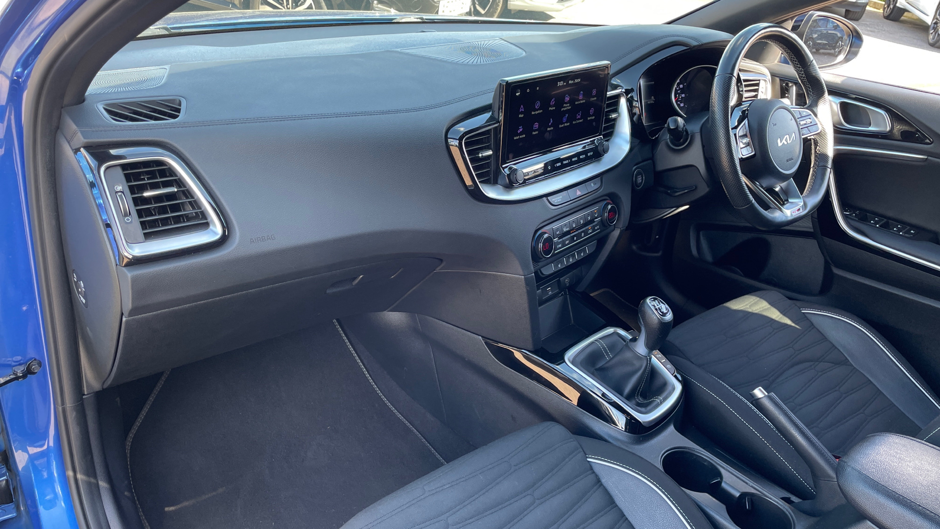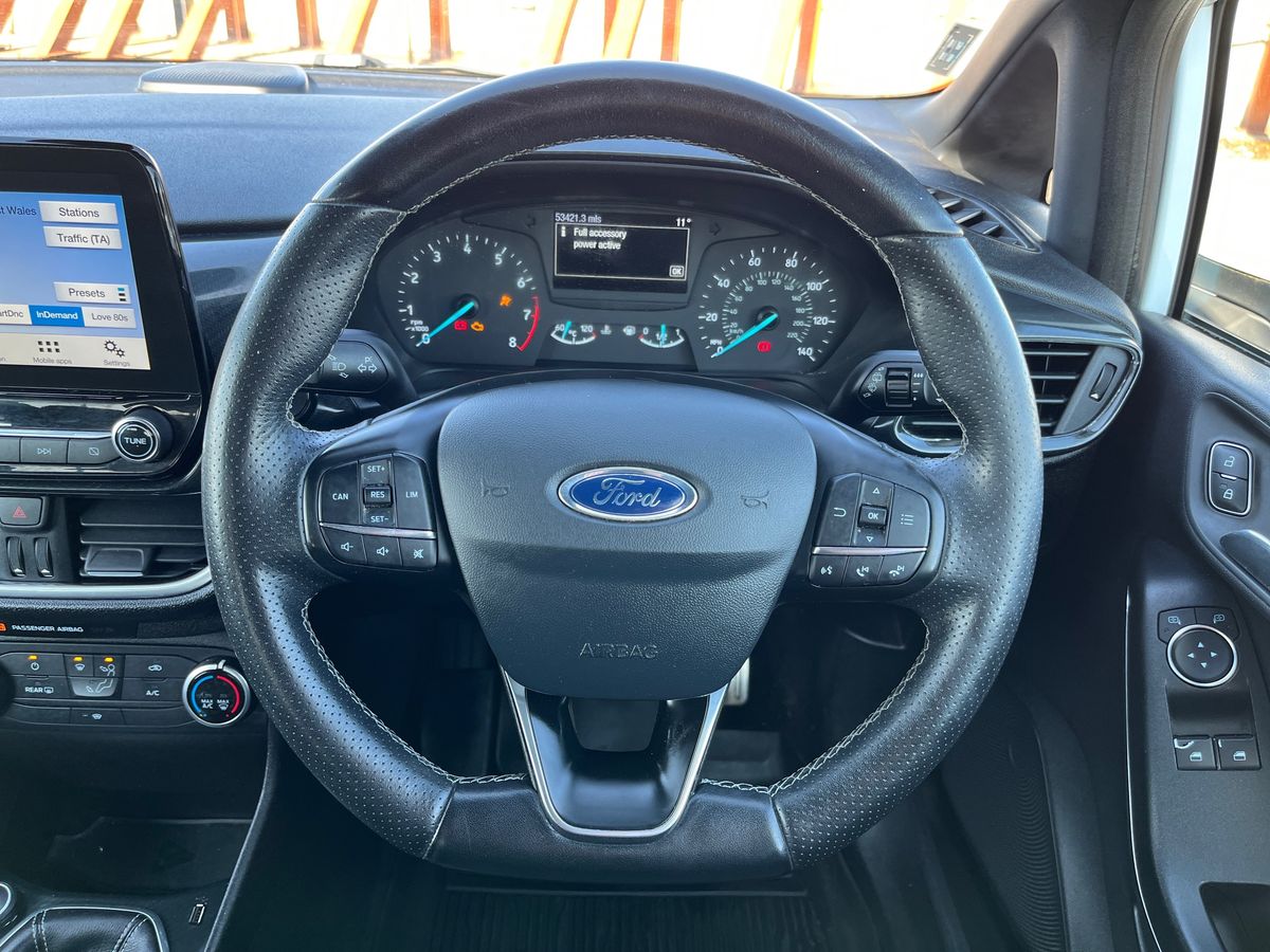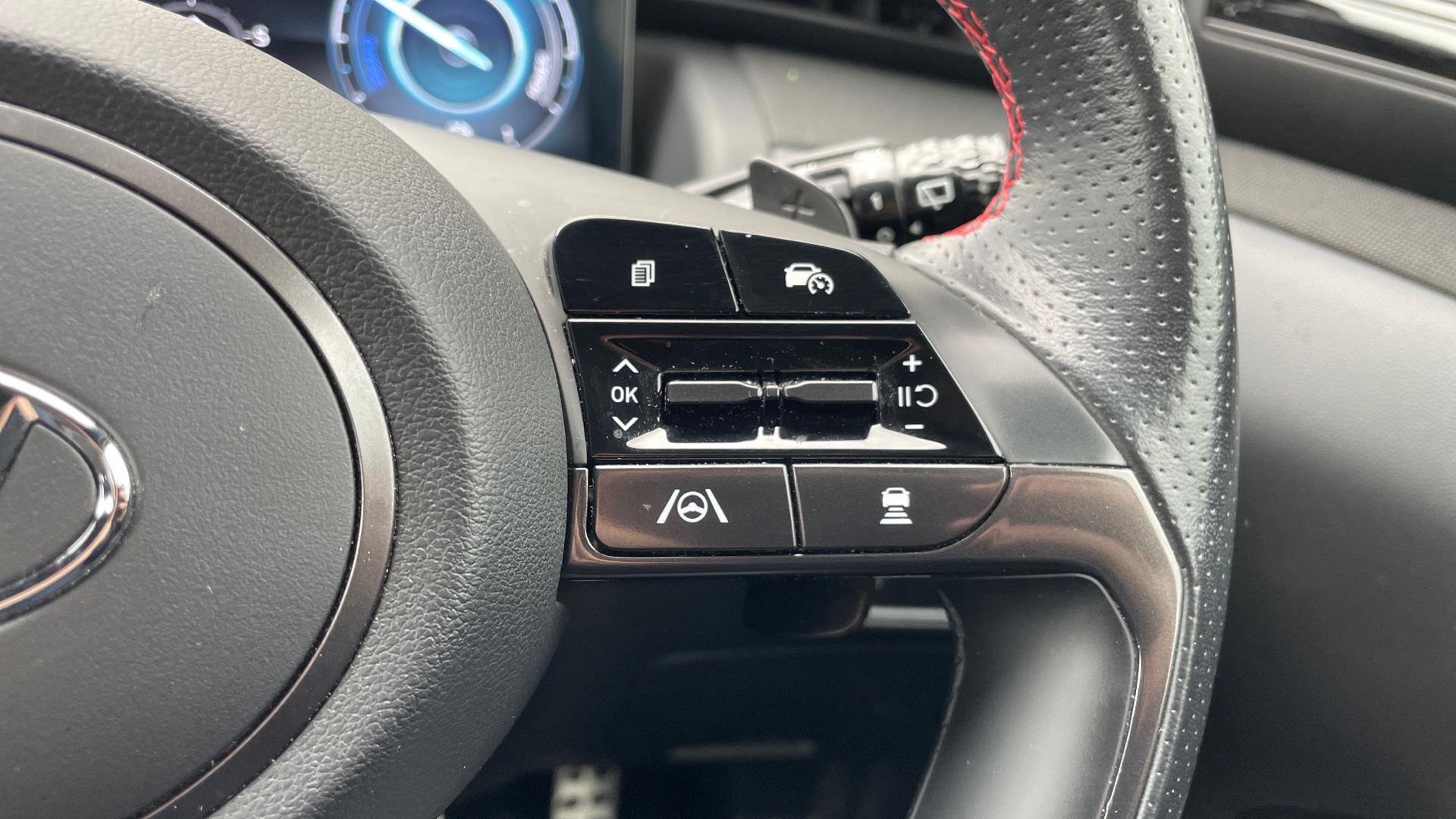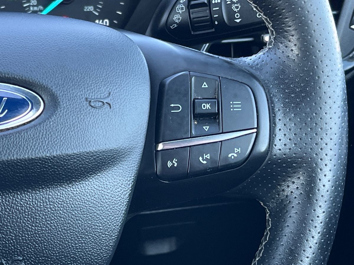 "3 spoke leather trimmed multi-function steering wheel with height and reach adjustable",