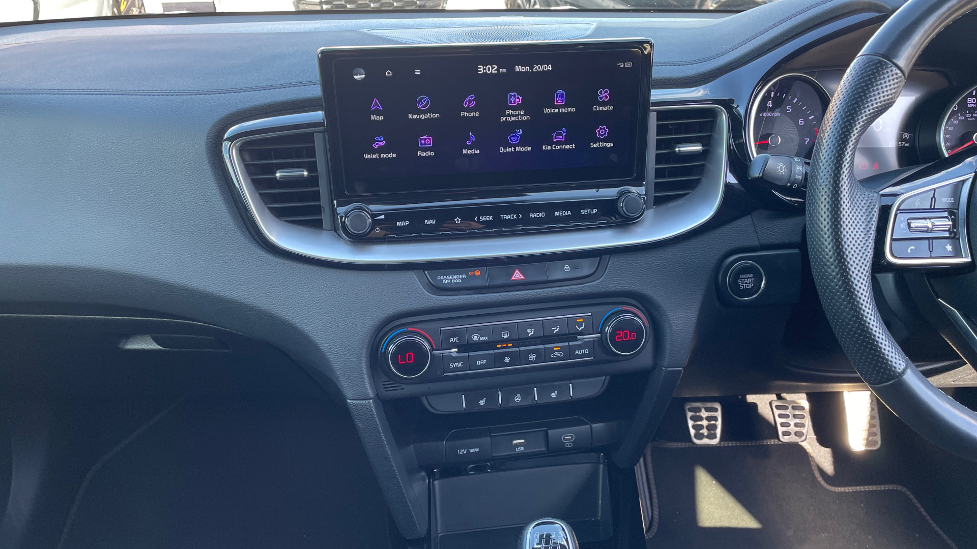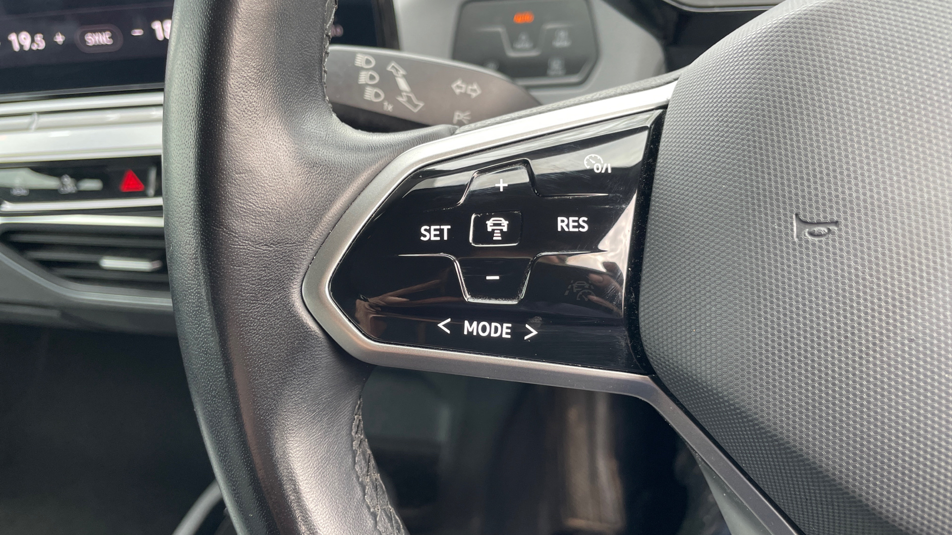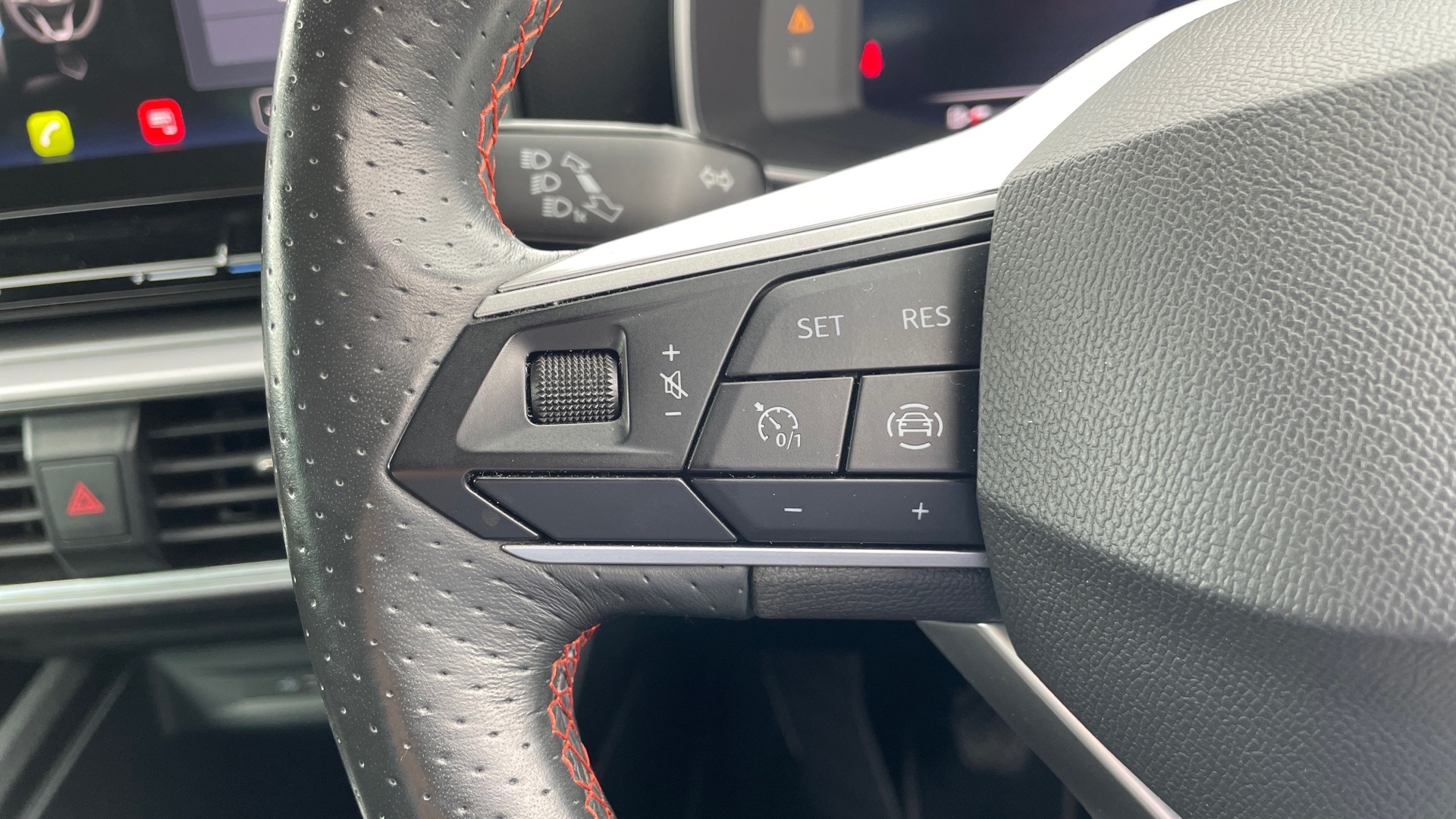 "3 spoke leather trimmed multi-function steering wheel with height and reach adjustable",