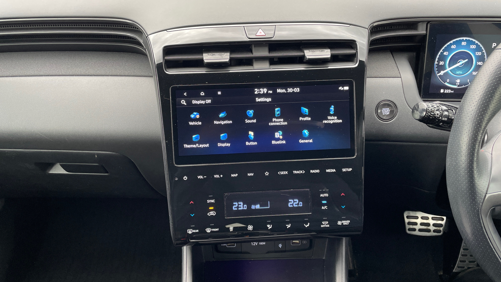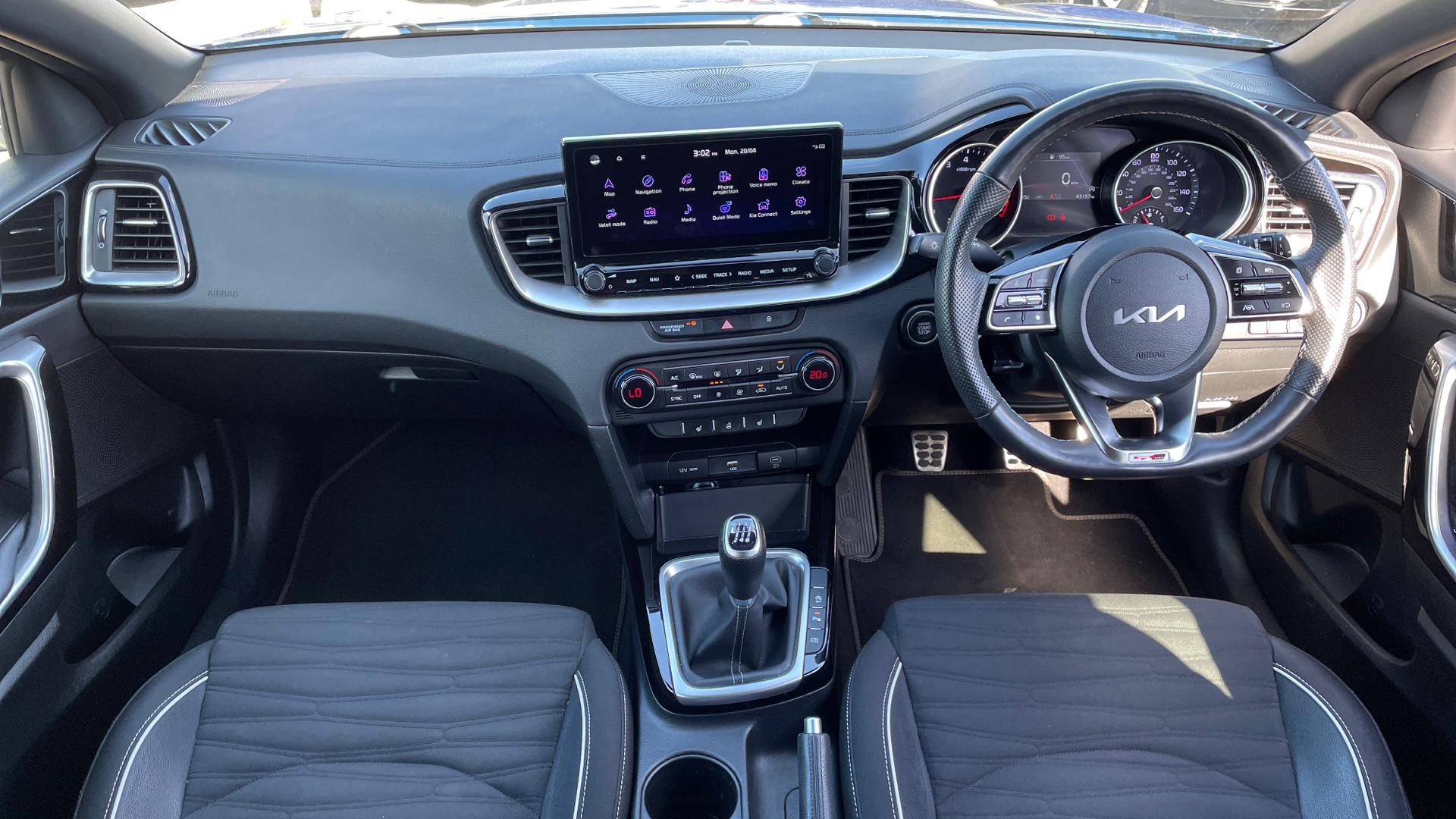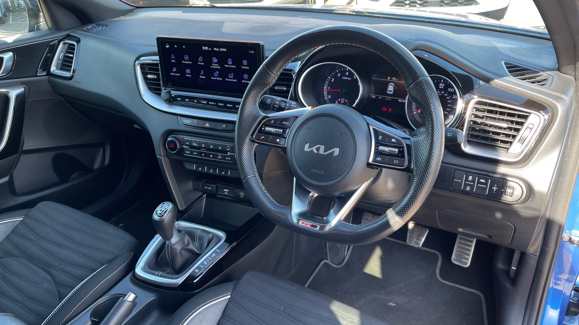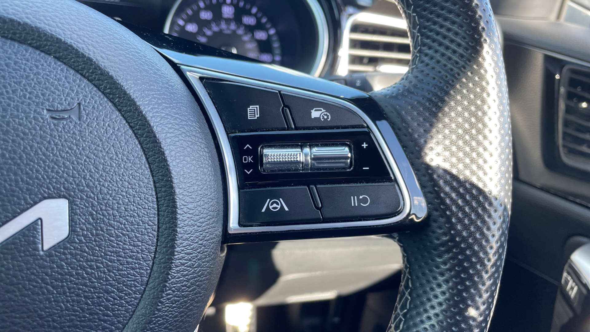 "3 spoke leather trimmed multi-function steering wheel with height and reach adjustable",