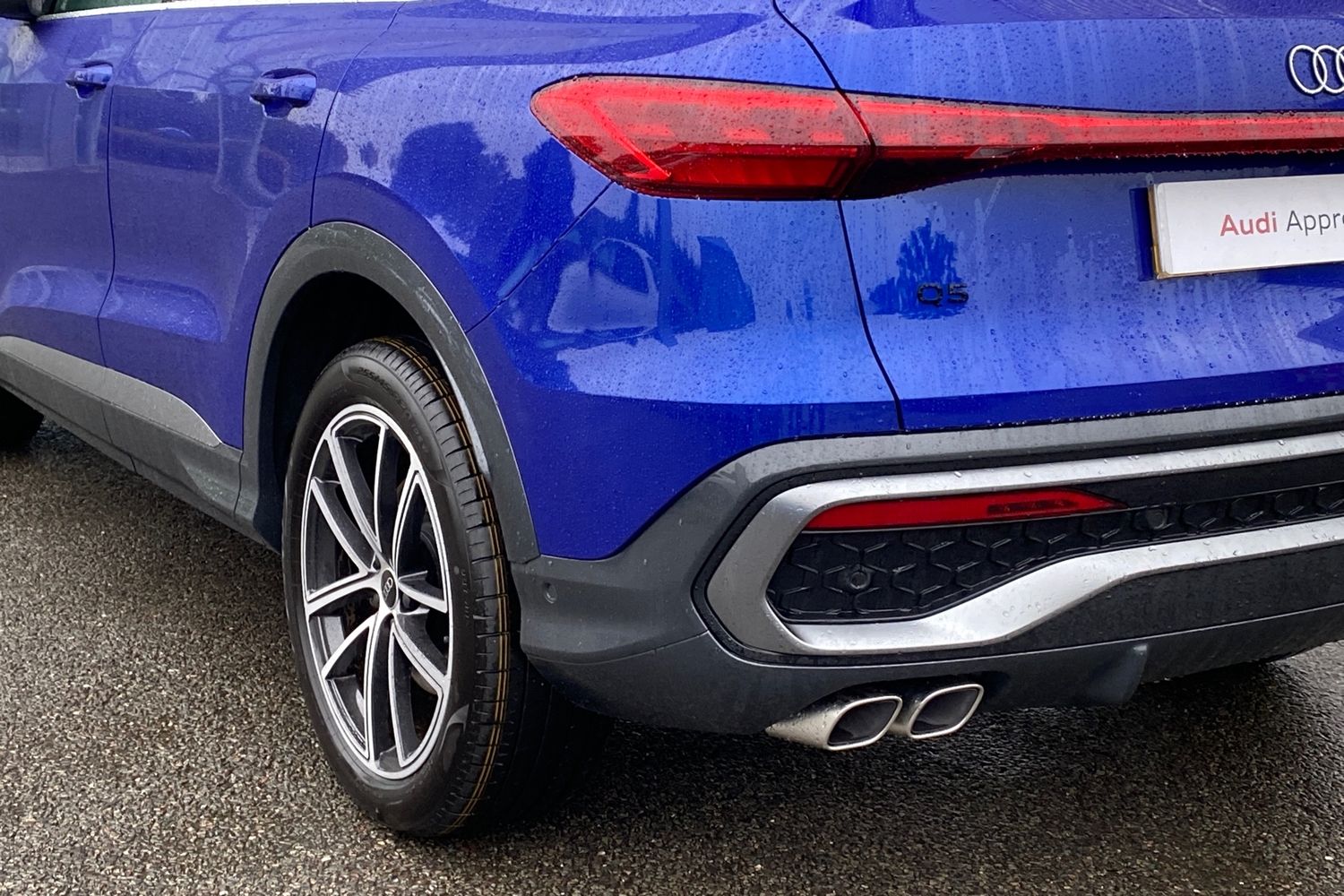 "Exhaust tailpipe on left with chrome finisher",