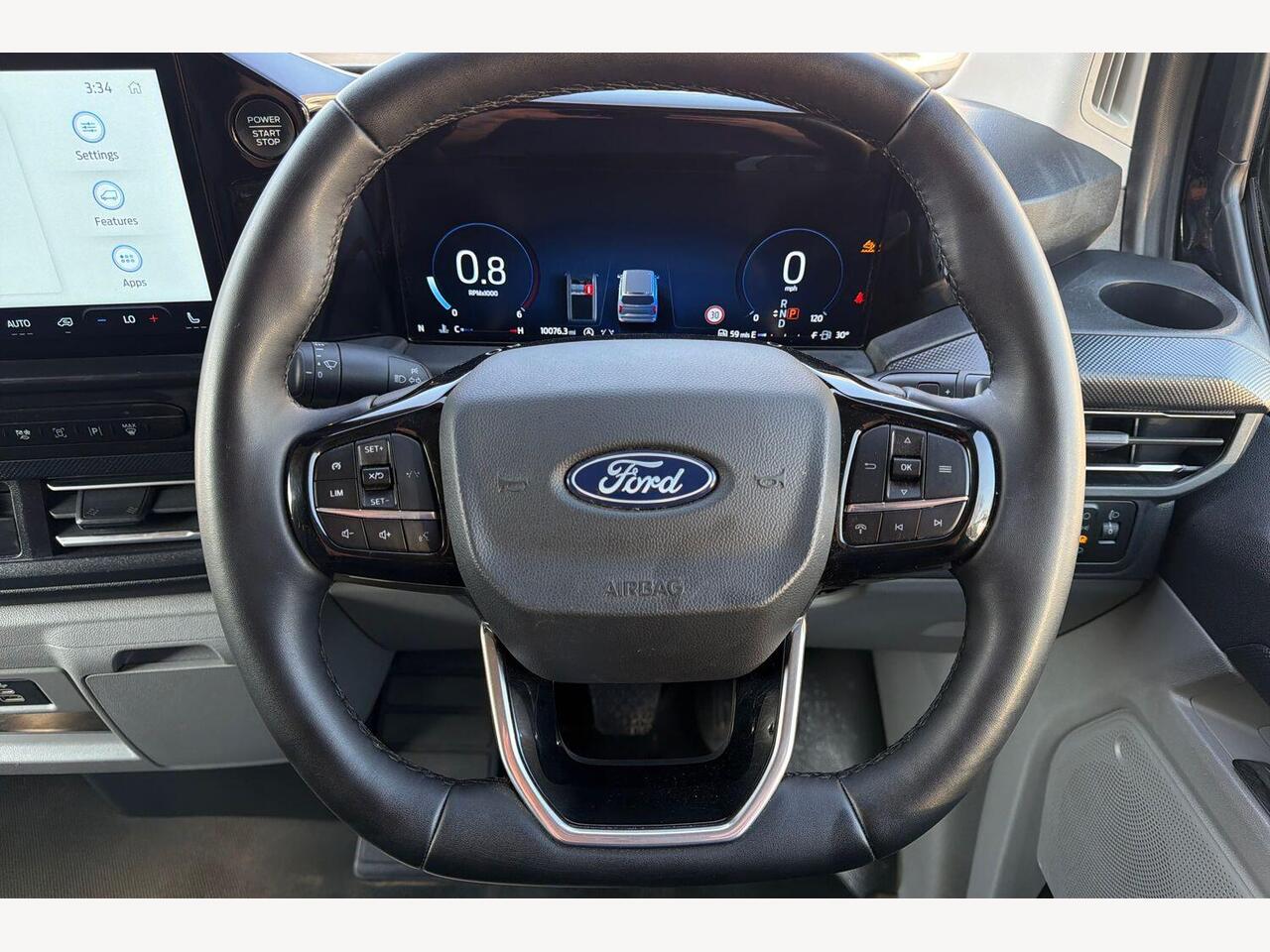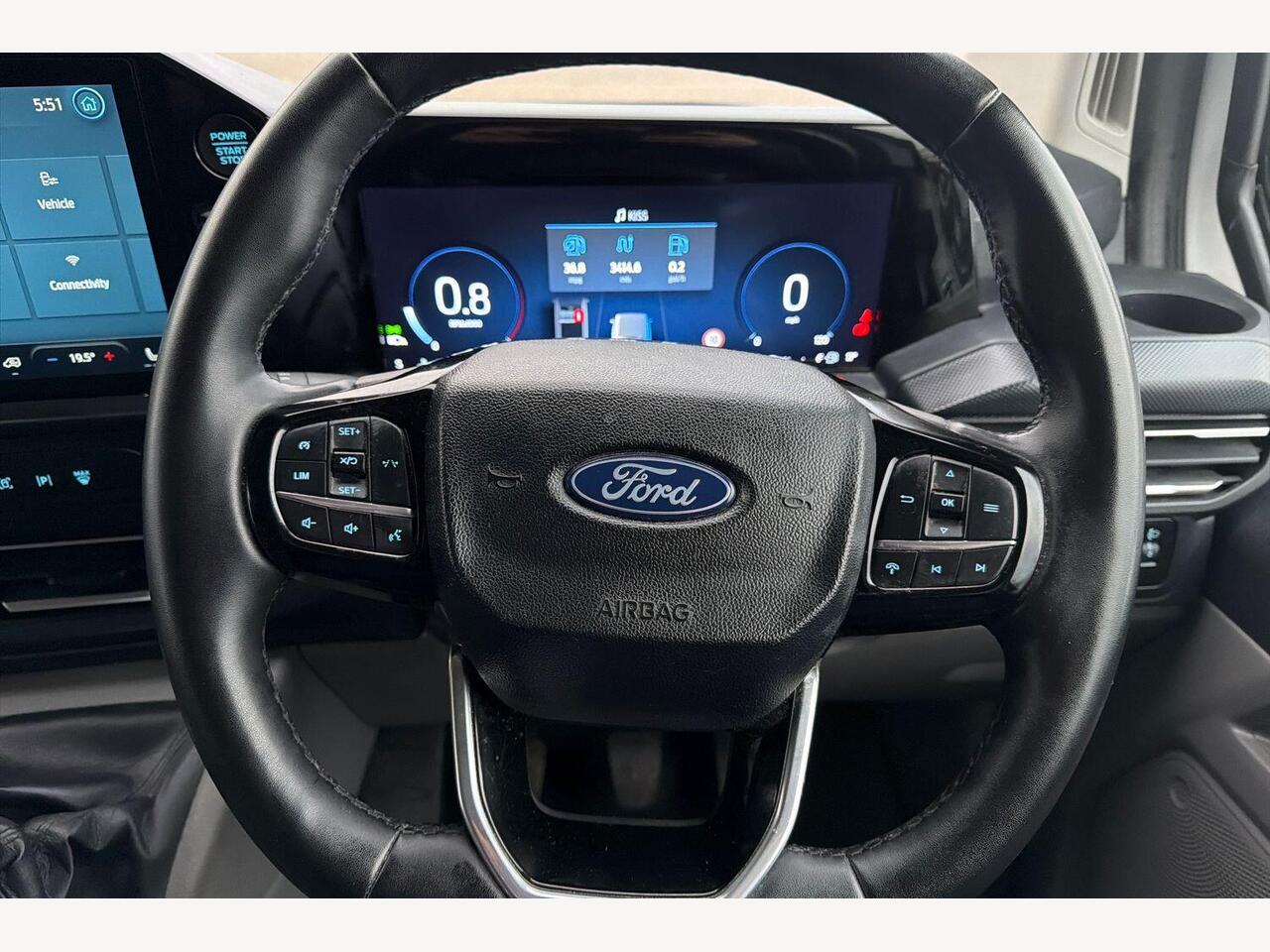 "features": "13\" Touchscreen, 5G embedded modem, AECS NO SMS/Roll Detect 2G, PAS, Tyre pressure monitor, SYNC 4 - Android Auto/Apple Car Play,advance speech recognition,over the air update capability, Automatic headlights, Automatic windscreen wipers, Body coloured door mirrors, Body coloured front bumper, Body coloured rear bumpers, Daytime running lights, Electric front windows with one touch facility for driver and front passenger, Front mud flaps, Front splash guards, Low roof line, Quickclear front window defroster, Rear cargo hinged door, Rear splash guards, Trailer sway control, 8 Load compartment tie down loops, Courtesy light, Interior grab handle with driver's sunglasses holder, LED lights, Locking glove box lid, Sensico gearshift knob, 2 remote keys, Alcohol Interlock wiring preparation pack, Keyless entry and start, Locking wheel lug nut, Thatcham category 1 alarm, 20L AdBlue tank, ABS, Diesel particulate filter, ESP, Hill launch assist, Traction control, Full wheelcovers, ",