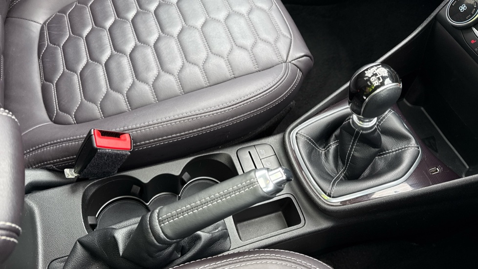 "Leather trimmed handbrake handle",