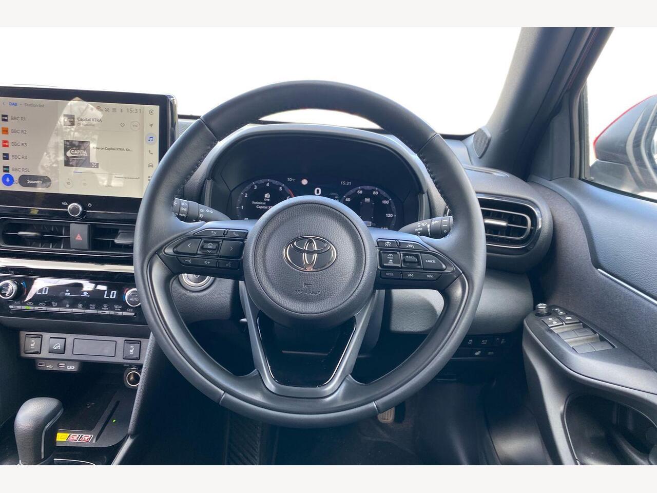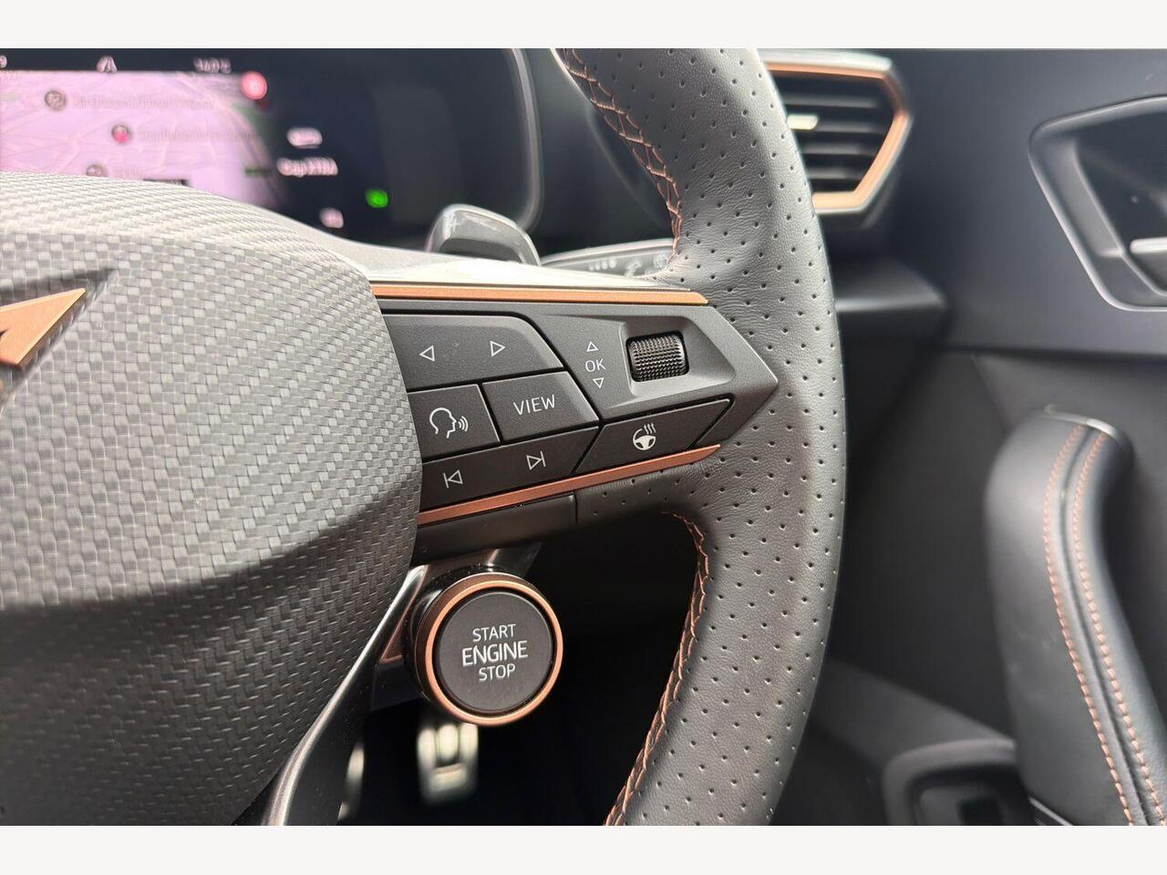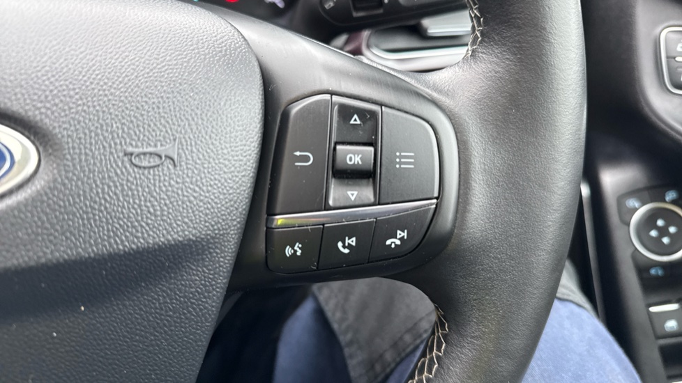 "3 spoke leather trimmed steering wheel with audio control",
