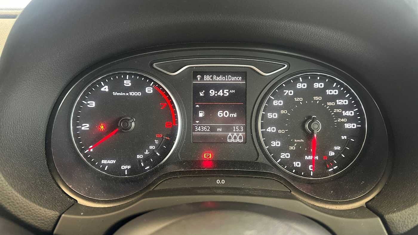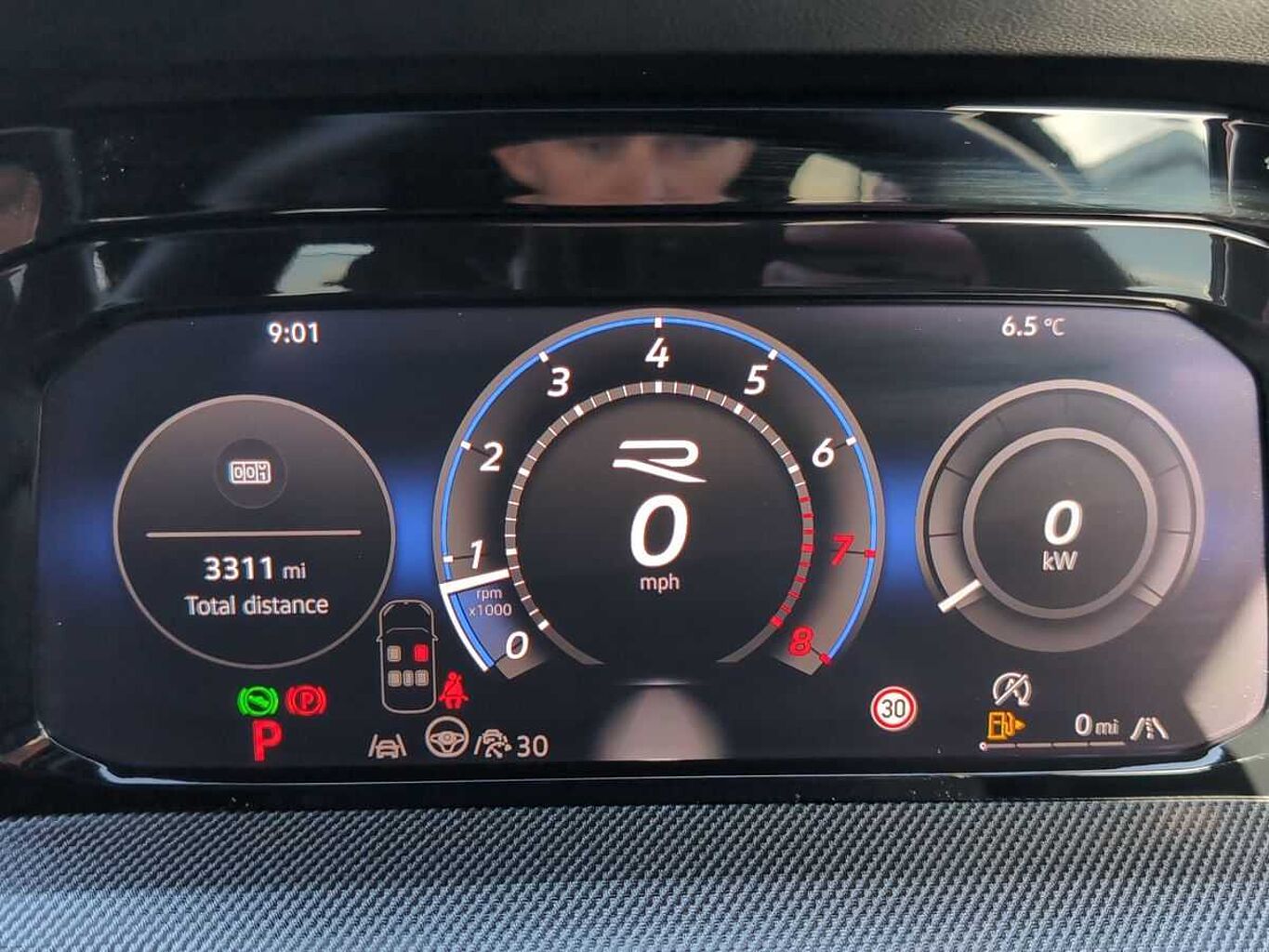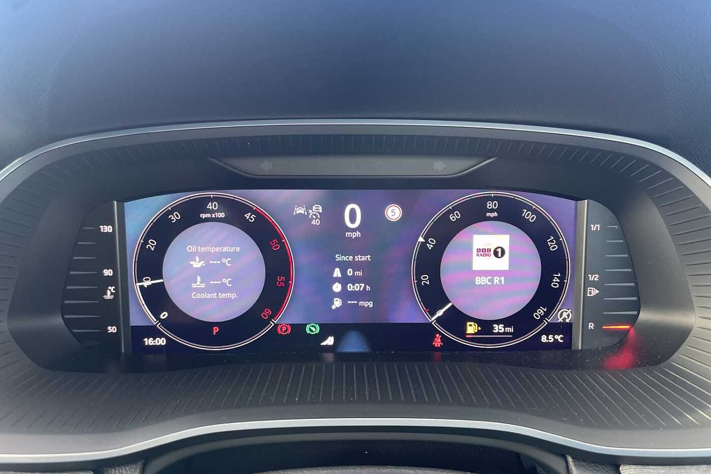 "Central analogue rev counter with black dial face",