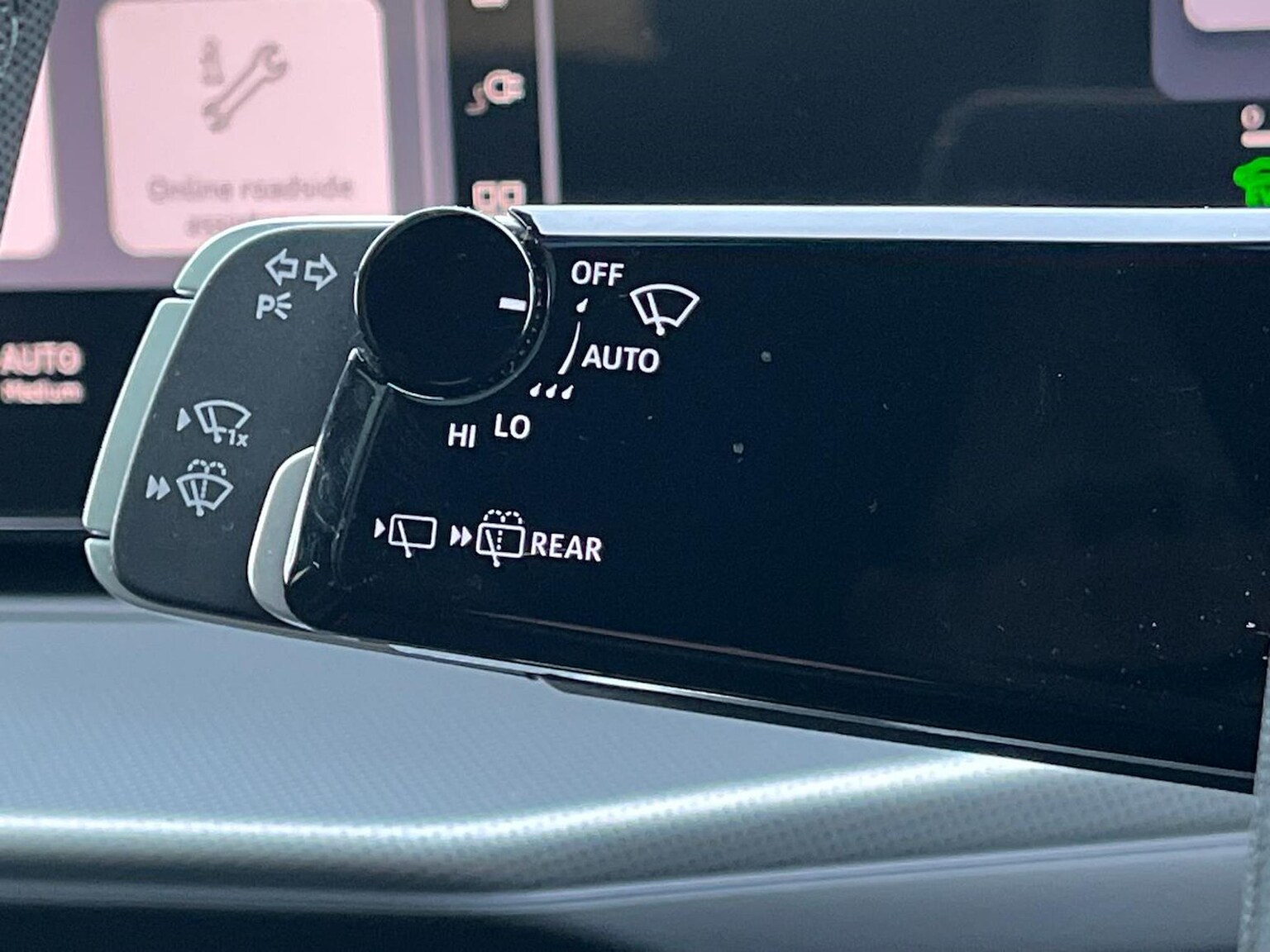 "Rear windscreen washer and wiper with interval delay",