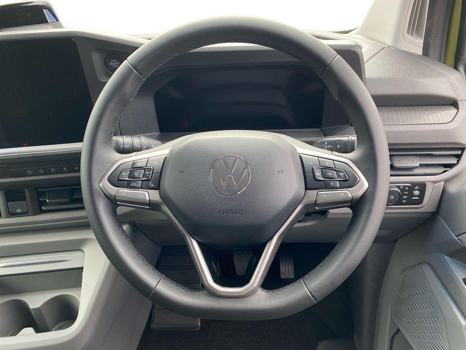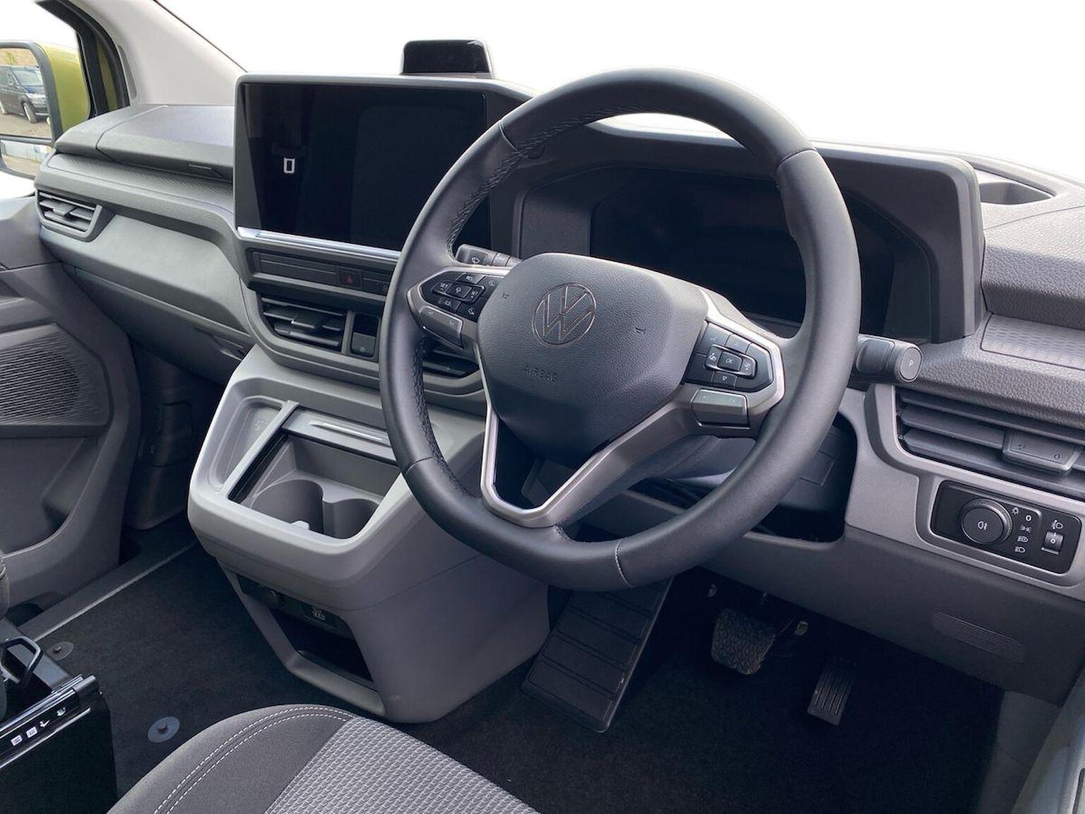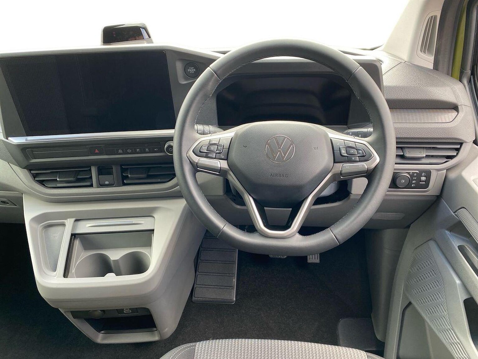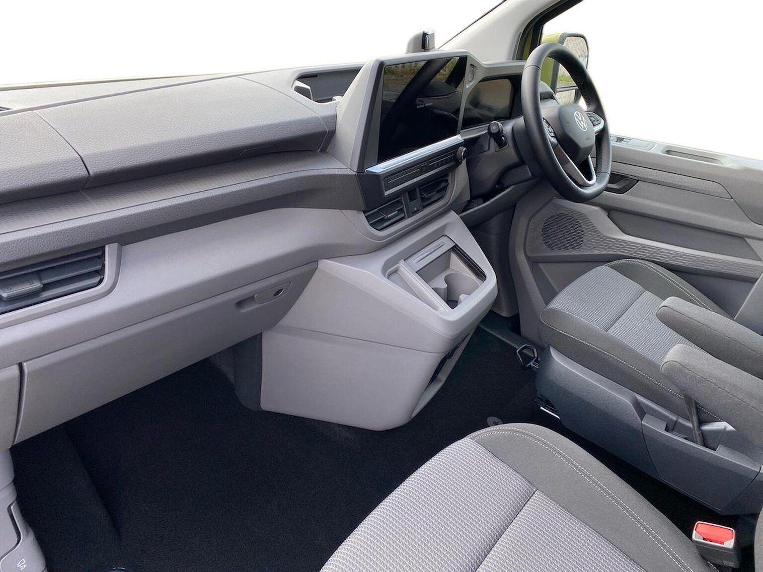 "features": "12\" digital drivers display, 13\" touchscreen infotainment display with wireless app connect and DAB radio, 5G Modem, Apple CarPlay and Android Auto, Cruise control, Dynamic road sign display, eCall emergency system, Electromechanical speed sensitive power steering, height and longitudinally adjustable steering column, Lane assist, Preparation of VW connect and connect plus, Wrong way driver warning, 4 speakers - 2x dashboard, 2x cab doors, Body coloured door handles, Heat reflecting side window glass, Mud flaps front and rear, Rear Transporter nameplate in black grained decorative trim, Vehicle opening configuration 1x 1st row of seats, 2x all doors, 2x 15-W USB data/charging ports in dashboard and 1x USB-C, 1x USB-A center bottom, 2x LED lights in load compartment, 3 spoke leather wrapped multi function steering wheel, 4 way height and tilt adjustable head restraints, Black plastic scuff plate for sliding door in cargo without illumination, Cabin interior lighting, Gear selector lever on steering wheel, Lashing rings for reinforced floor covering, Narrow centre console with cup holder and compartment for mobile phone, Overhead storage compartment, Roof grab handle on front passenger side, Rubber floor covering in cab, Striped fabric upholstery, Without passenger seats in load compartment, Driver and front passenger airbag with front passenger airbag deactivation, Dual tone horn, Front and curtain airbags for driver and front passenger, Seat belt pretensioner for driver seat, Anti theft alarm system with interior monitoring in cab, backup horn and towing protection, Electronic immobiliser, Preparation for alcohol ignition interlock, 5+ Promise, Alternator - 230A, Electronic stability control, ABS, ASR with deactivation button, hill start assist and brake assist system, ",