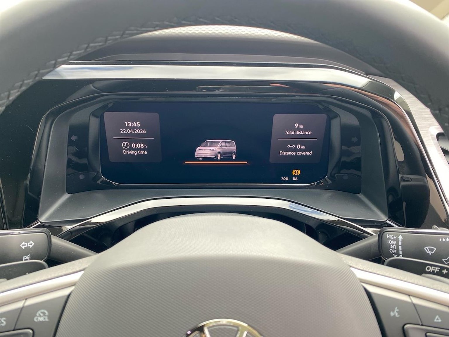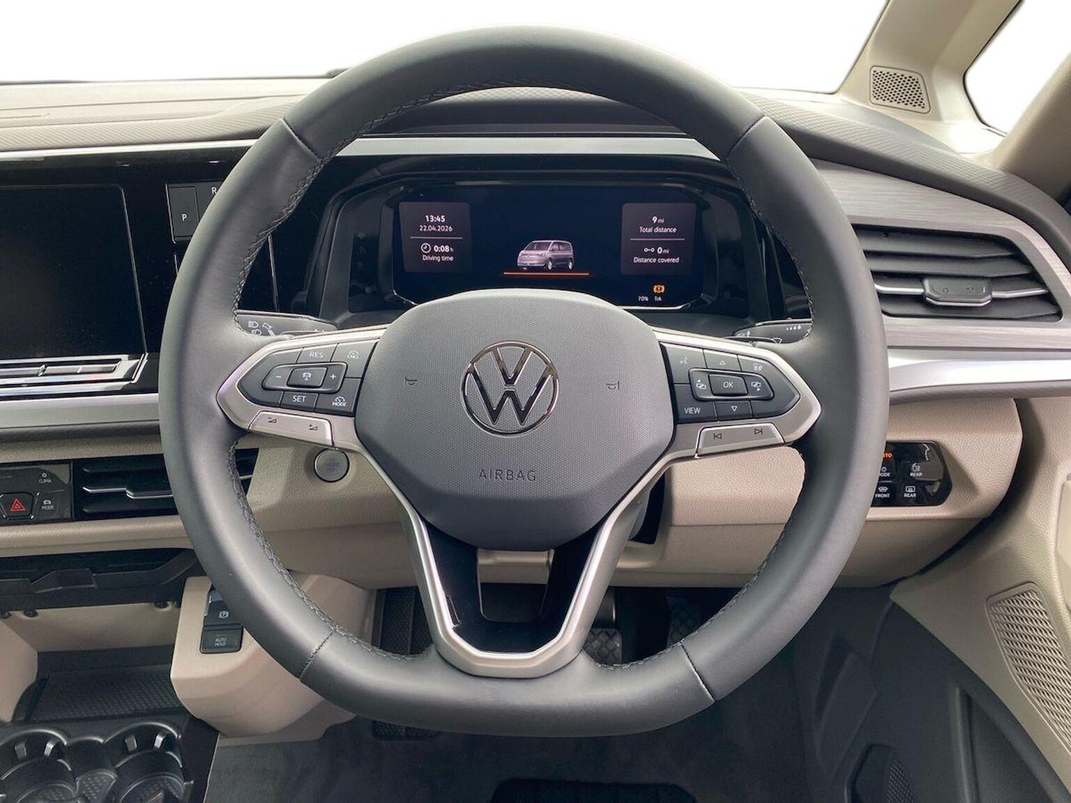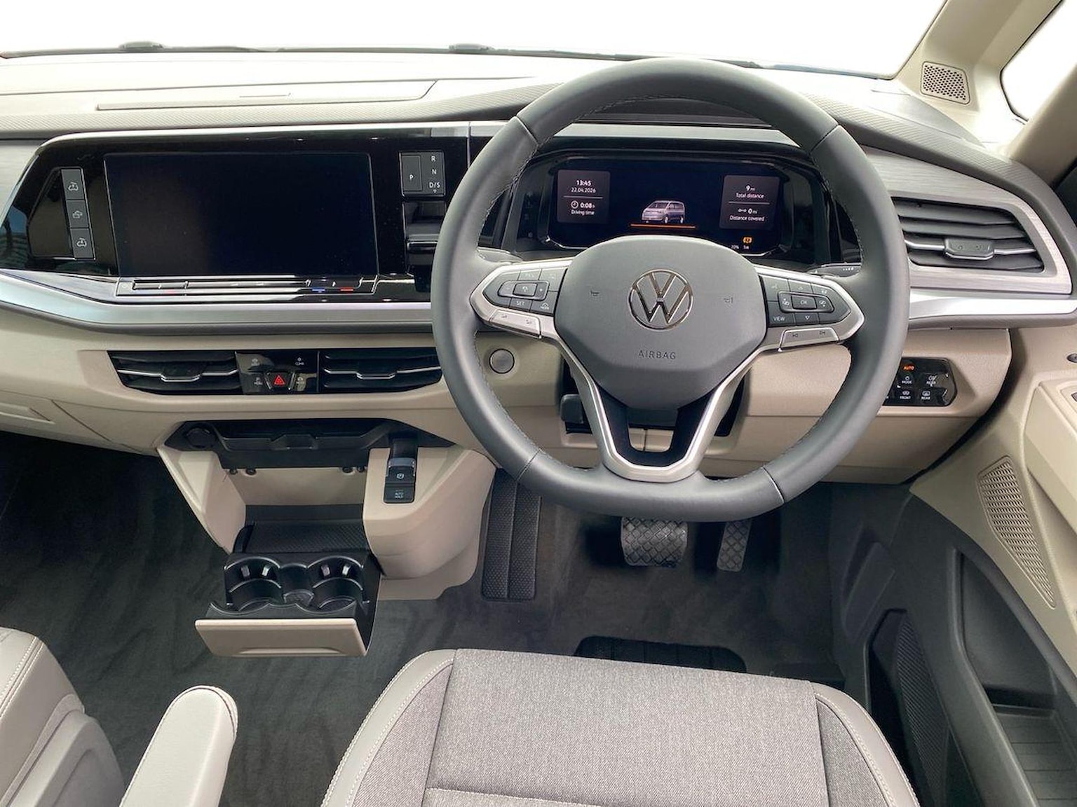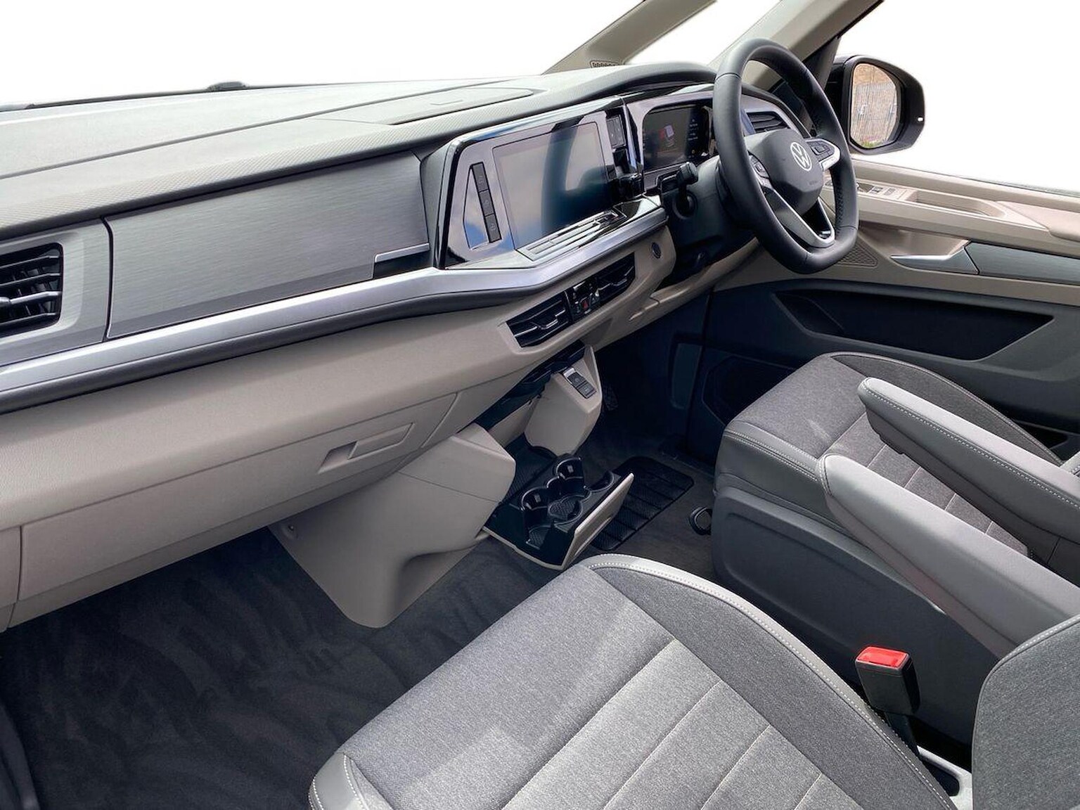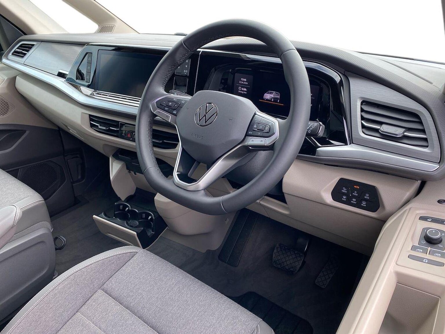 "features": "12\" digital drivers display, 13\" touchscreen infotainment display with wireless app connect and DAB radio, 5G Modem, Apple CarPlay and Android Auto, Cruise control, Dynamic road sign display, eCall emergency system, Electromechanical speed sensitive power steering, height and longitudinally adjustable steering column, Lane assist, Preparation of VW connect and connect plus, Wrong way driver warning, 4 speakers - 2x dashboard, 2x cab doors, Body coloured door handles, Heat reflecting side window glass, Mud flaps front and rear, Rear Transporter nameplate in black grained decorative trim, Vehicle opening configuration 1x 1st row of seats, 2x all doors, 2x 15-W USB data/charging ports in dashboard and 1x USB-C, 1x USB-A center bottom, 2x LED lights in load compartment, 3 spoke leather wrapped multi function steering wheel, 4 way height and tilt adjustable head restraints, Black plastic scuff plate for sliding door in cargo without illumination, Cabin interior lighting, Gear selector lever on steering wheel, Lashing rings for reinforced floor covering, Narrow centre console with cup holder and compartment for mobile phone, Overhead storage compartment, Roof grab handle on front passenger side, Rubber floor covering in cab, Striped fabric upholstery, Without passenger seats in load compartment, Driver and front passenger airbag with front passenger airbag deactivation, Dual tone horn, Front and curtain airbags for driver and front passenger, Seat belt pretensioner for driver seat, Anti theft alarm system with interior monitoring in cab, backup horn and towing protection, Electronic immobiliser, Preparation for alcohol ignition interlock, 5+ Promise, Alternator - 230A, Electronic stability control, ABS, ASR with deactivation button, hill start assist and brake assist system, ",