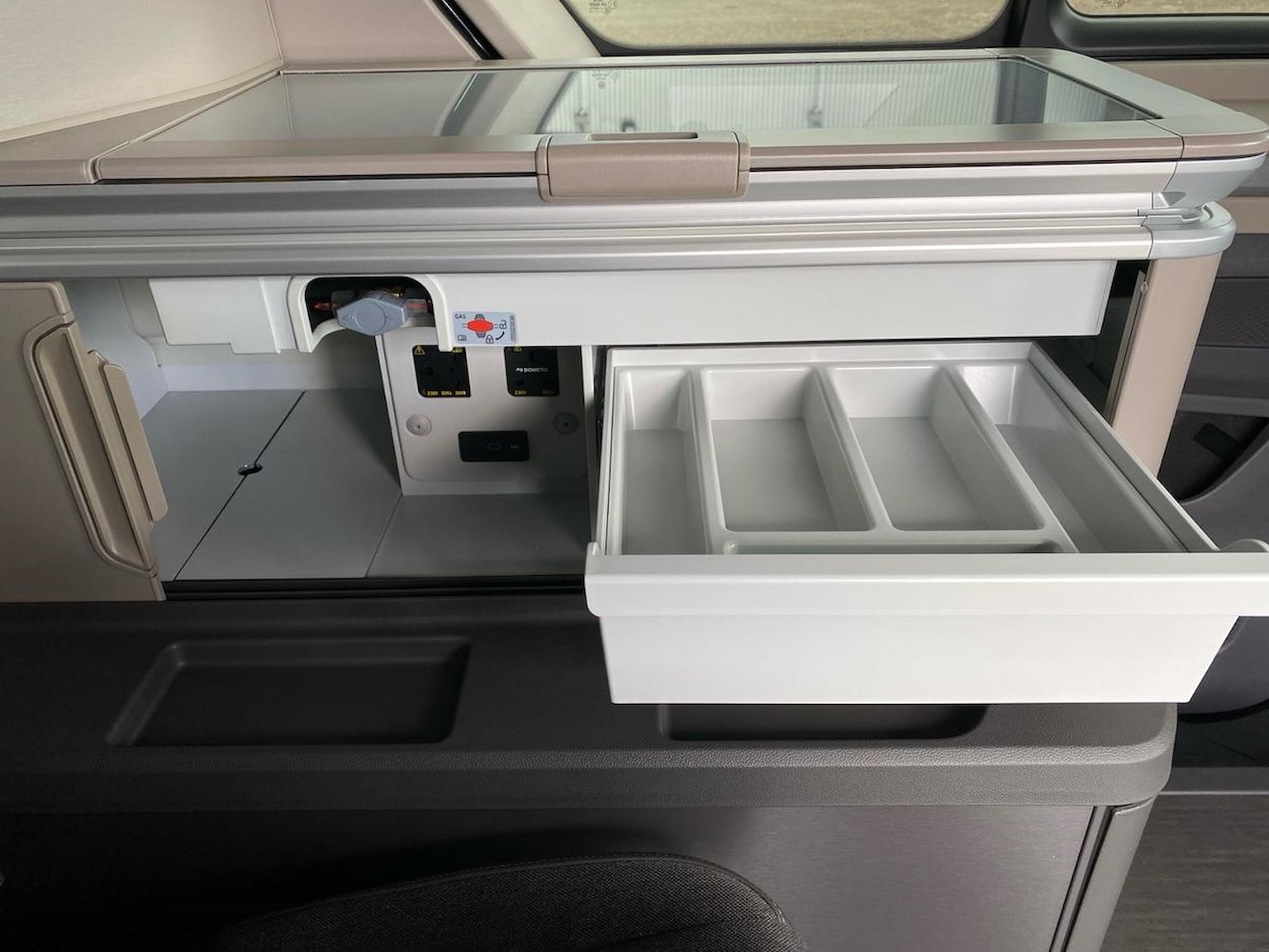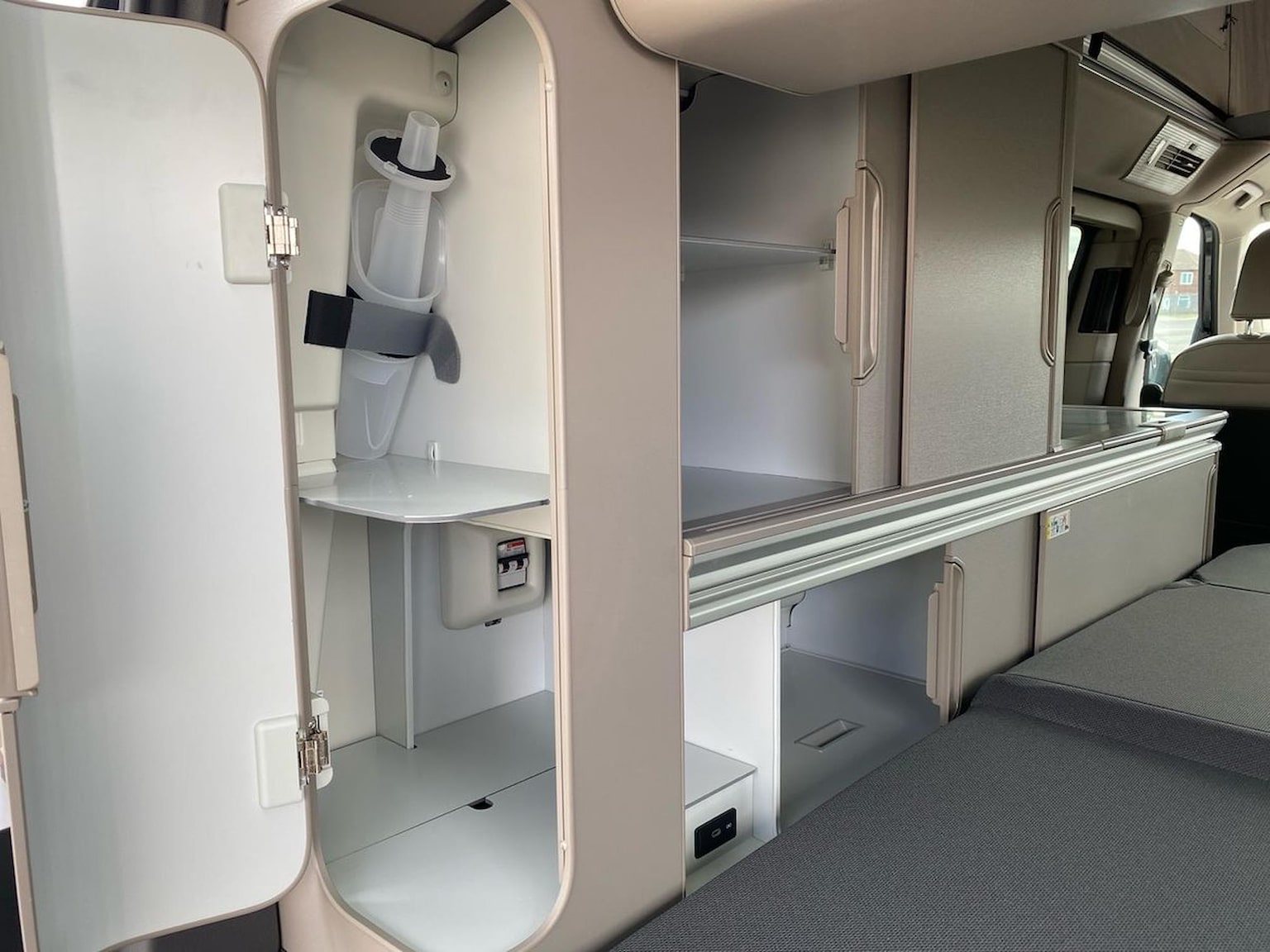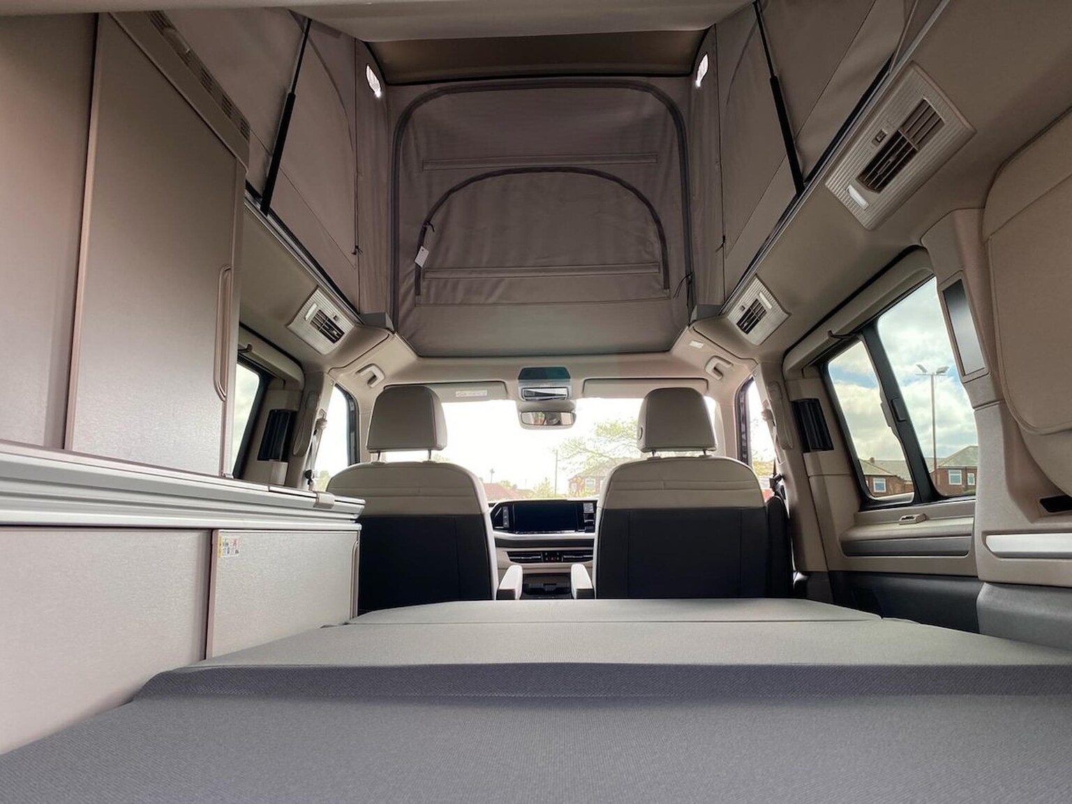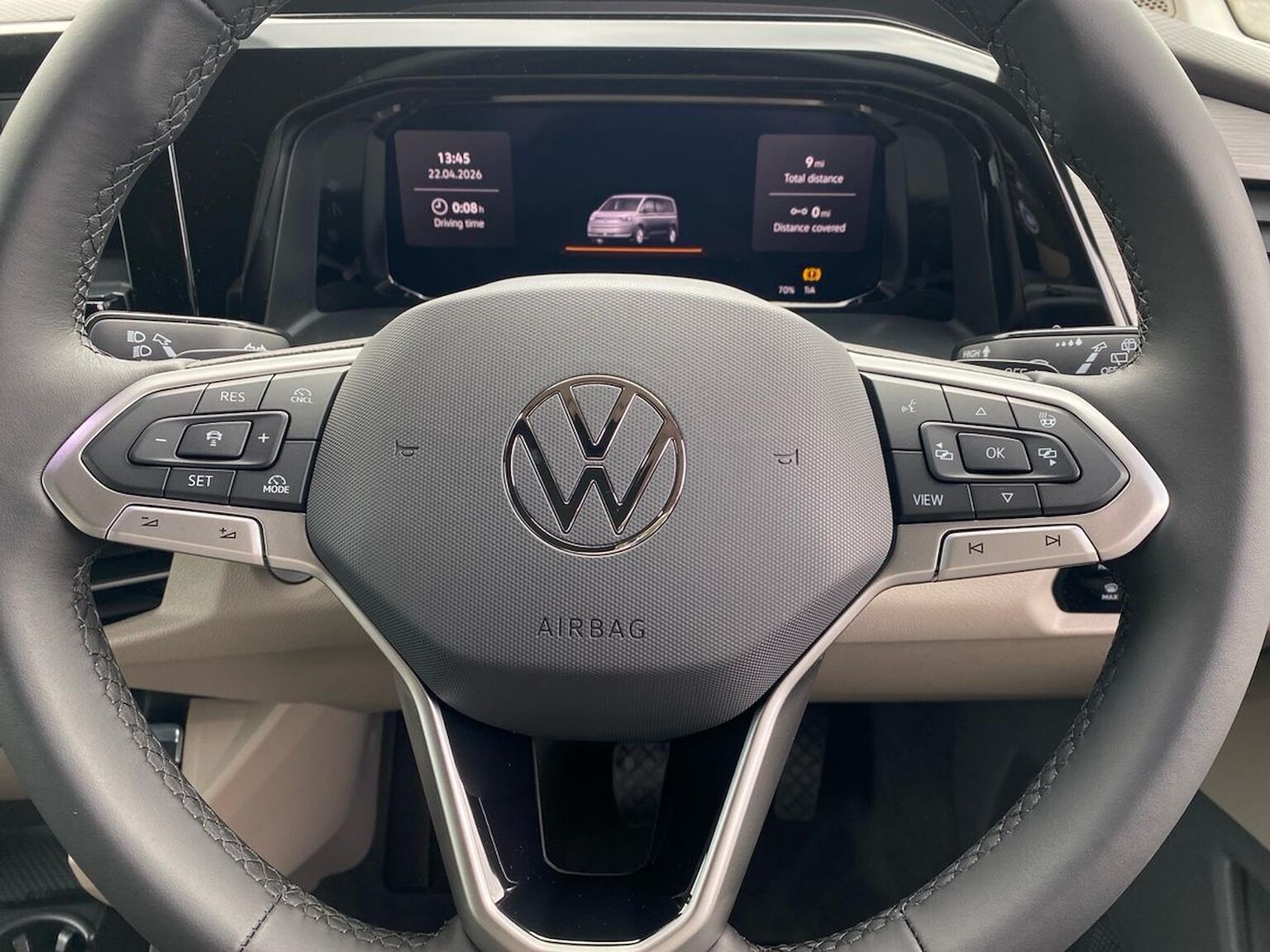 "features": "12\" digital drivers display, 13\" touchscreen infotainment display with wireless app connect and DAB radio, 5G Modem, Apple CarPlay and Android Auto, Cruise control, Dynamic road sign display, eCall emergency system, Electromechanical speed sensitive power steering, height and longitudinally adjustable steering column, Lane assist, Preparation of VW connect and connect plus, Wrong way driver warning, 4 speakers - 2x dashboard, 2x cab doors, Body coloured door handles, Heat reflecting side window glass, Mud flaps front and rear, Rear Transporter nameplate in black grained decorative trim, Vehicle opening configuration 1x 1st row of seats, 2x all doors, 2x 15-W USB data/charging ports in dashboard and 1x USB-C, 1x USB-A center bottom, 2x LED lights in load compartment, 3 spoke leather wrapped multi function steering wheel, 4 way height and tilt adjustable head restraints, Black plastic scuff plate for sliding door in cargo without illumination, Cabin interior lighting, Gear selector lever on steering wheel, Lashing rings for reinforced floor covering, Narrow centre console with cup holder and compartment for mobile phone, Overhead storage compartment, Roof grab handle on front passenger side, Rubber floor covering in cab, Striped fabric upholstery, Without passenger seats in load compartment, Driver and front passenger airbag with front passenger airbag deactivation, Dual tone horn, Front and curtain airbags for driver and front passenger, Seat belt pretensioner for driver seat, Anti theft alarm system with interior monitoring in cab, backup horn and towing protection, Electronic immobiliser, Preparation for alcohol ignition interlock, 5+ Promise, Alternator - 230A, Electronic stability control, ABS, ASR with deactivation button, hill start assist and brake assist system, ",