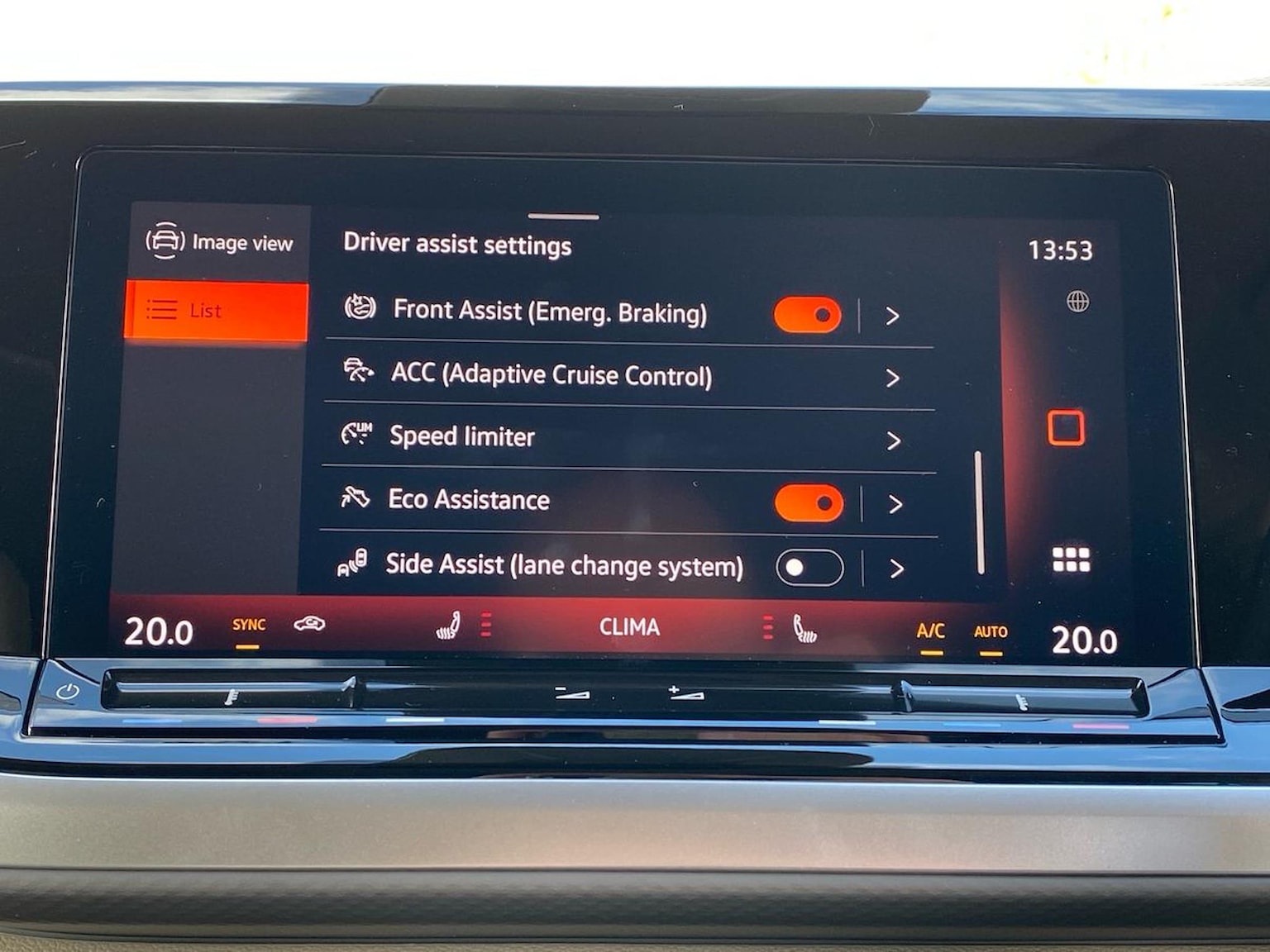 "Front assist with autonomous emergency braking (for Adaptive Cruise Control ACC up to 130 mph)",