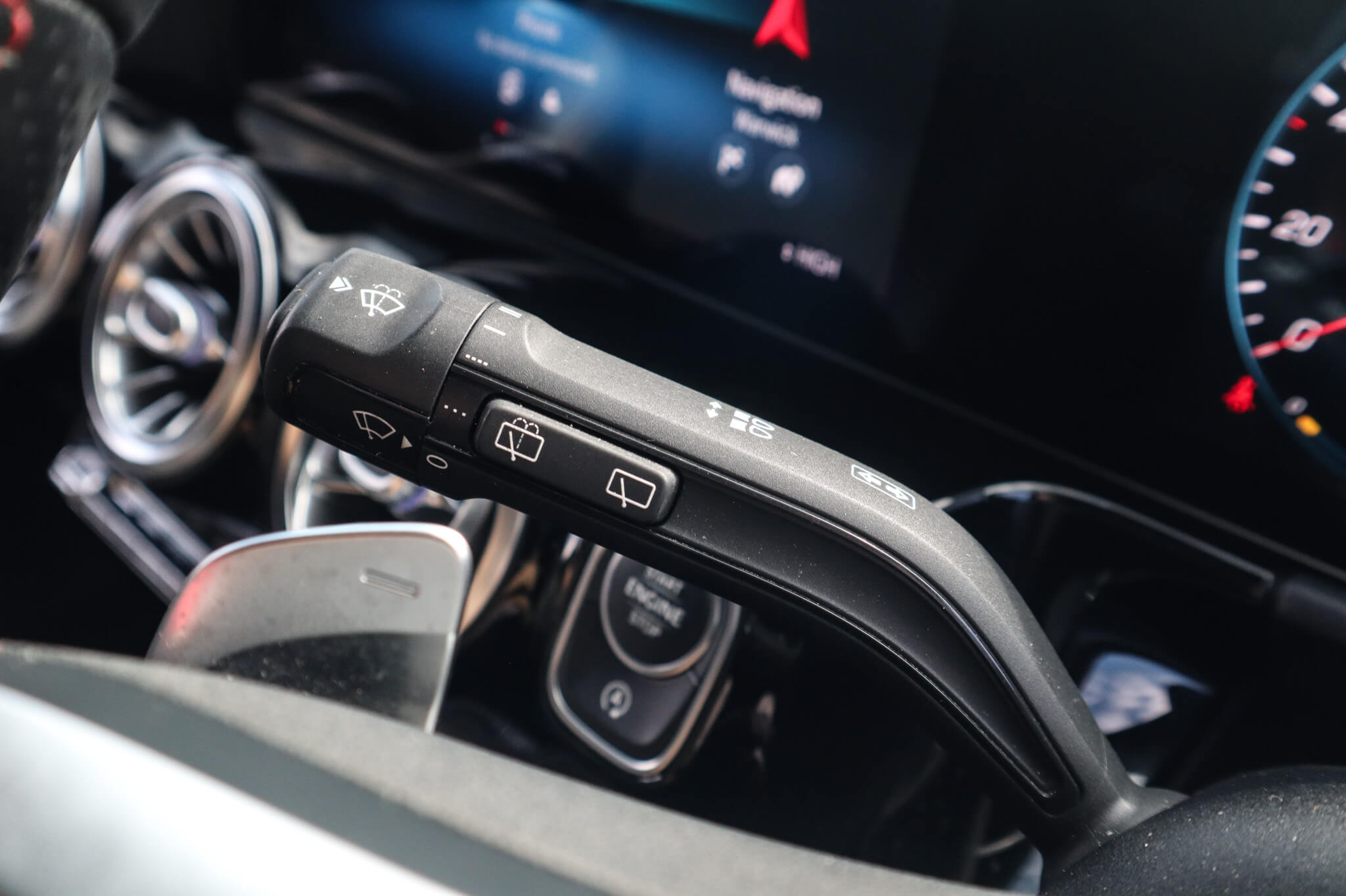 "Front windscreen wiper with intermittent wipe and 4 position delay",