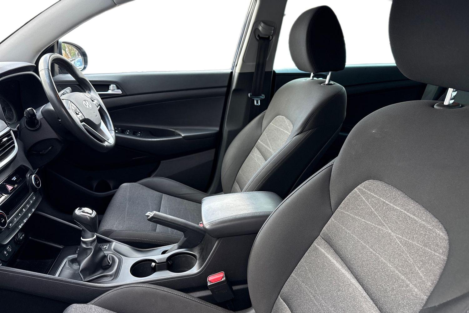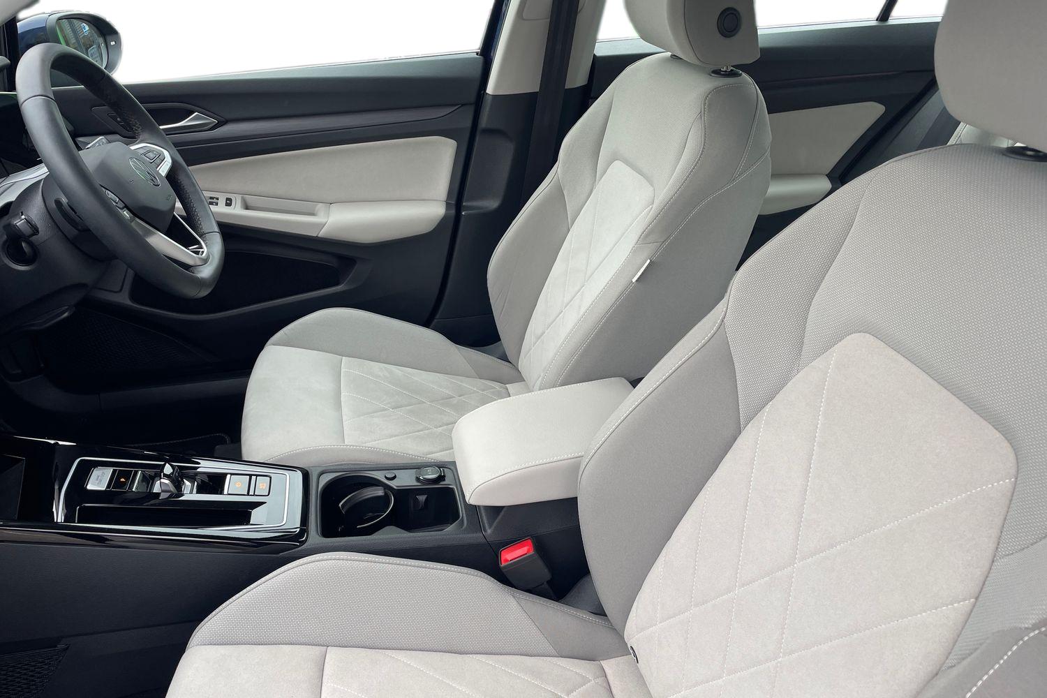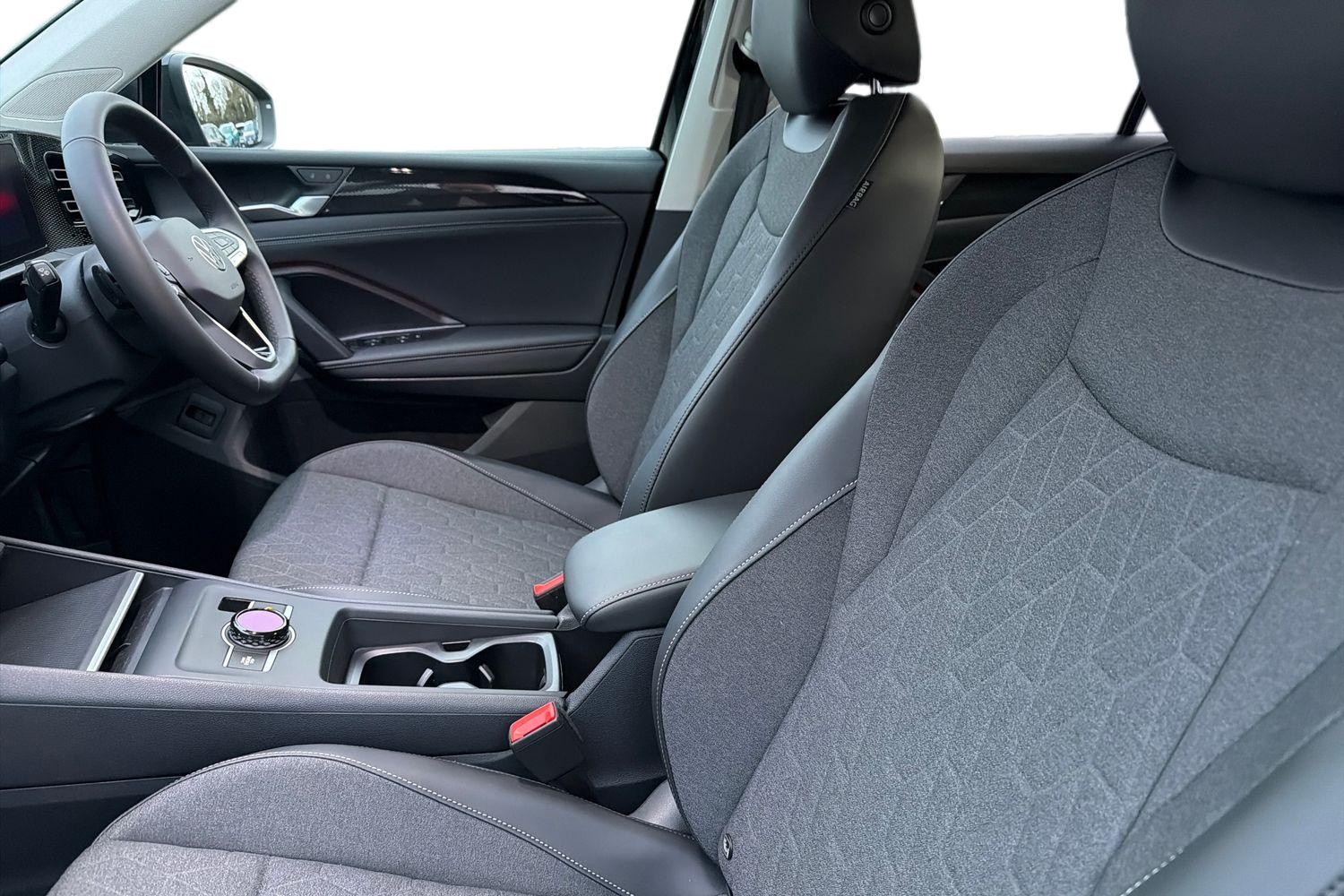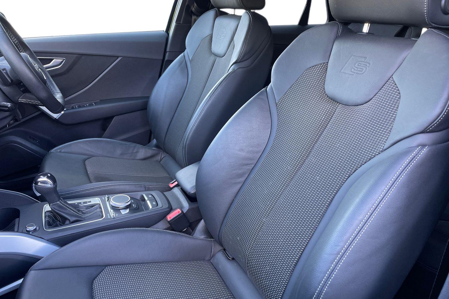 "Twin leather upholstery with front sport seats + S embossing"