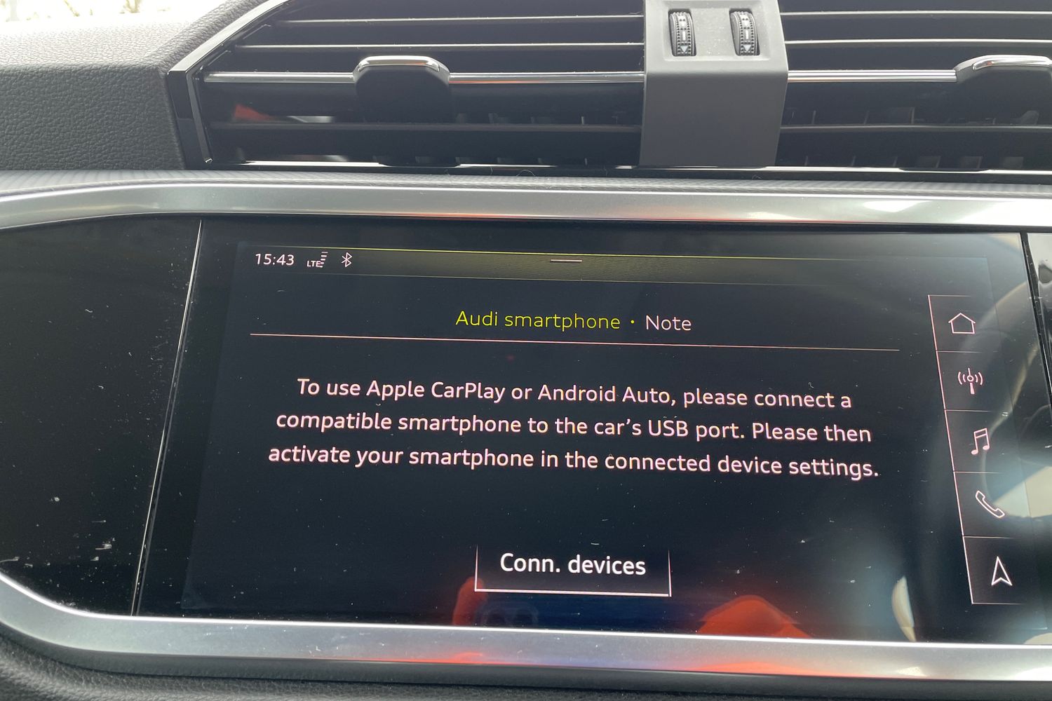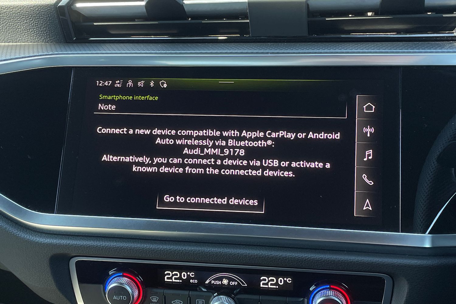 "Audi smartphone interface includes wireless Apple carplay/Android Auto",