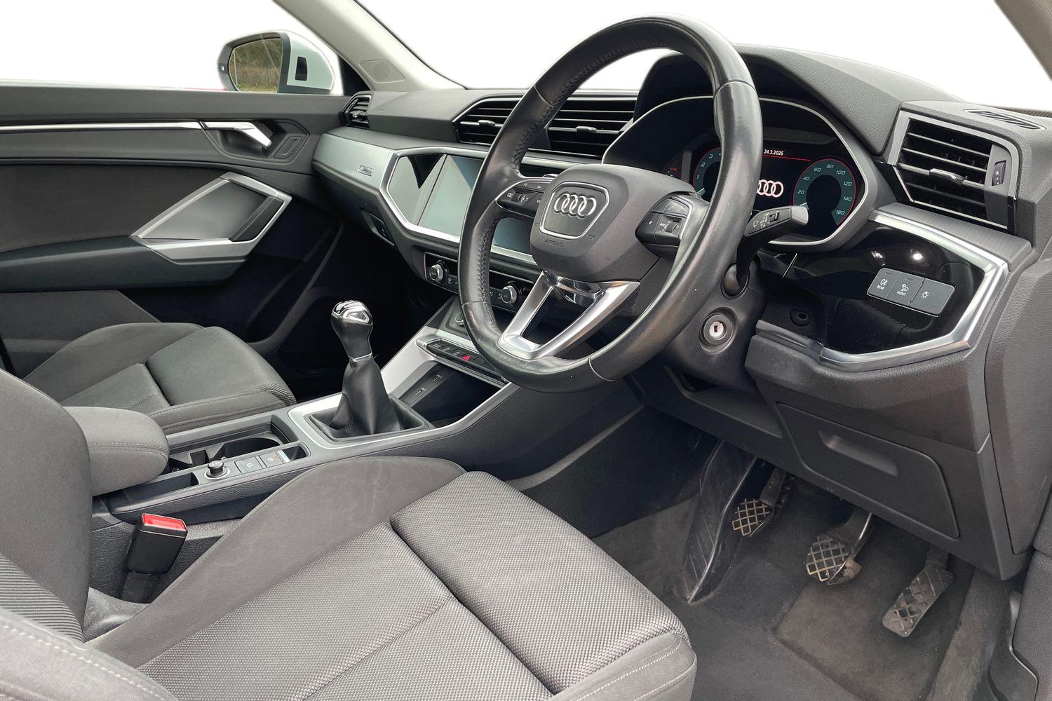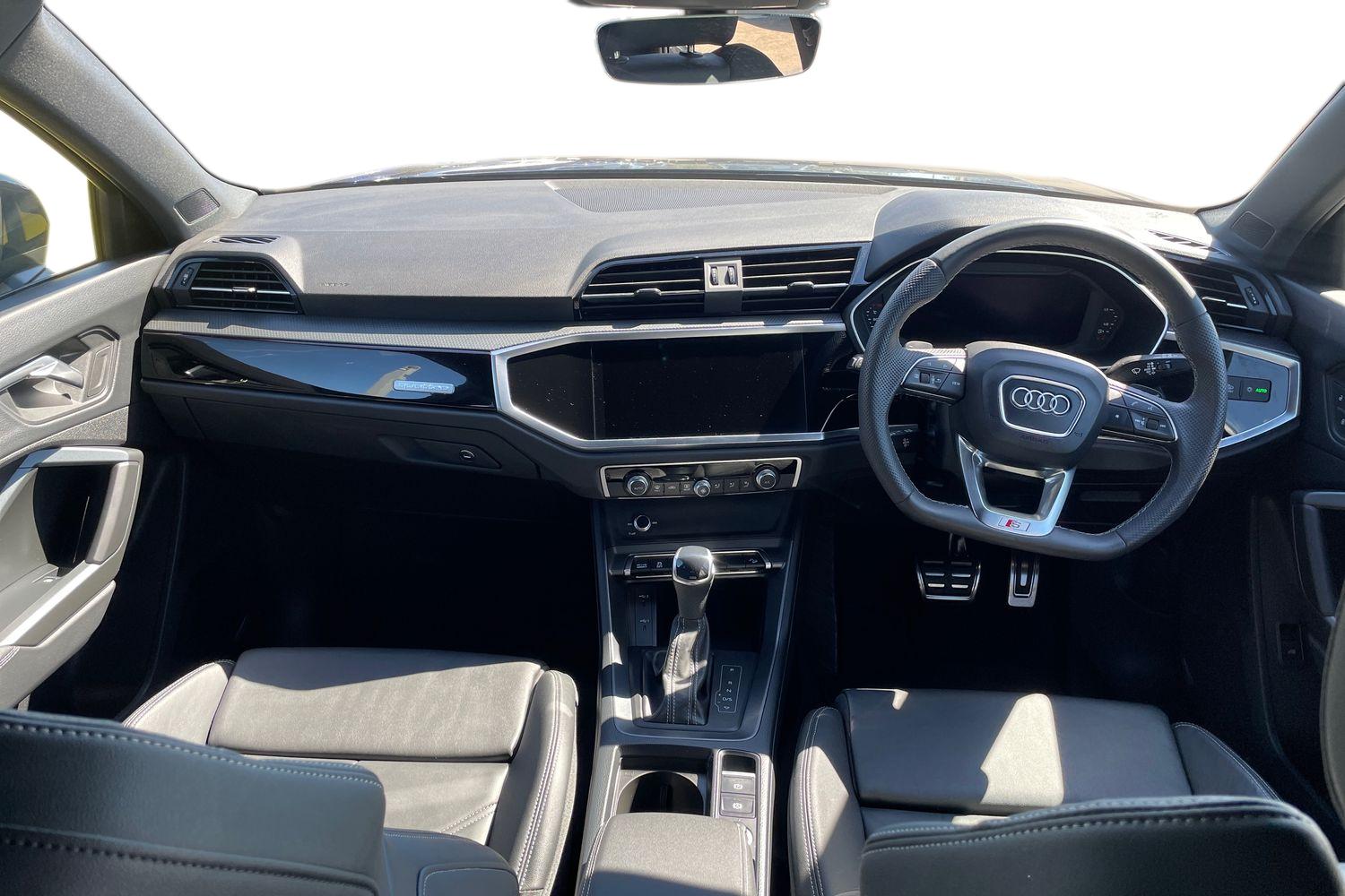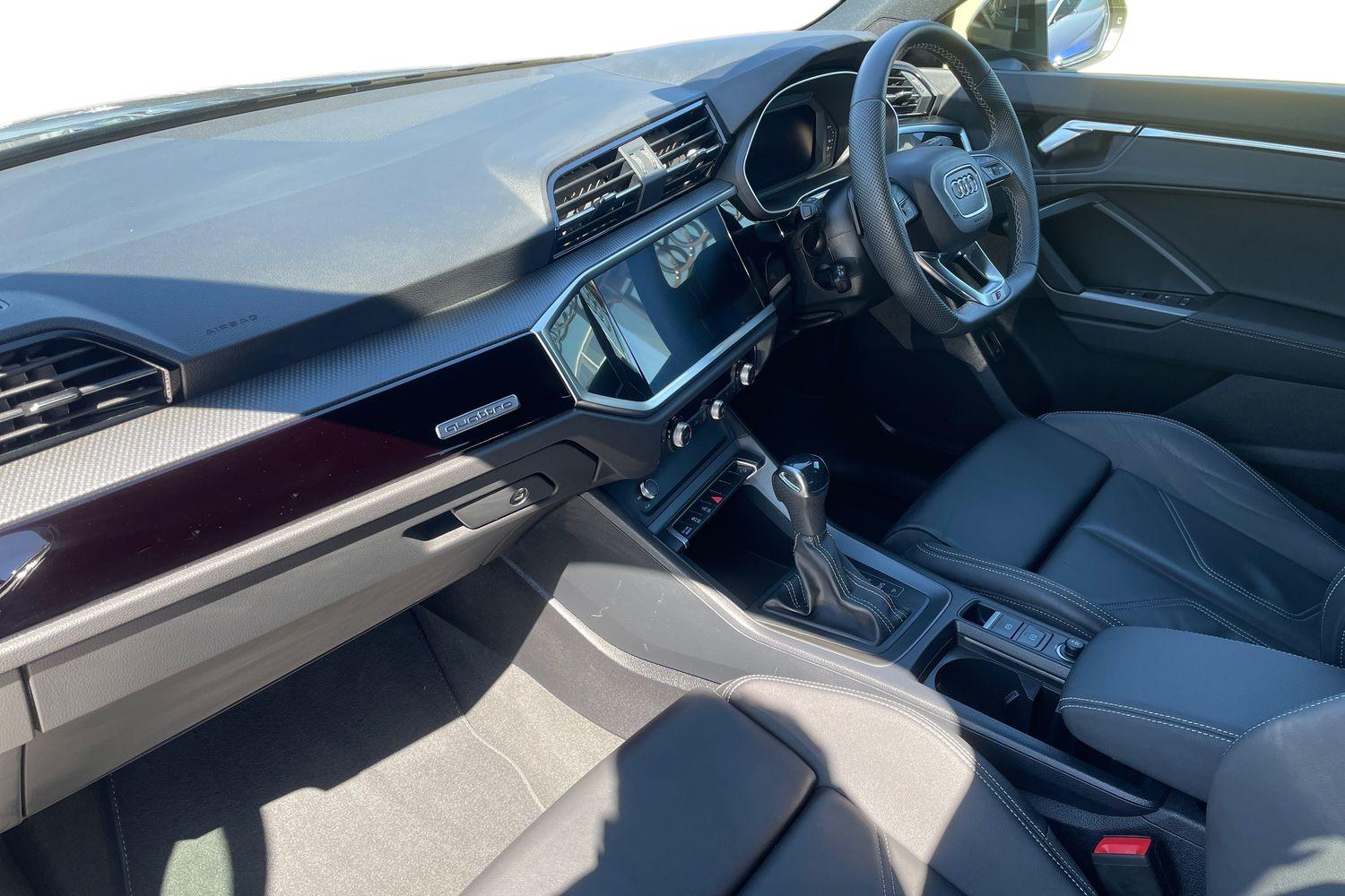 "features": "Amazon alexa Integration, Audi connect safety and service, Audi drive select, Audi lane departure warning, Audi smartphone interface includes wireless Apple carplay/Android Auto, Audi Virtual Cockpit - 10.25\" display, Bluetooth interface, Camera based traffic sign recognition, Distraction and Fatigue warning, Legal emergency call, MMI Navigation Plus with high resolution 10.1 inch touchscreen colour display, Power operated tailgate, Progressive steering, Service interval indicator, Start stop system with recuperation, Voice control system with natural language interaction, Diesel particulate filter, Sports suspension, 2 USB-C ports with charge and data functions, 6 passive loudspeakers, DAB digital radio module, Acoustic windscreen, Audi Beam uses LEDs to project the Audi logo onto the ground as you exit your Q3, Auto dimming door mirrors, Auto dimming frameless rear view mirror, Black roof rails, Electrically folding, adjustable and heated door mirrors with integrated LED side indicators and kerb view function for passenger side, Front and rear electric windows, Front fog lights, Grille vertical bars in aluminium silver/Matt, High gloss black finish B and C pillars, LED Dynamic rear indicators, LED headlights with LED daytime running lights, LED rear lights, LED third brake light, Privacy glass dark tinted rear and rear-side windows (from B-pillar backwards), Rain and light sensors, Rear diffuser grille in grained matt black, Rear diffuser strip in matt anthracite black, Rear side wing doors, Rear wiper, S line bumpers in contrasting Manhattan grey, Variable front intermittent wipers, 12V socket in rear centre console, 3 seat bench in 2nd row, 40:20:40 folding with manual adjustment for 60:40 forwards/backwards position and backrest angle, Adjustable rear seat bench/backrest with centre armrest and cupholder, Black cloth headlining, Dual zone electronic climate control, Electric lumbar support, Front and rear black floor mats with contrast stitching in rock grey, Front and rear headrests, Front centre armrest, Height and reach adjustable steering wheel, Illuminated door sill trims with S logo, ISOFIX child seat mounting for front passenger with airbag deactivation and outer rear seat including top tether attachment point for outer rear seats, Manual front seats with height adjustment, Perforated leather gearknob, Single front passenger seat, Stainless steel luggage compartment sill finisher, Stainless steel pedals, Twin leather upholstery with front sport seats + S embossing, Black styling pack - Q3, Non smoking pack - Q3, 3x3 point rear seatbelts, 6 airbags - Driver, front passenger, curtain and side windows, Audi pre-sense front with pedestrain and cyclist recognition, Electrically operated child locks on rear doors, Electromechanical parking brake, Electronic stabilisation control including ABS, ASR and EDL, Front seatbelt reminder, Hill descent control, Hill hold assist, Pre sense basic, Seatbelt monitoring, Tyre pressure warning, Warning triangle and first aid kit, Anti theft alarm, Anti theft wheel bolts, Immobiliser, Remote central locking, Aluminium look interior elements, Detail dashboard around MMI touch colour display in glass look, black with surround in aluminium look, Leatherette door armrest, Piano black inlay, ",