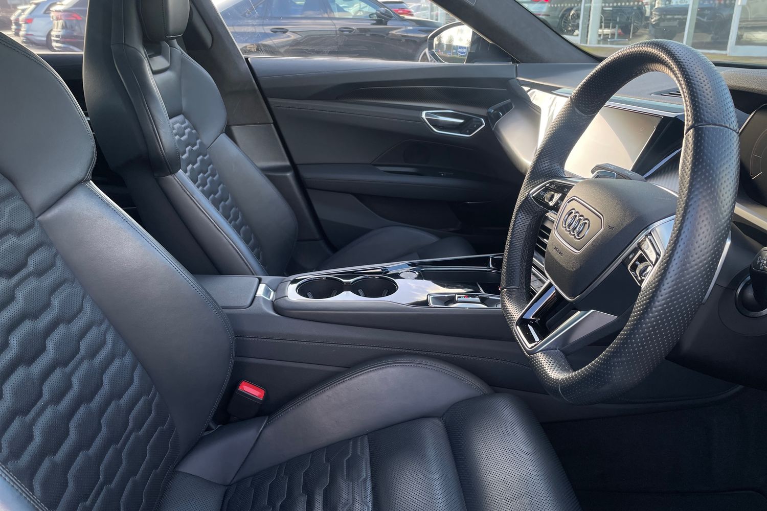 "features": "All wheel steering, Audi connect safety and service (e-call), Audi drive select, Audi phone box with wireless charging, Audi Smartphone Interface with wireless functionality, Audi virtual cockpit, Electromechanical power steering plus, Head up Display, Lane departure warning system, MMI navigation plus with MMI touch + Twin touch screens with haptic feedback, Night vision assistant, Power operated tailgate, 11KW onboard charger, AC access point on drivers side and second AC and DC charging access point on passenger side, Adaptive air suspension, Compact e-tron charging system, Household plug type G (GB), Industry plug CEE 32 A/230 V straight, Mode 3 AC charging cable, Quattro all wheel drive with torque vectoring, Bang & Olufsen premium sound system, DAB Digital radio, Acoustic glazing for front and rear side windows, Active rear spoiler, Body coloured door mirrors, Daytime running lights, Electrically adj heated/folding + automatically dimming exterior mirrors with memory + automatic kerb side function for passenger side exterior mirror, Fixed panoramic glass roof, Frameless auto dimming interior rear view mirror, Front and rear illuminated aluminium door sill trims inlays with e-tron GT logo at the front, LED rear lights with dynamic light configuration and dynamic indicators, Matrix LED headlights with Audi laser light, dynamic light sequencing and dynamic indicator, Privacy glass, Rear boot, Rear side wing doors, Windscreen with heat insulating and acoustic glazing, 18-way adjustable sports seats pro with perforated fine nappa leather upholstery, 3 spoke sport contour leather flat bottom heated steering wheel, multifunction plus including energy recovery paddles, 3 zone climate control, 40:20:40 split folding rear bench seat, Centre rear armrest with cup holder, Comfort remote pre conditioning, Driver seat memory function, Electric steering column with memory, Front passenger seat, Front/rear floor mats, Headlining in black dinamica microfibre, Heat pump, Heated front and rear seats, ISOFIX and i-Size child seat mounting with top tether for the outer rear seats, Massage and ventilation function for front seats, Shaped outer rear seats and an additional centre seat with manually height-adjustable head restraints, Sunvisors with illuminated vanity mirrors, Vehicle inlet Combo 2, Ambient Lighting Package plus - e-tron GT, City assist pack - e-tron GT, Parking assistance pack with remote parking pilot - eTron GT, Tour pack - e-tron GT, Acoustic vehicle alerting system, Audi pre sense front and basic, Child locks on rear doors, Driver and front passenger airbags, Front and rear side airbags and head airbag system, Front and rear steel brakes with black painted calipers, Tyre pressure monitoring system, Warning triangle and first aid kit, Anti theft alarm, Anti-theft wheel bolts and wheel loosening detection, Keyless Go, Tyre repair kit, ",