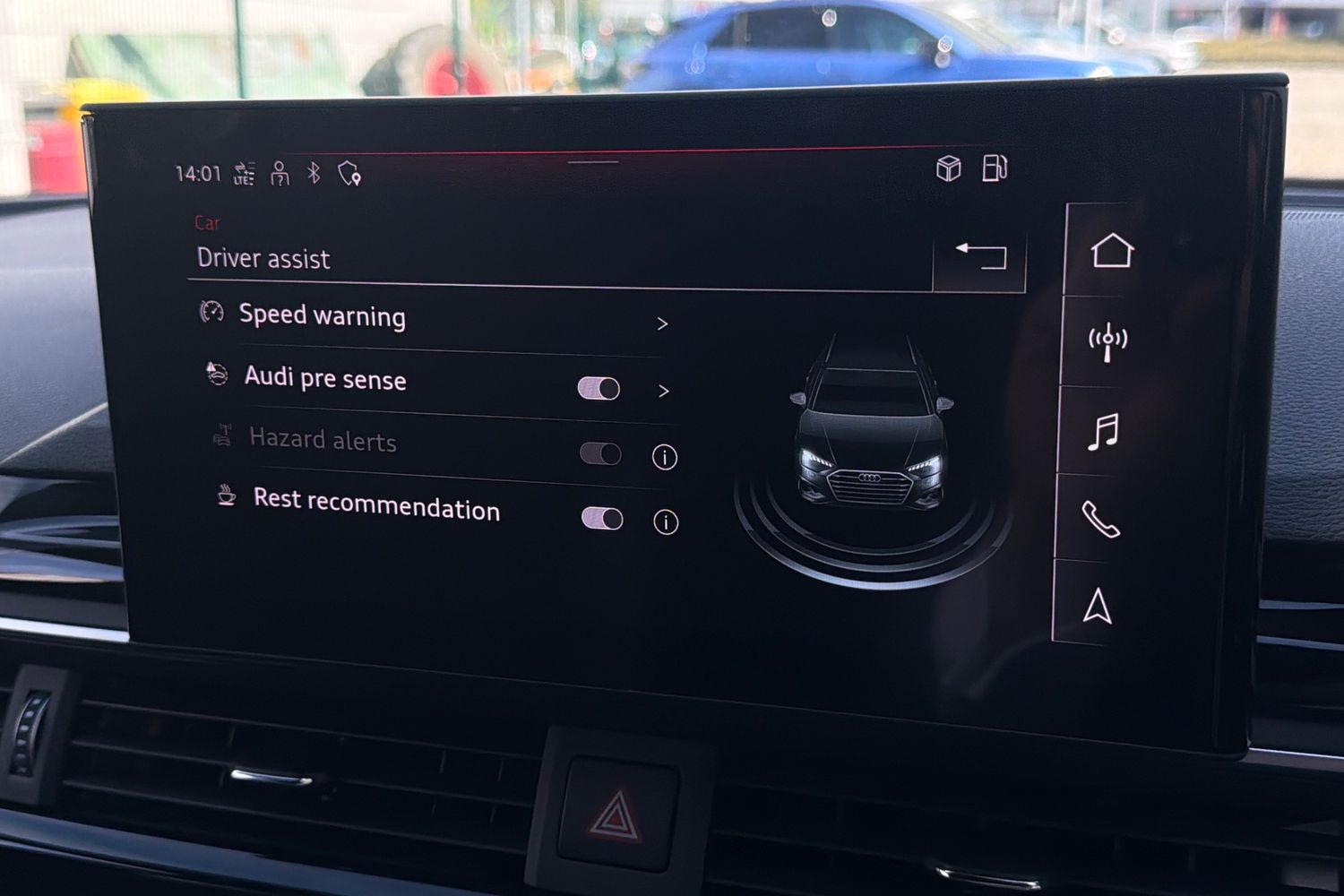 "features": "Audi drive select - power steering assistance + engine + gear shift 3 preset modes (auto, dynamic, efficiency and an Individual mode), Audi smartphone interface, Automatic start/stop system, Cruise control, Driver's information system, Electromechanical power steering, Emergency e-call, Lane departure warning system, Service interval indicator, Speed limiter, Voice control system, Washer fluid level indicator, Dynamic suspension, 2 x USB type C connection points, DAB Digital radio, Auto dimming rear view mirror, Body coloured bumpers, Body coloured door mirrors, Electric front and rear windows, Electrically adjustable, heated, folding door mirrors with integrated LED side indicator, Front side air inlets in grained matt black and C frame in anthracite black, Heat insulating glass windscreen and side windows, Heated rear windscreen, High level LED brake light, LED headlights with LED rear lights + dynamic rear indicators + headlight adjustment and high beam, turning light + LED daytime running lights, Radiator grille and rear diffuser in matt anthracite black, Radiator protective grille frame in matt aluminium silver, Rain and light sensors, Rear fog lights, Rear side wing doors, Rear wiper, Side front spoiler lips in grained matt black, 12V socket in centre console with two cup holders, 3 rear seats with headrests, 3 seat bench in 2nd row, 3 spoke leather multifunction plus steering wheel, 40:60 Split folding rear seat or folded fully, Black front and rear floor mats, Door sill trims with aluminium inlay, Driver and passenger seat with manual height adjust with forward and backwards adjustment, Front head restraints, Front passenger seat, Grey cloth headlining, Height and reach adjustable steering wheel, ISOFIX child seat mounting for front passenger and outer rear seats including top tether attachment point of outer rear seats, Leather gear knob with aluminium trim, Leather handbrake grip, Luggage compartment light with front and rear reading lights, Manually adjustable lumbar support in front seats, Novum cloth upholstery with front sport seats, Luggage compartment pack - A1, Technology pro pack - A1, 3x3 point rear seatbelts, Audi pre-sense front with pedestrain and cyclist recognition, Brake assist function, Driver and front passenger airbag with front side and head airbags, Electronic Stability Control including ABS, EBD, ASR and EDL, Front passenger airbag deactivation switch, Hill hold assist, Manual rear child locks, Seatbelt height adjustment for front seats, Seatbelt monitoring, Tyre pressure warning light, Warning triangle and first aid kit, Anti theft alarm, Anti theft wheel bolts and loose wheel warning, Immobiliser, Aluminium trim for control switches, air vents and digital instrument cluster, Black dashboard, Silver grey accent areas including air vents, door handle recesses and centre console in diamond paint finish, Slate grey inlays polygon structure in fine paint finish, ",