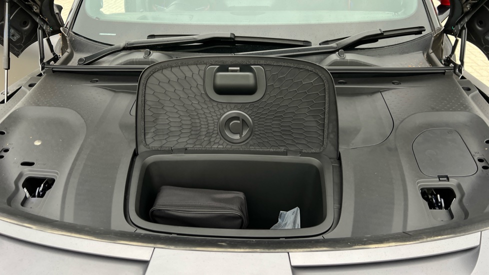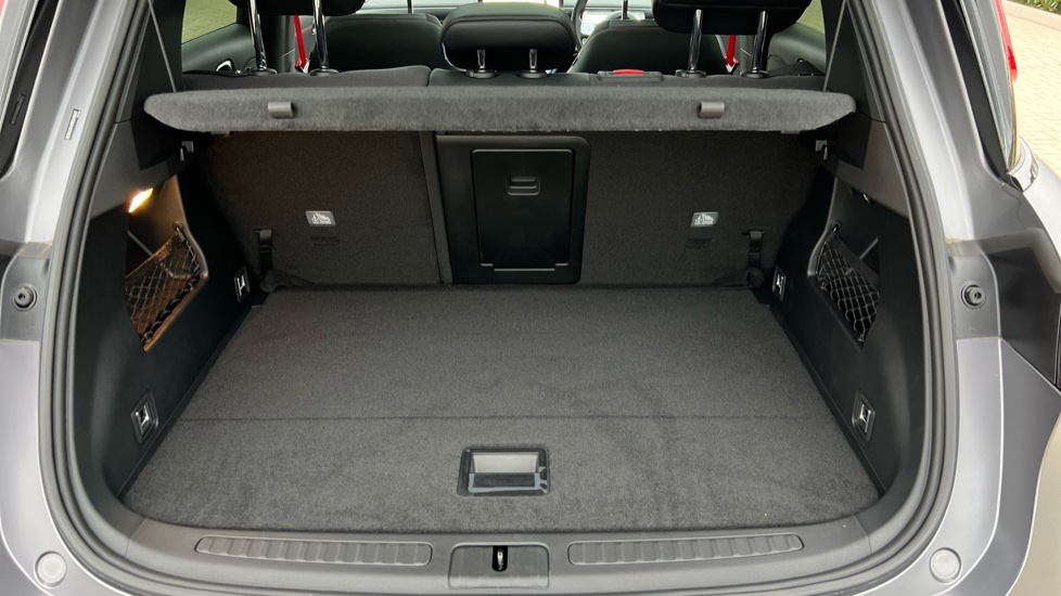 "Storage compartment under front seats"