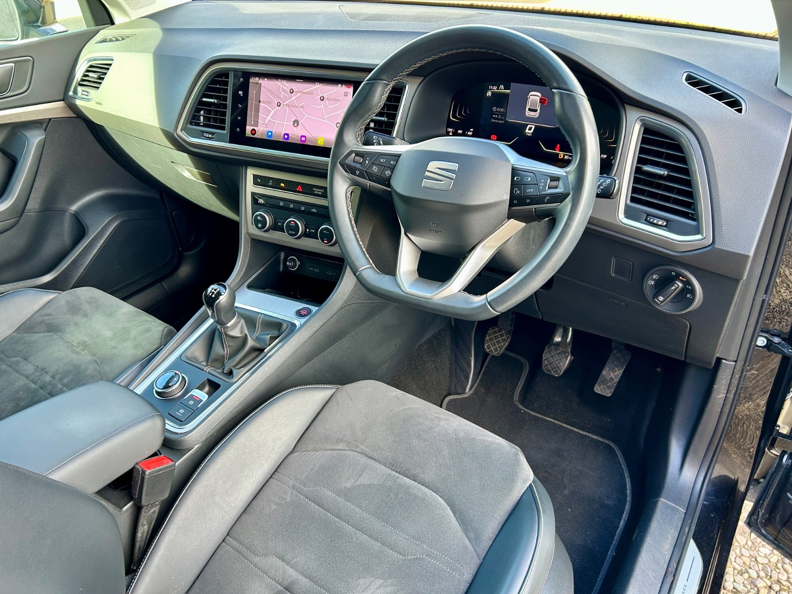 "Leather gear knob and handbrake grip",
