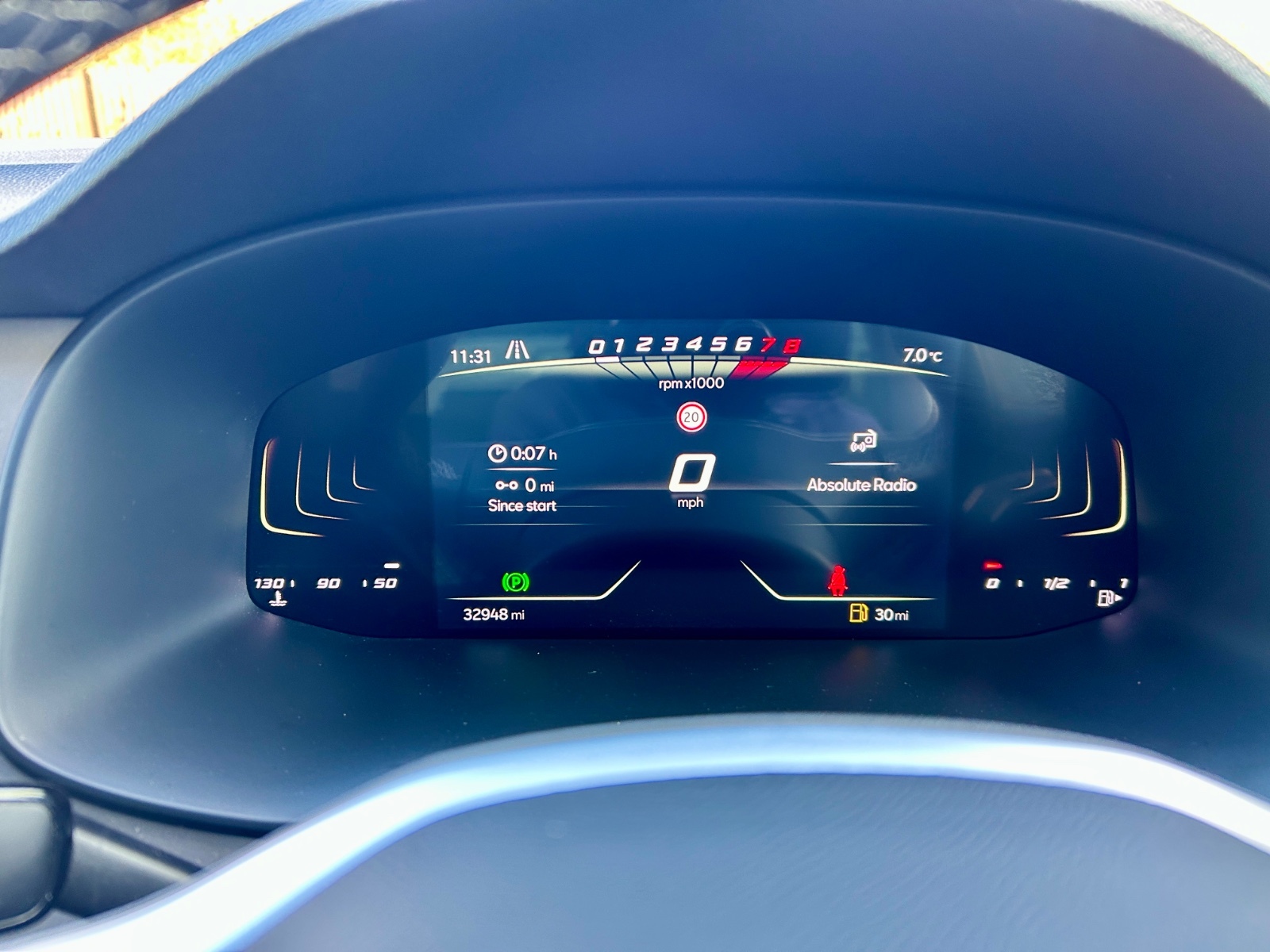 "Speedo and rev counter, electronic odometer, trip, service interval display and fuel gauge",