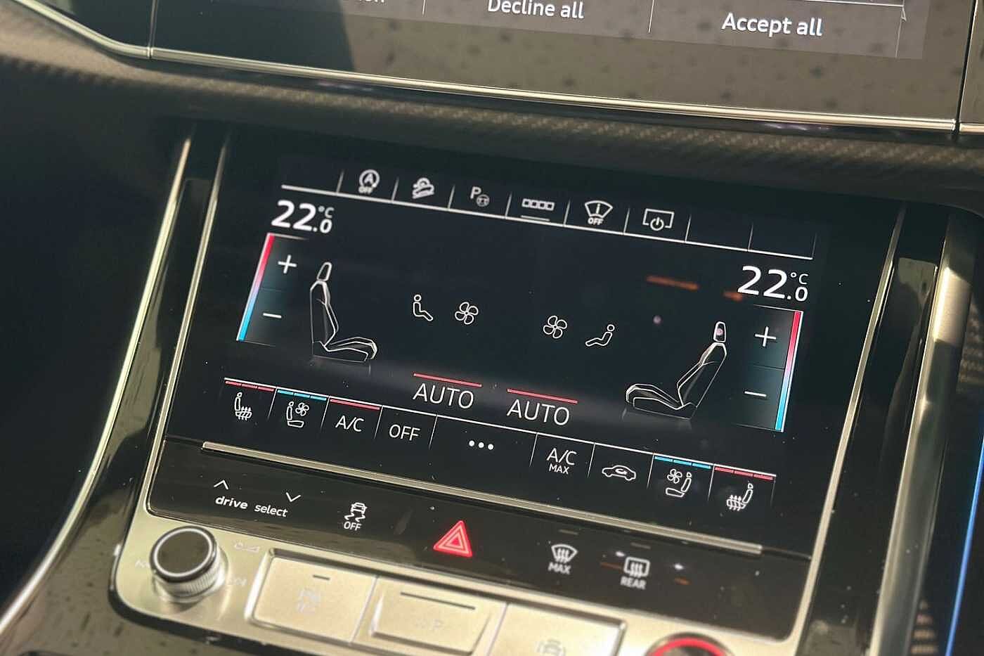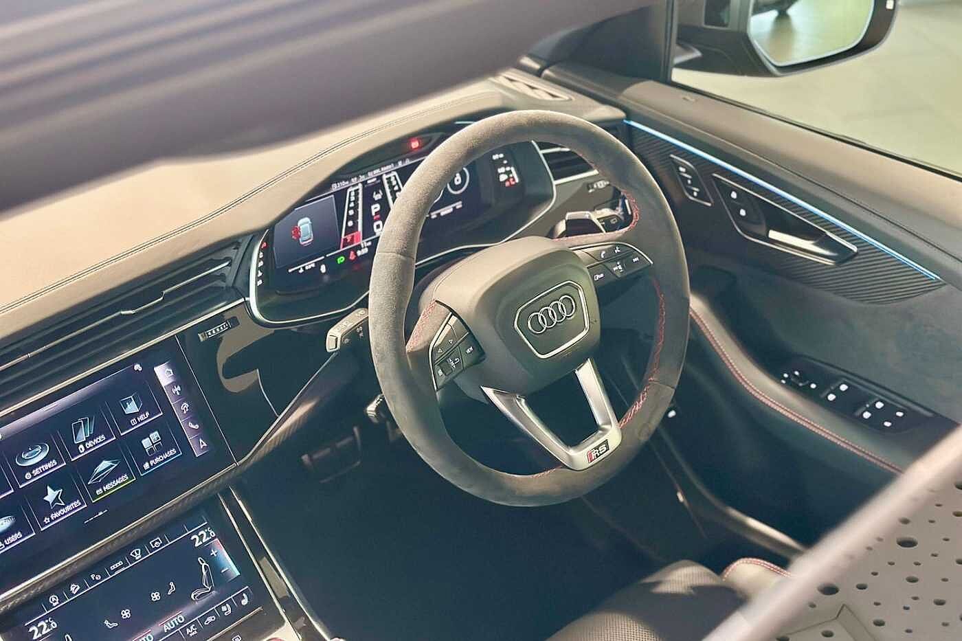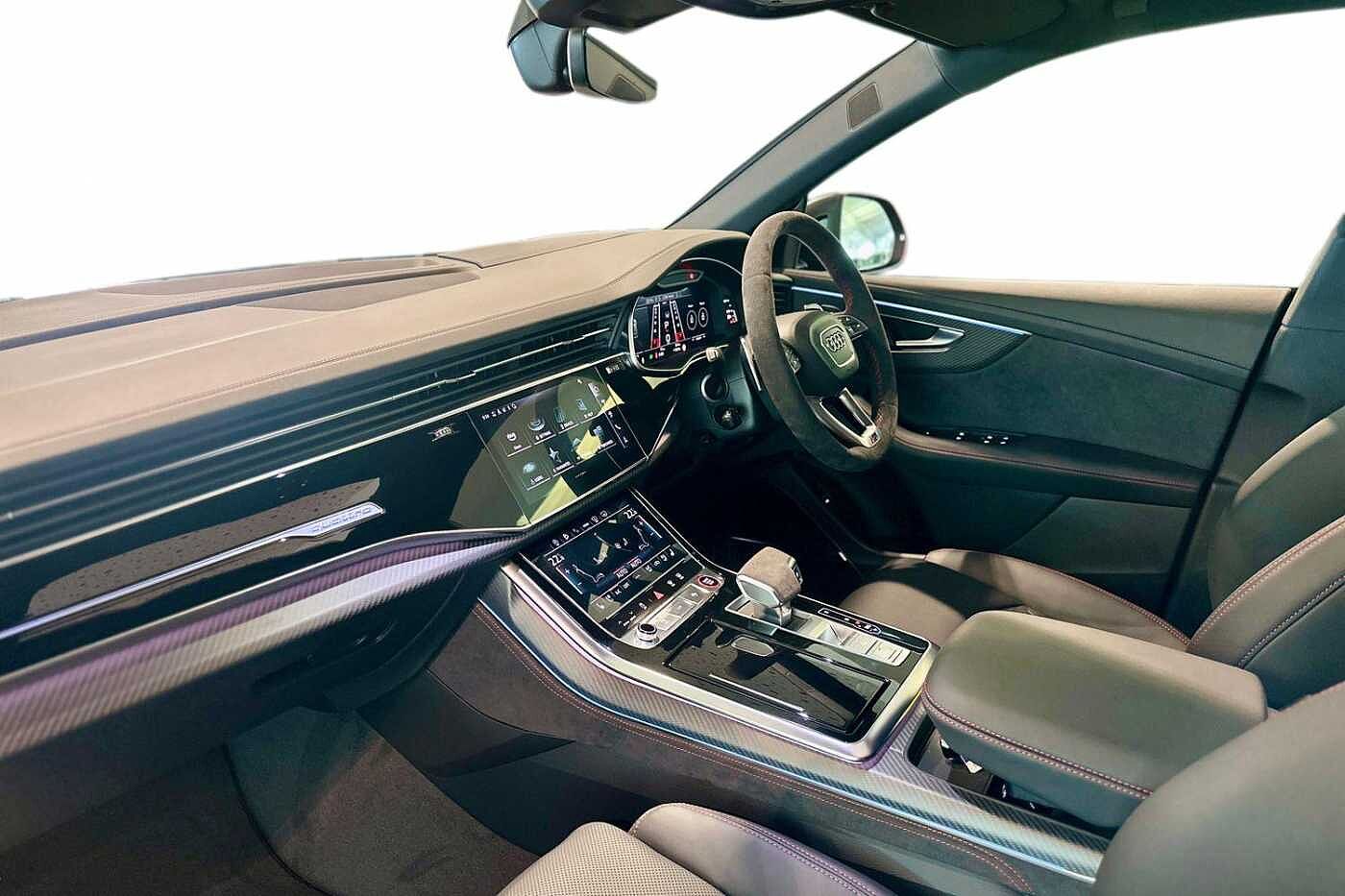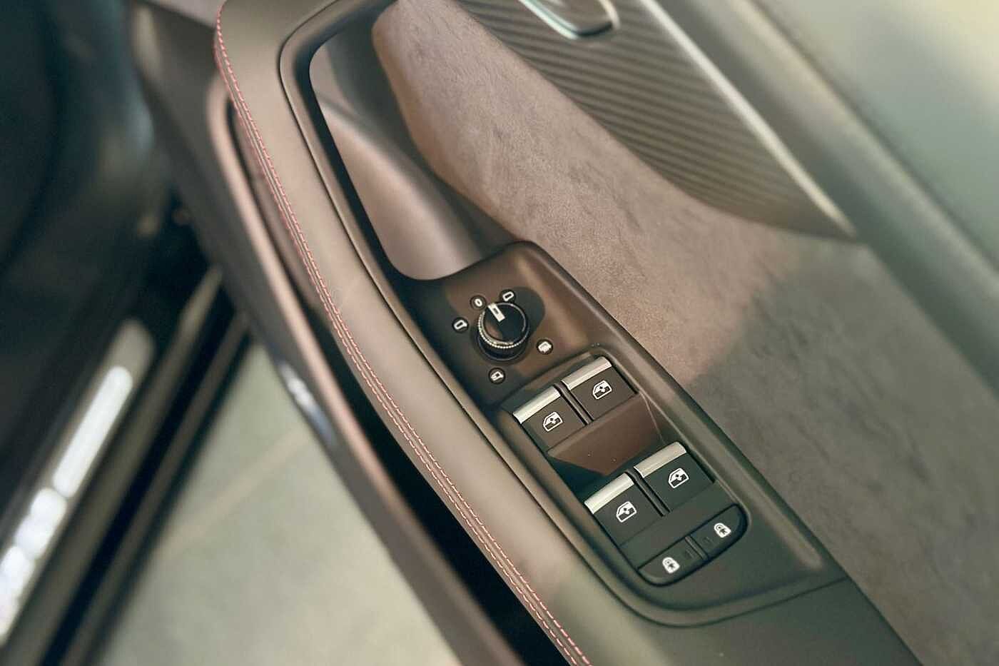 "Dark spectrum aluminium inlays, accent surfaces in the dashboard and centre console in platinum grey silk effect paint finish"