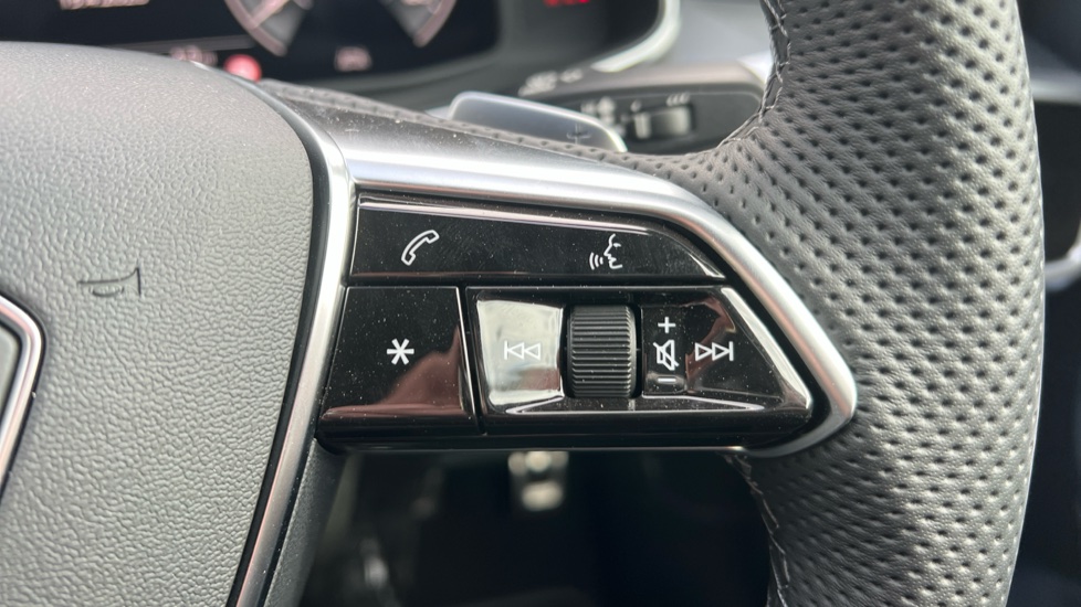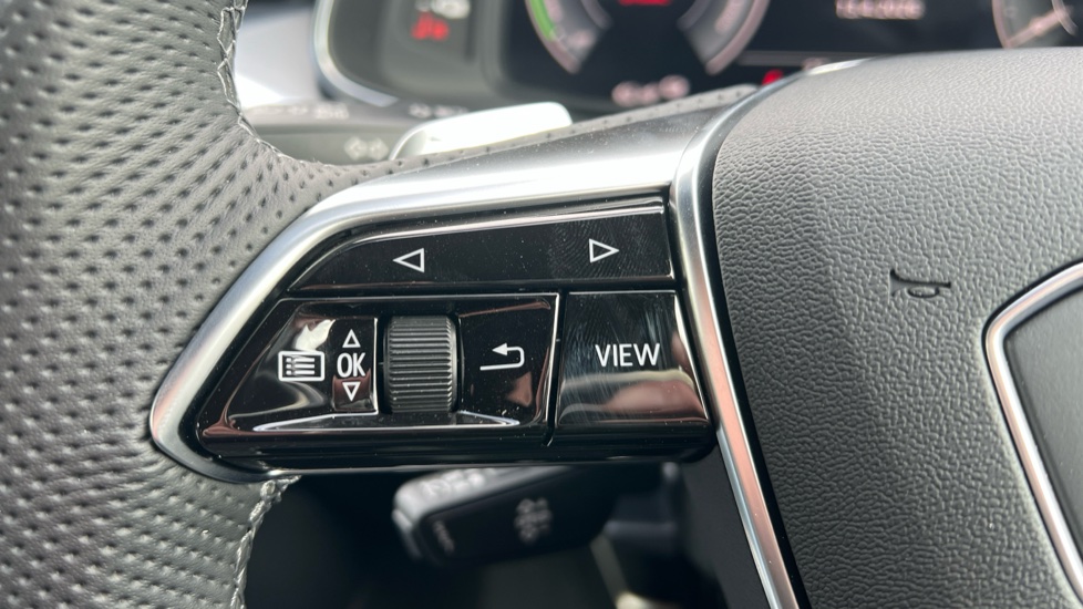 "2-spoke leather heated multi-function steering wheel with paddles for recuperation level selection",