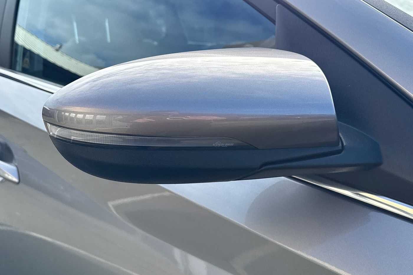 "LED side indicator lights integrated into door mirrors",