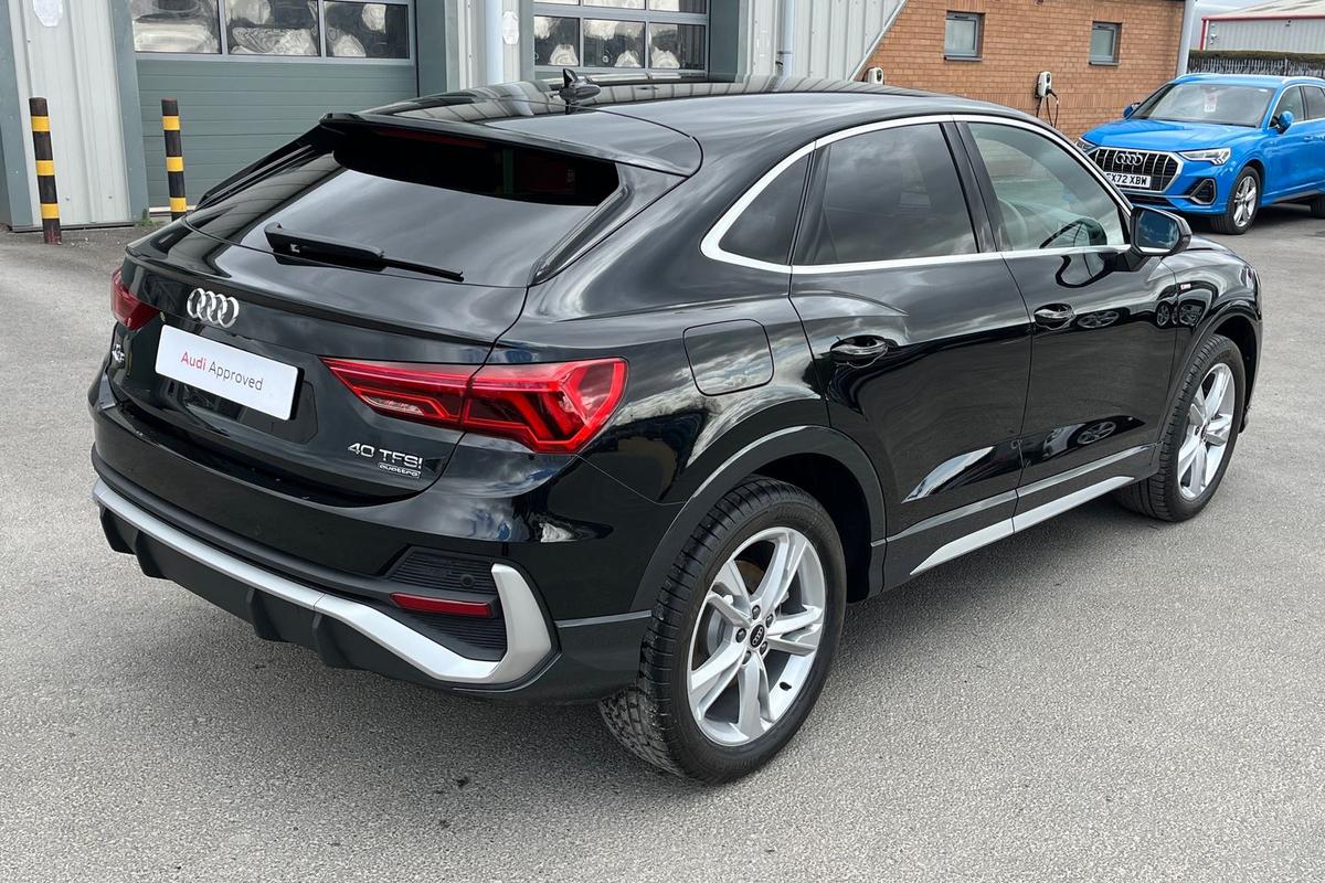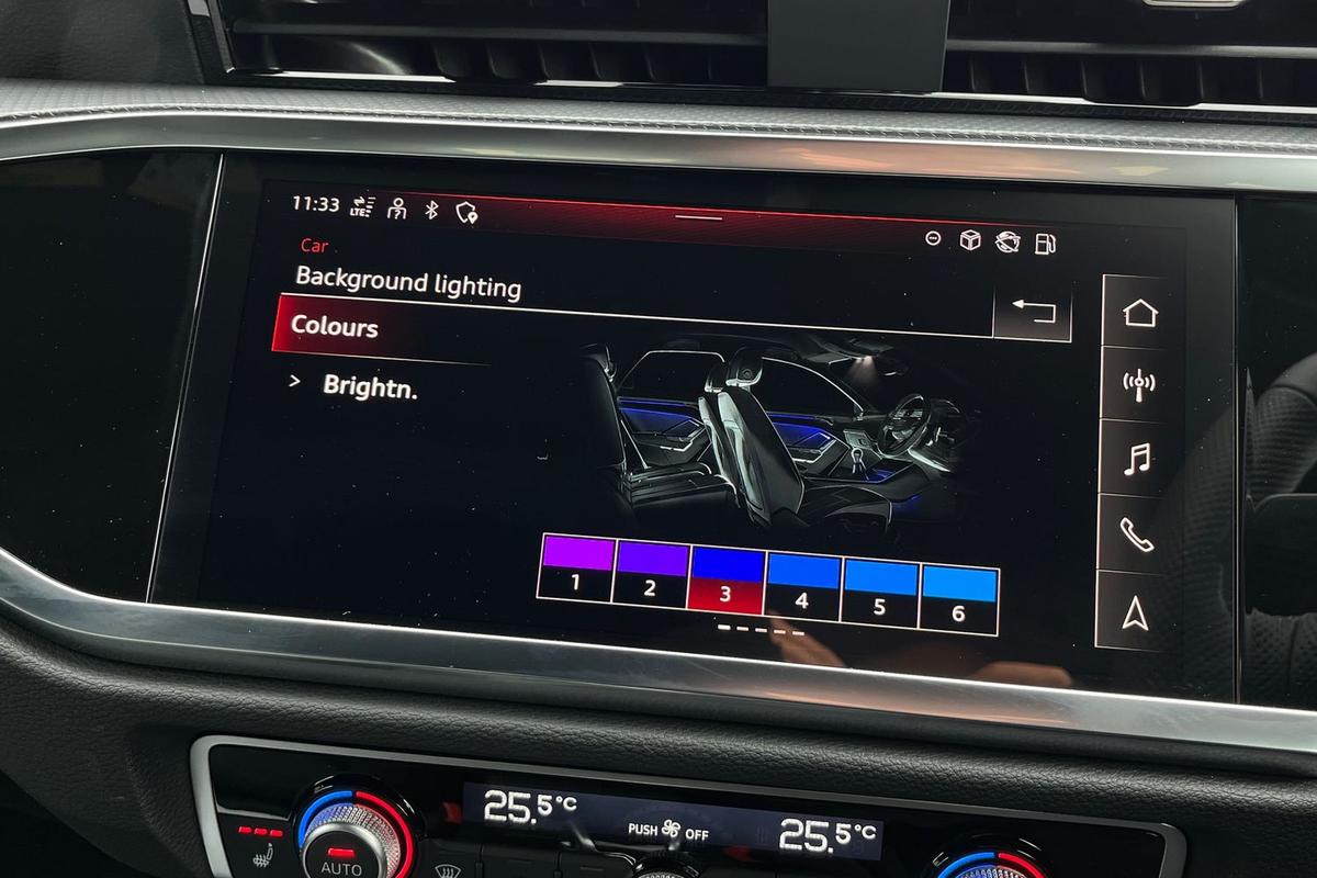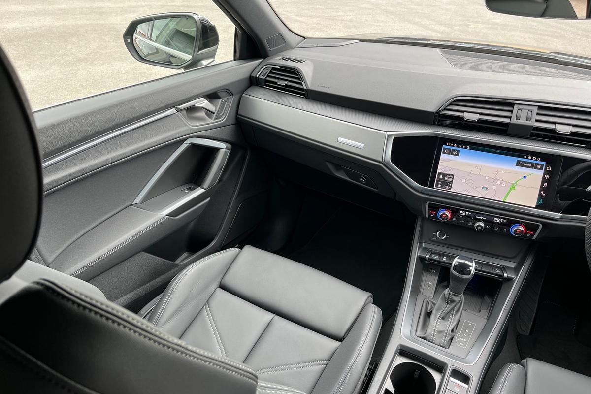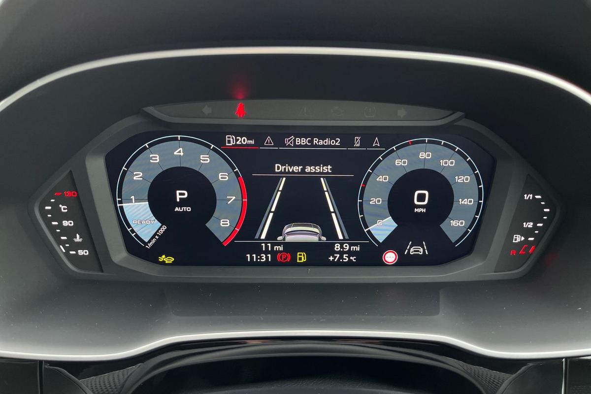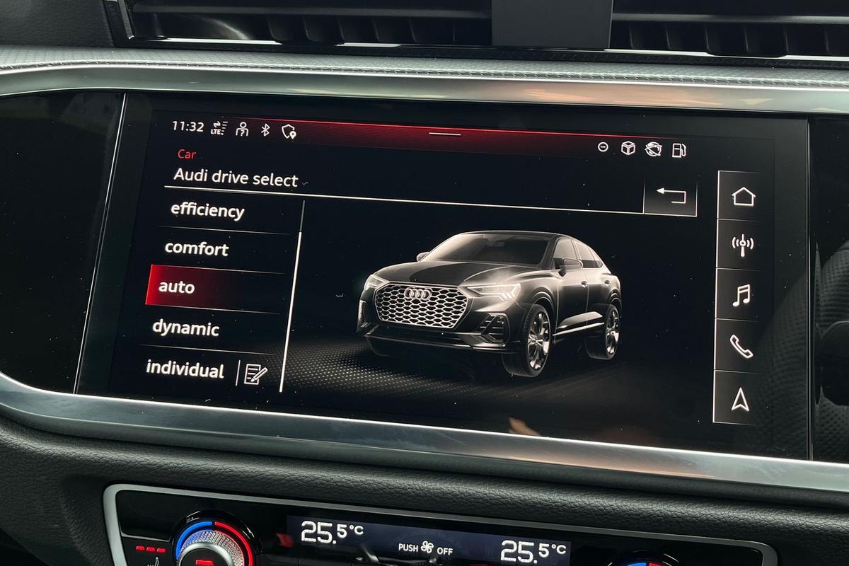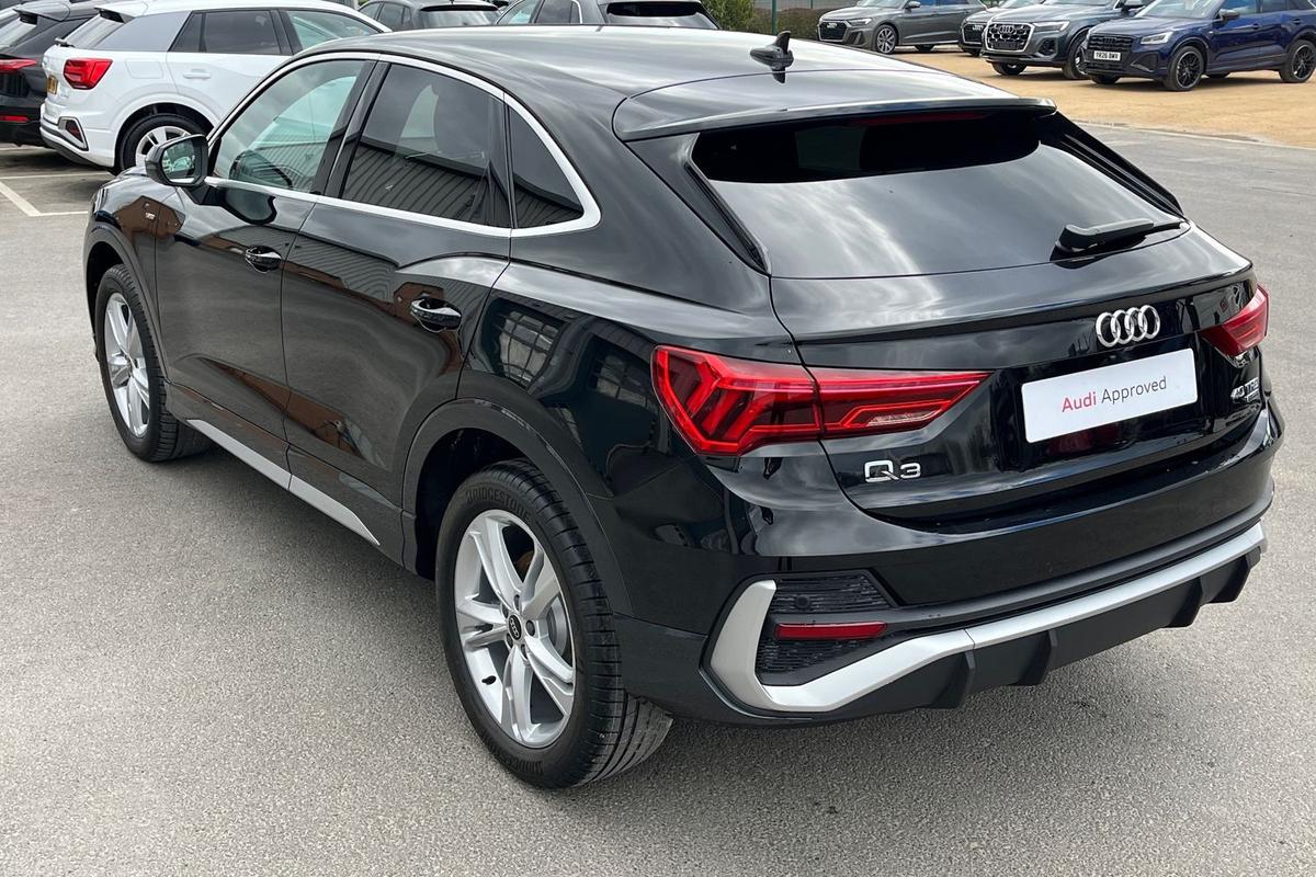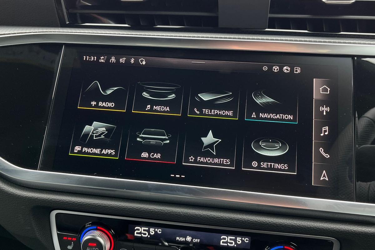 "features": "Adaptive cruise control, Audi connect emergency call and service, Audi connect remote and controls, Audi drive select (Balanced/Individual, effeciency, comfort and dynamic), Audi virtual cockpit plus - 11.9\" display, Bluetooth interface, Camera based traffic sign recognition, Driver attention and fatigue monitor with driver monitoring, Front cross traffic assist, Lane departure warning with emergency assist, Panoramic curved display with 12.8\" MMI navigation plus and MMI touch, Park assist plus with parking system and 360 display, Phonebox light with wireless charging, Reversing camera, Smartphone interface includes wireless Apple carplay/Android Auto, Start/stop system, Swerve assist and turn assist, Traffic sign based speed limiter, Voice control system with natural language interaction, Comfort suspension, Petrol Particulate Filter, 2 USB-C ports with charge and data functions, Audi sound system with 10 loudspeakers, subwoofer,8 channel amplifier with 260 watts, DAB digital radio module, Acoustic glass for front door windows, Acoustic windscreen, Aluminium roof rails, Aluminium window trim, Audi Q3 lettering on the B-pillars, Auto dimming door mirrors, Auto dimming rear view mirror, Body colour door mirrors, Contrasting finish in volcano grey, Electrically folding, adjustable and heated door mirrors with integrated LED side indicators and kerb view function for passenger side, Full paint finish, Illuminated door sills with aluminium inserts at the front with S logo, LED daytime running lights, LED headlights plus with LED rear lights pro with continous light strip,illuminated Audi rings, rear, LED third brake light, Loading sill protector in stainless steel, Main beam assist, Privacy glass - dark tinted rear window, rear door and side windows, Projection light in the exterior mirrors - Projects a graphic element onto the ground, Q3 badging on the rear, Rain and light sensors, Rear side wing doors, Rear window, rear door windows and rear side windows in clear glass, Rear wiper, Sports bumpers, 3 seat bench in 2nd row, 3 spoke flat top and bottomed leather multi function sport steering wheel with gear shift paddles and \"S\" badging, 3-zone deluxe automatic air conditioning, 4 way lumbar support for the front seats - electric with horizontal and vertical adjustment in four directions, Black cloth headlining, Front and rear floor mats, Front and rear headrests, Front centre armrest, Heated front seats, Height and reach adjustable steering wheel, Interior storage compartment, Leather/artificial leather upholstery combination with S emblem + front sports seats, Luggage compartment lid, electrically opening and closing, Manual front seats with height adjustment, Rear seat bench plus with split folded 40:20:40, Single front passenger seat, Stainless steel pedals, Steering wheel operating unit, gloss black, Storage compartment in front centre console, Ambient lighting package pro - Q3, S line exterior styling pack - Q3, 3x3 point rear seatbelts, Convenience key with safelock, Driver and front passenger airbag with passenger airbag deactivation, Electromechanical parking brake, Electronic stabilisation control including ABS, ASR and EDL, First aid kit with warning triangle and high visibility vests, Front emergency brake assist, Hill hold assist, i - Size child seat mounting on the front passenger side and i - Size and top tether on the outer rear seats, Power operated child locks, Seatbelt monitoring, Three point automatic belts with belt tensioner and height adjustment, Tyre pressure loss indicator, Anti theft wheel bolts, Remote central locking, Thatcham approved category 1 anti theft alarm, Dark aluminium divergence inlay, Interior elements in dinamica microfibre, Interior trims in aluminium look, Tool kit and Jack, ",