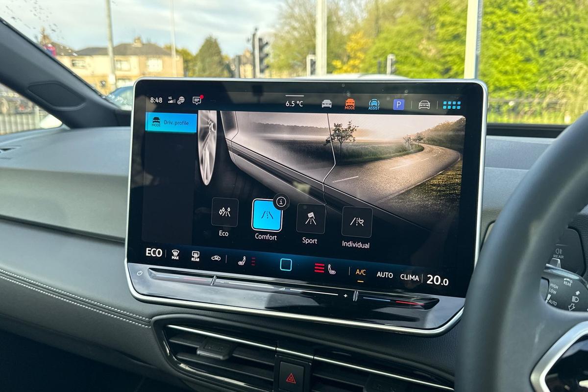 "features": "Adaptive cruise control, Bluetooth connectivity, Car2X intelligent vehicle networking, Discover pro navigation with 10\" screen, Driver alert system with fatigue detection, Driving profile selection, Dynamic road sign display, E-call, E-Sim card for online connectivity, Front and rear parking sensors, Lane assist, Natural voice control, Oncoming vehicle braking when turning including swerve support, Power assisted speed sensitive steering, Remote tailgate unlocking, Security and service (SOS buttons), Trip computer, Warning signal and warning light for front and rear seatbelts not fastened, Wireless app connect, Wireless Smartphone charger, 120kW DC battery charging, Charging cable mode 3, Type 2: 7.2kW 1-Phase/11kW 3-Phase (32A), Standard electronic engine sound actuator, 2 USB C ports in front, 2 USB charging sockets on the centre console in the rear charging capacity upto 45W, DAB Digital radio, Auto dimming rear view mirror, Automatic headlights, Automatically front heated washer nozzles, Body colour door handles, Body coloured bumpers, Body coloured door mirrors with intergrated indicators, Front and rear electric windows, Heat insulating windscreen, Heated windscreen washer jets, High beam assist with automatic sensing for switching between dipped and main beam, LED 3rd brake lamp, Rain sensor, Rear side wing doors, Rear wiper, Remote electrically foldable door mirrors, puddle lights and reverse activated passenger's door mirror, Separate LED daytime running lights which also perform the indicator function, Variable front intermittent wipers, Welcome light, 2 seat bench in 2nd row, Air Care climatronic 2 zone air conditioning, Artvelour eco upholstery, ArtVelours door and side trim panel, Asymmetric split folding rear seat backrest with center armrest, Centre console with illuminated storage compartment with sliding cover and two drinks holders, Comfort seats, Electric auxiliary air heater, Ergoactive seats in front with power adjustment, memory feature and adjustable thigh support, Folding rear seats, Front armrests, Front headrests, Heated front seats, Isofix child seat preparation easy-fit (for two outer rear seats, and front passenger seat) compatible with I-size, Leatherette-wrapped multifunction heated steering wheel with touch control, Play and Pause brake and accelerator pedals, Pneumatically adjustable lumbar support on both sides with massage feature, Reach + rake adjustable steering column, Rear headrests, Single front passenger seat, Sunvisors with illuminated vanity mirrors, 2 rear 3 point safety belts, Anti-lock braking system (ABS), Autonomous emergency braking front assist with pedestrian and cyclist monitoring, Centre airbag, Child locks on rear doors, Disc brakes in front, Driver and front passenger airbags, Electronic parking brake with auto hold, Electronic Stability Programme (ESP), First aid kit with warning triangle, safety vest + 2 face masks, Front and rear curtain airbags, Front passenger airbag deactivation, Front side airbags, Single tone horn, Traction control with on/off button, Tyre pressure loss indicator, Anti theft wheel bolts, Anti-theft alarm system with interior monitoring, backup horn, and towing protection, Central locking system with keyless start and safelock, Immobiliser, Remote central locking, Tool kit + Tyre mobility set (including 12-volt compressor + tyre sealant), Tyre repair kit, ",