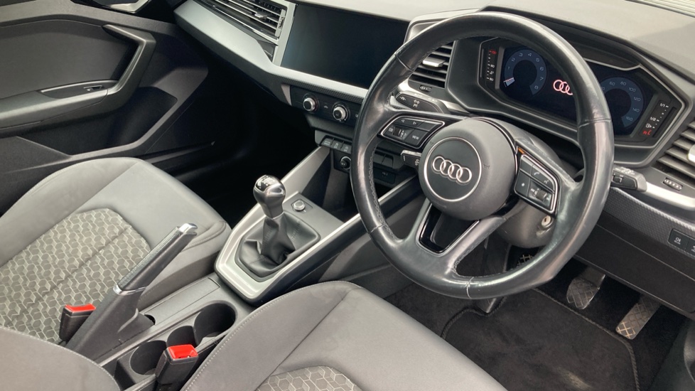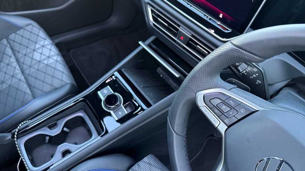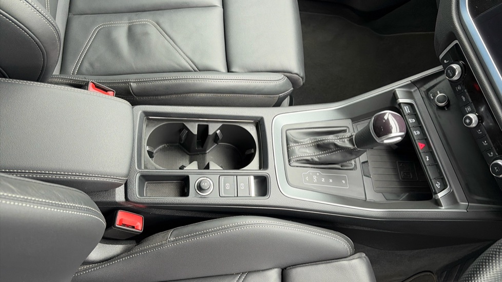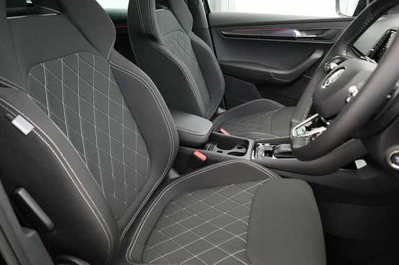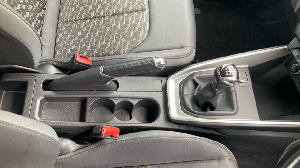 "Narrow centre console with cup holder and compartment for mobile phone",