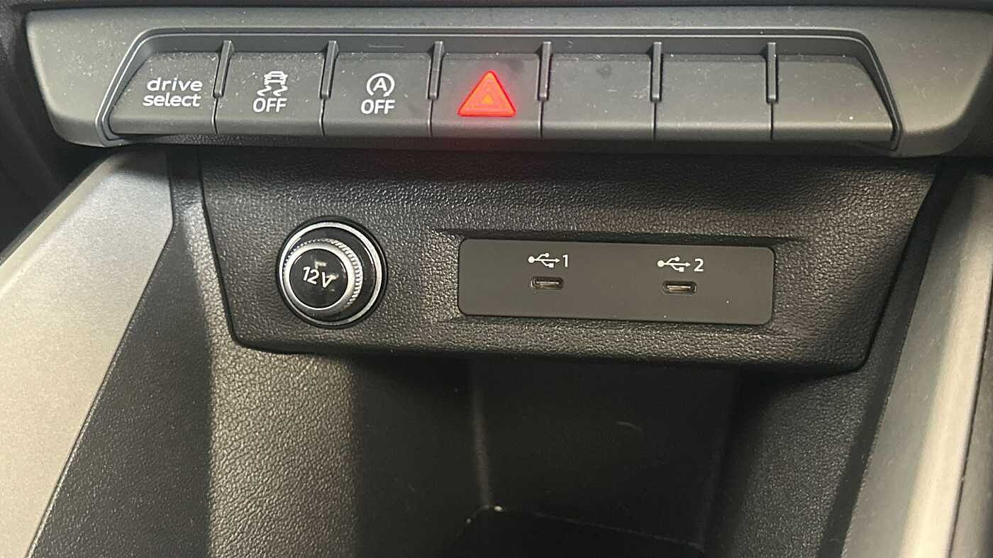 "2x 15-W USB data/charging ports in dashboard and 1x USB-C, 1x USB-A center bottom",