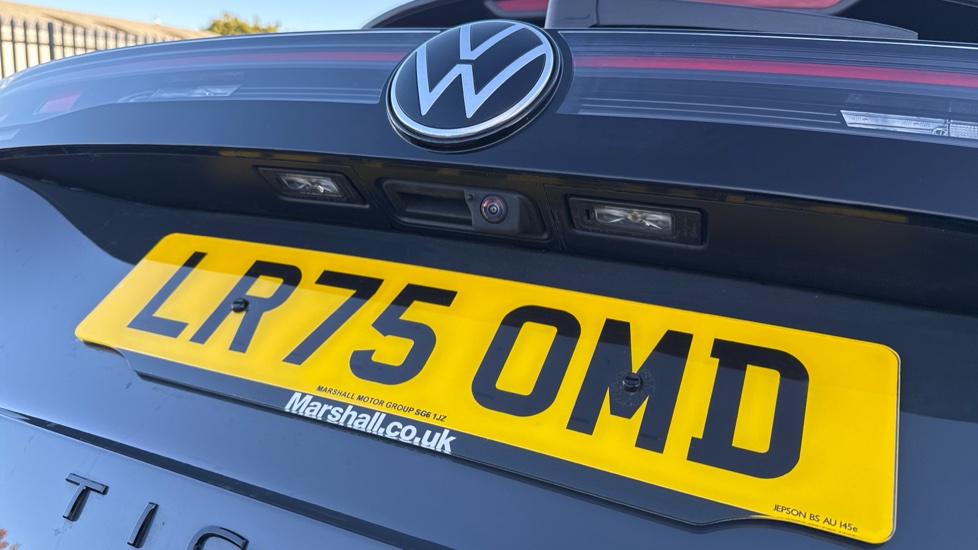 "Rear Transporter nameplate in black grained decorative trim",