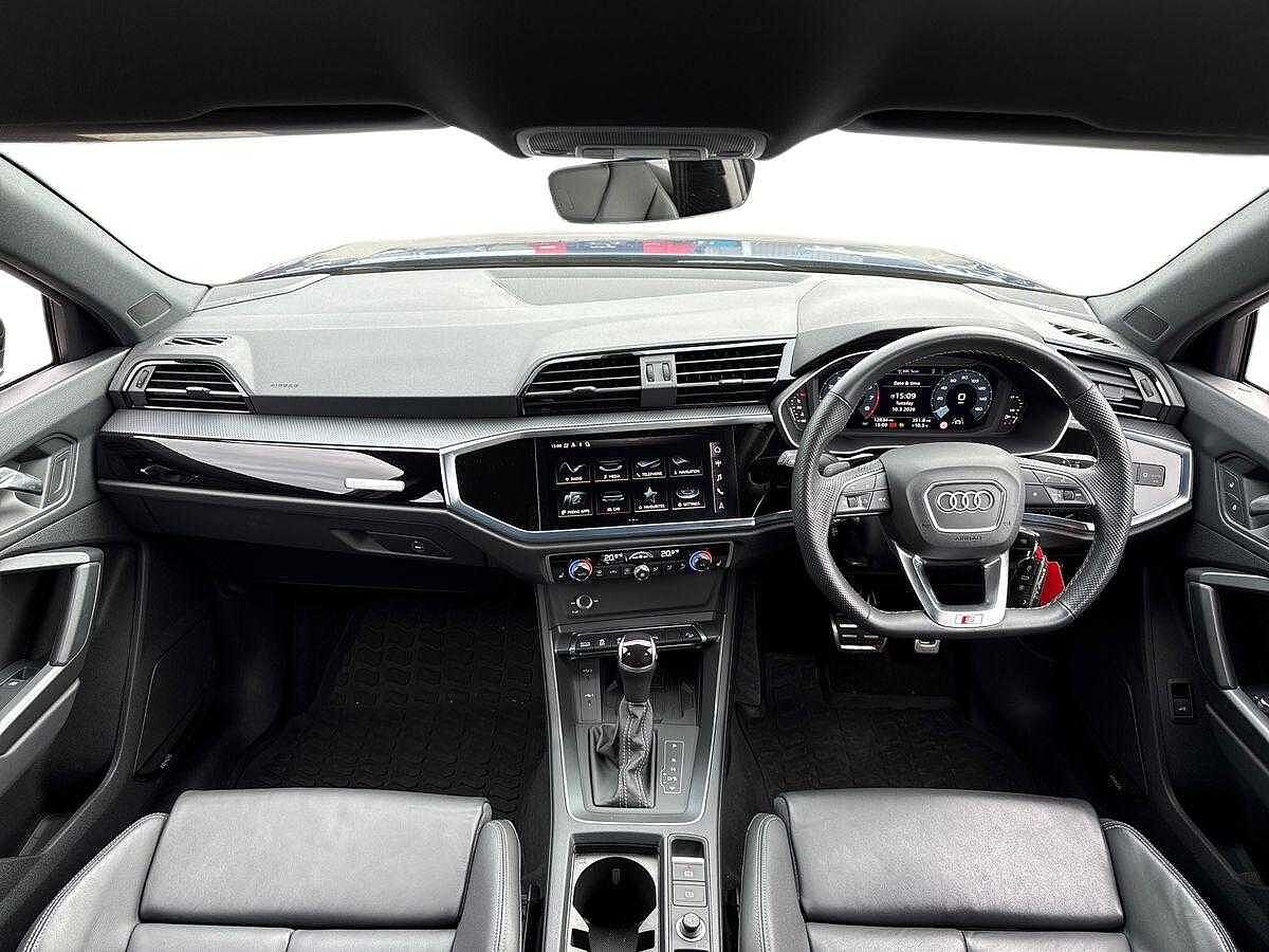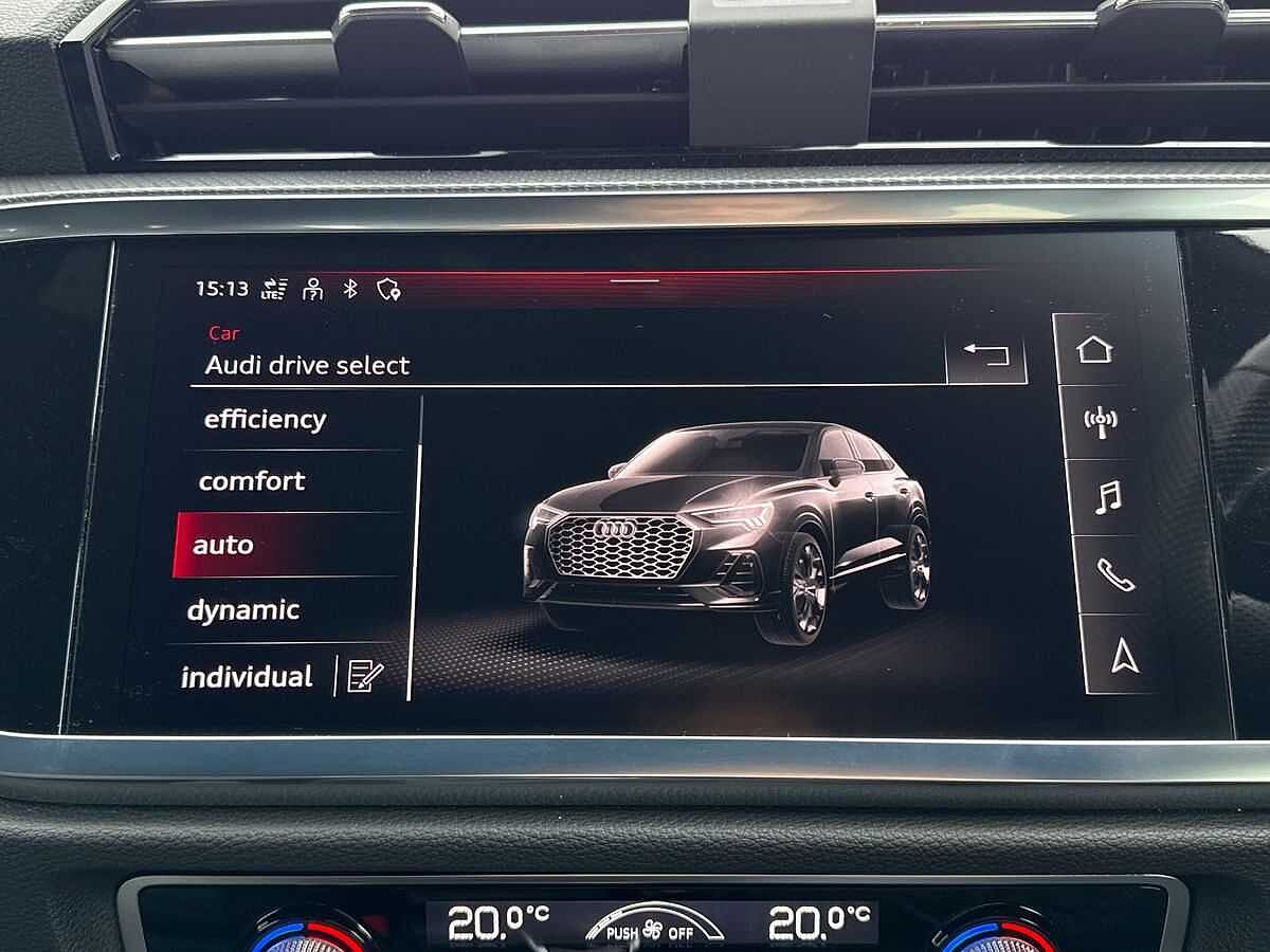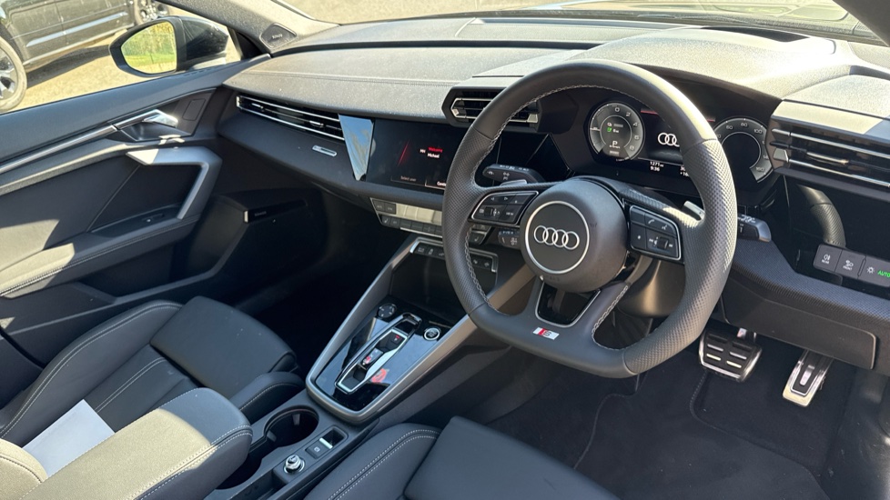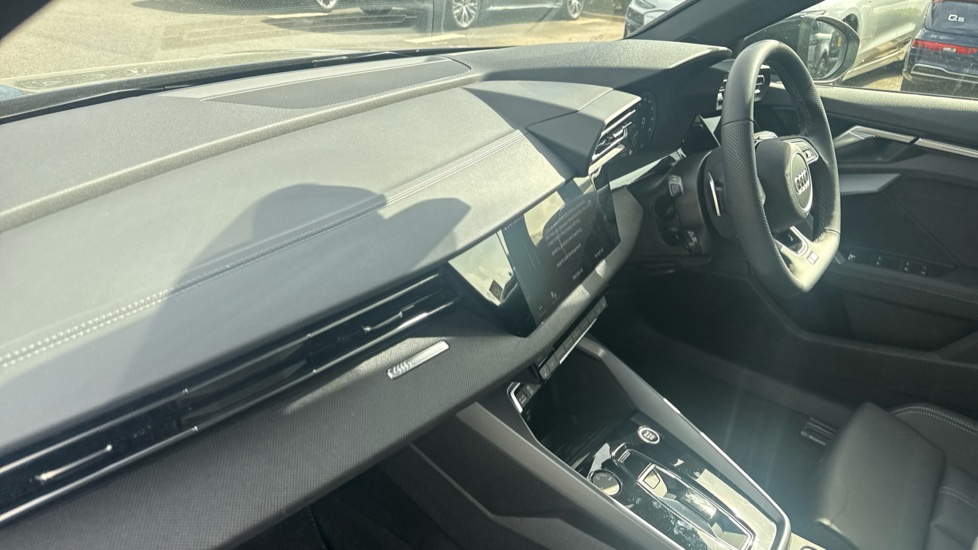 "features": "Audi drive select (Auto, Comfort, Dynamic, Efficiency and Individual), Audi smartphone interface, Audi Virtual Cockpit - 10.25\" digital and colour instrument cluster, Automatic start/stop system with recuperation, Bluetooth interface, Camera based traffic sign recognition, Collision avoidance assistant, e-Call (emergency call), Electromechanical power speed sensitive steering, Lane departure warning system, MMI Navigation Plus with high resolution 10.1\" colour touch screen display, Service indicator, Trip computer, Voice control system with natural language interaction, Sports suspension, 2xUSB-C connection with data and charging functions, DAB Digital radio, 3rd brake light, Acoustic glass windscreen, Aluminium window trim, Auto dimming frameless rear view mirror, Body colour exterior mirrors, Electrically adjustable/heated/folding/auto dimming door mirrors with integrated LED indications + kerb view function for passenger side, Front electric windows, Illuminated aluminium inserts front door sills with S logo, LED daytime running lights, Light and rain sensors, Privacy glass - dark tinted rear window, rear door and side windows, Rear electric windows, Rear side air outlets in grained matt black, Rear side wing doors, Rear wiper, S line bumpers, S roof spoiler, 12V socket and storage compartment in front centre console, 3 seat bench in 2nd row, 3 spoke leather multifunction steering wheel with paddle shift, 4 way electrically adjustable lumbar support for driver and front passenger, 60/40 split folding rear seat bench, Black cloth headlining, Dual zone electronic climate control, Front and rear centre armrest in leather, Front and rear headrests, Front/rear floor mats, Height and reach adjustable steering wheel, Interior lighting - glove compartment light and right hand side, Luggage compartment floor covering, Manual boot compartment lid, Seat side bolsters, Single front passenger seat, Stainless steel pedals and front footrest in black, Twin leather upholstery with front sports seats S embossed logo, Aluminium interior elements pack - A3 Sportback, LED interior lighting pack - A3 Sportback, S line styling pack - A3 Sportback, Technology pack pro with 360 camera - A3 Sportback, 3x3 point rear seat belts, Driver and front passenger airbag with passenger airbag deactivation, Electronic Stabilisation Control (ESC) including ABS, ASR and EDL, First aid kit with warning triangle and 2 safety vests, Front side airbags with head airbags and interaction airbag, Pre-sense front with pedestrian and cyclist detection, Seatbelt monitoring, Tyre pressure loss indicator, Anti theft alarm, Anti-theft wheel bolts, Electronically operated child lock, Immobiliser, Remote control central locking, Dark spectrum aluminium inlays, accent surfaces in the dashboard and centre console in platinum grey silk effect paint finish, ",