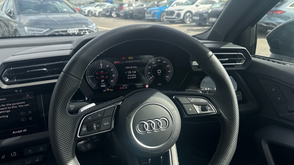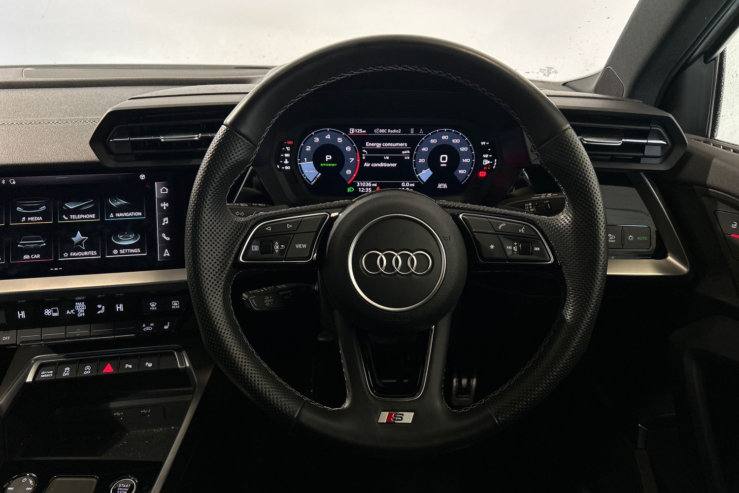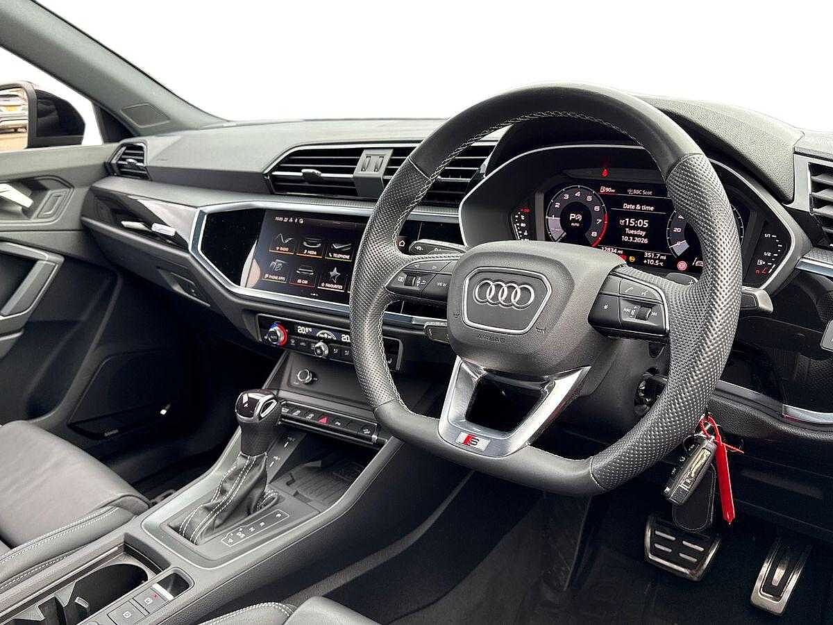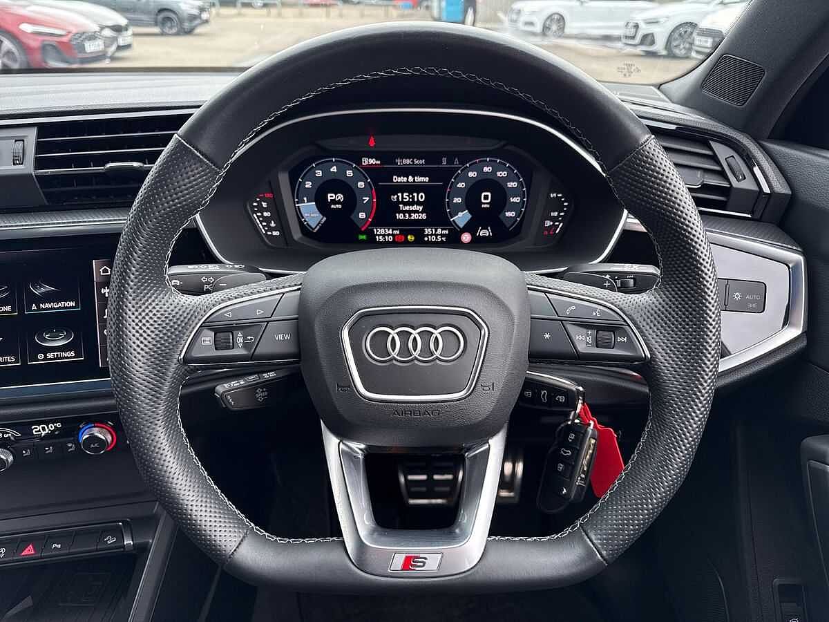 "features": "Audi drive select (Auto, Comfort, Dynamic, Efficiency and Individual), Audi smartphone interface, Audi Virtual Cockpit - 10.25\" digital and colour instrument cluster, Automatic start/stop system with recuperation, Bluetooth interface, Camera based traffic sign recognition, Collision avoidance assistant, e-Call (emergency call), Electromechanical power speed sensitive steering, Lane departure warning system, MMI Navigation Plus with high resolution 10.1\" colour touch screen display, Service indicator, Trip computer, Voice control system with natural language interaction, Sports suspension, 2xUSB-C connection with data and charging functions, DAB Digital radio, 3rd brake light, Acoustic glass windscreen, Aluminium window trim, Auto dimming frameless rear view mirror, Body colour exterior mirrors, Electrically adjustable/heated/folding/auto dimming door mirrors with integrated LED indications + kerb view function for passenger side, Front electric windows, Illuminated aluminium inserts front door sills with S logo, LED daytime running lights, Light and rain sensors, Privacy glass - dark tinted rear window, rear door and side windows, Rear electric windows, Rear side air outlets in grained matt black, Rear side wing doors, Rear wiper, S line bumpers, S roof spoiler, 12V socket and storage compartment in front centre console, 3 seat bench in 2nd row, 3 spoke leather multifunction steering wheel with paddle shift, 4 way electrically adjustable lumbar support for driver and front passenger, 60/40 split folding rear seat bench, Black cloth headlining, Dual zone electronic climate control, Front and rear centre armrest in leather, Front and rear headrests, Front/rear floor mats, Height and reach adjustable steering wheel, Interior lighting - glove compartment light and right hand side, Luggage compartment floor covering, Manual boot compartment lid, Seat side bolsters, Single front passenger seat, Stainless steel pedals and front footrest in black, Twin leather upholstery with front sports seats S embossed logo, Aluminium interior elements pack - A3 Sportback, LED interior lighting pack - A3 Sportback, S line styling pack - A3 Sportback, Technology pack pro with 360 camera - A3 Sportback, 3x3 point rear seat belts, Driver and front passenger airbag with passenger airbag deactivation, Electronic Stabilisation Control (ESC) including ABS, ASR and EDL, First aid kit with warning triangle and 2 safety vests, Front side airbags with head airbags and interaction airbag, Pre-sense front with pedestrian and cyclist detection, Seatbelt monitoring, Tyre pressure loss indicator, Anti theft alarm, Anti-theft wheel bolts, Electronically operated child lock, Immobiliser, Remote control central locking, Dark spectrum aluminium inlays, accent surfaces in the dashboard and centre console in platinum grey silk effect paint finish, ",
