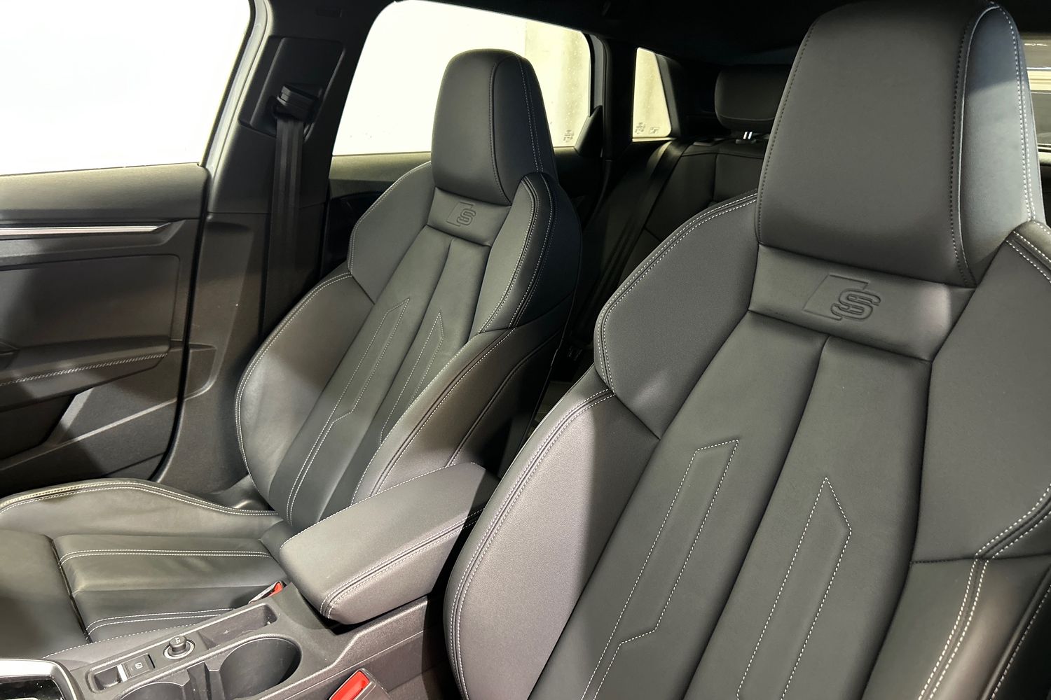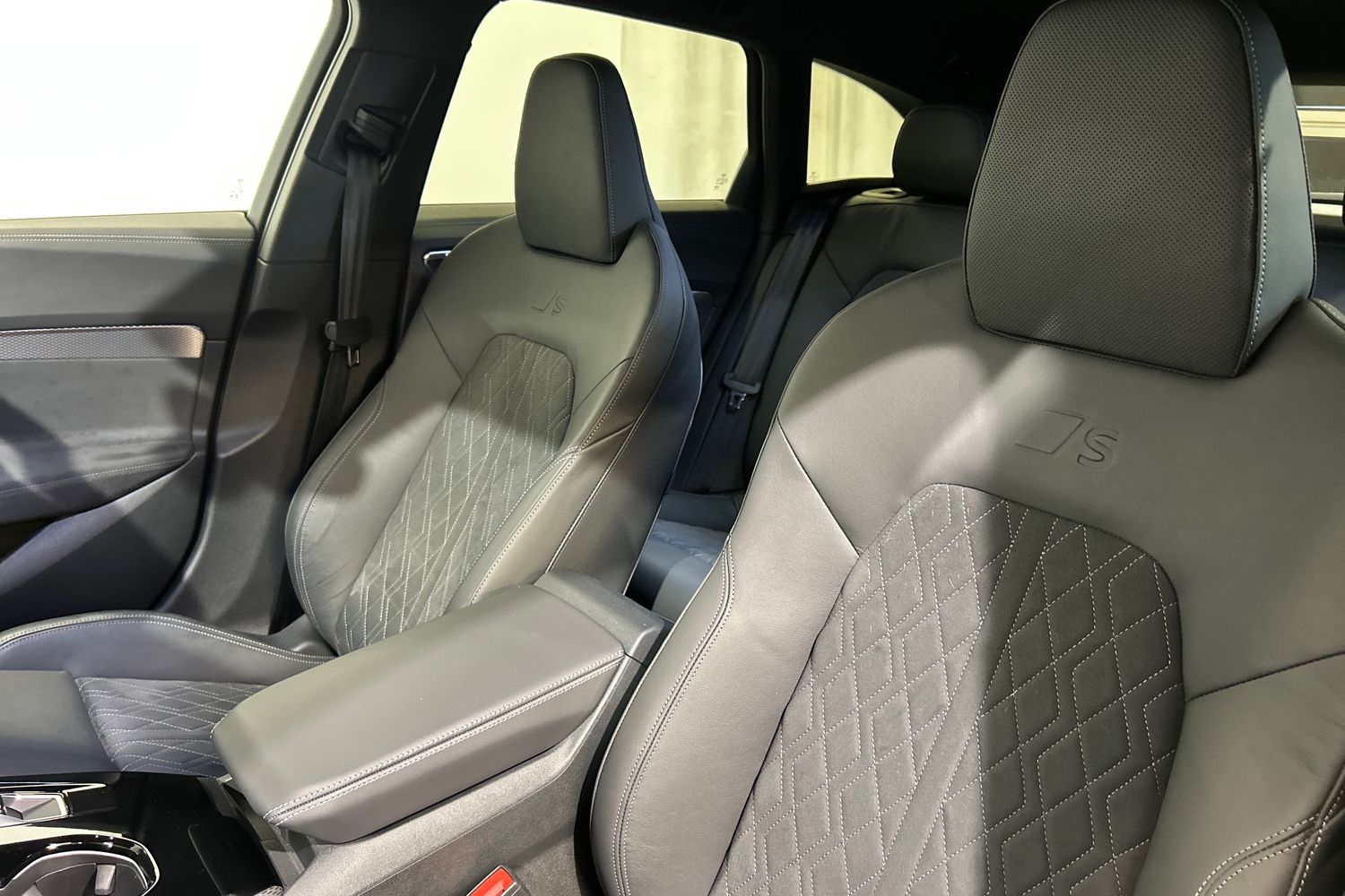 "Front sport seats with integrated headrest and S embossed logo",
