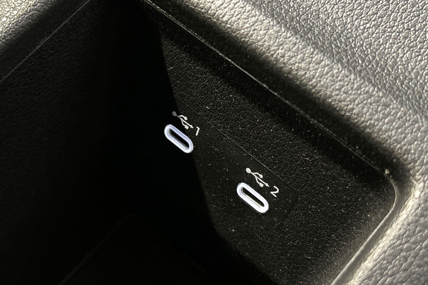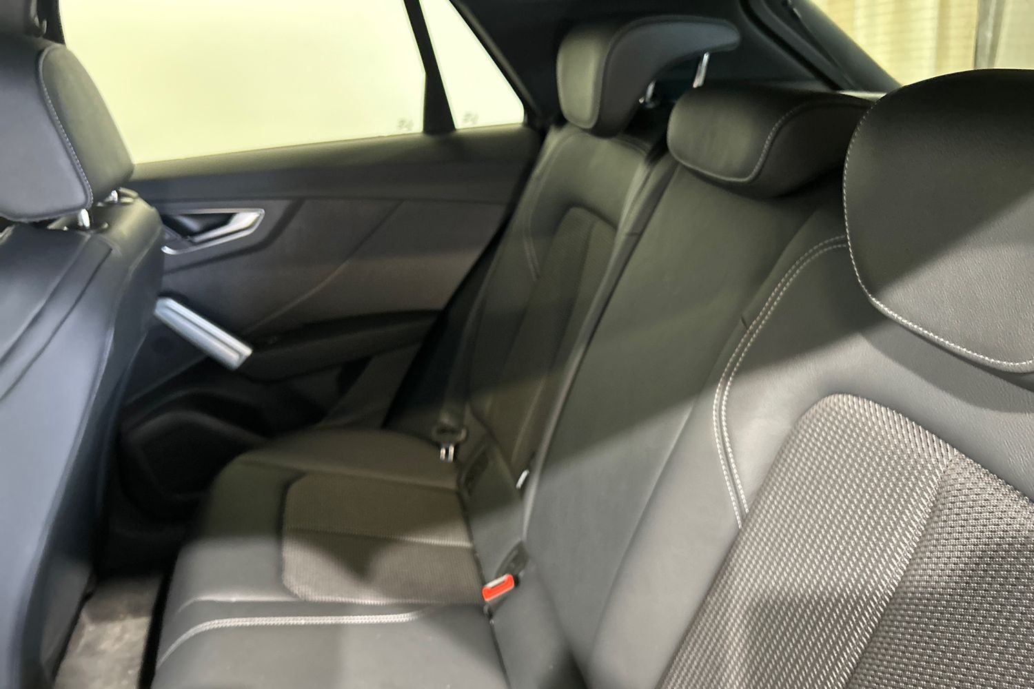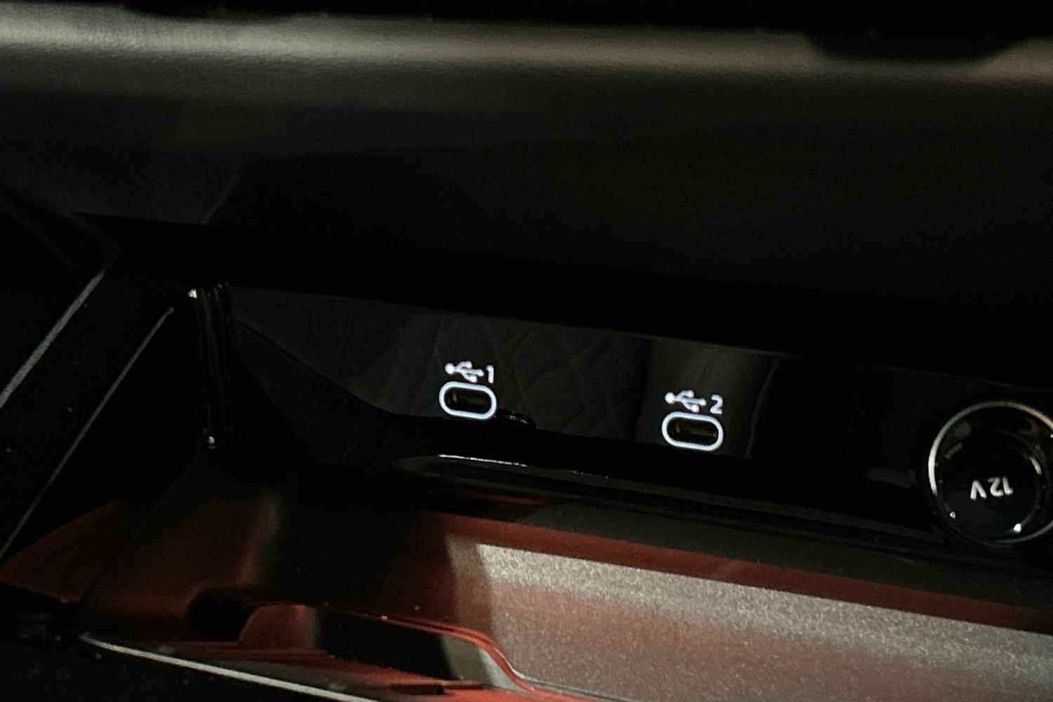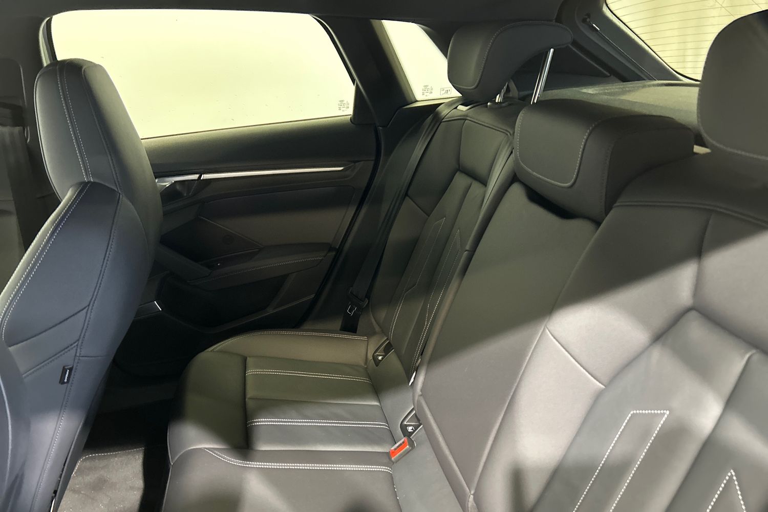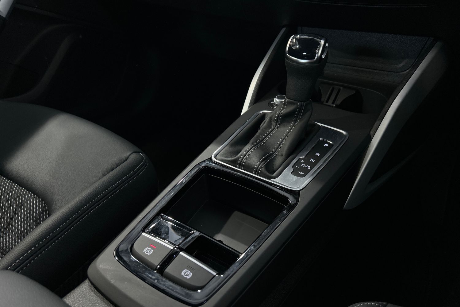 "Black dashboard with contrast stitching",