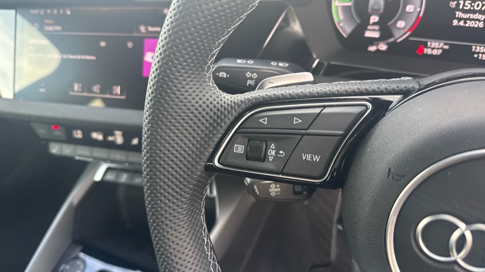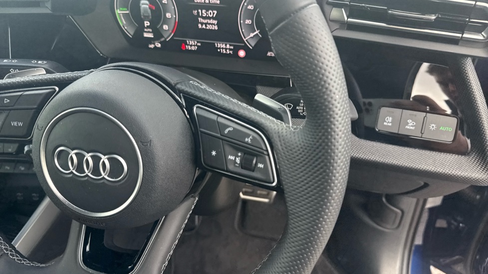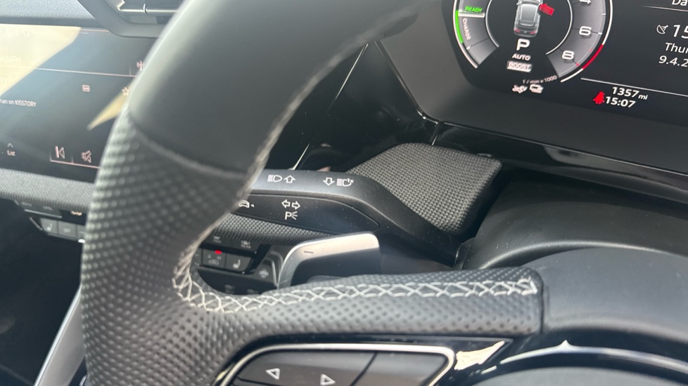 "Steering wheel grips in perforated leather and shift paddles"