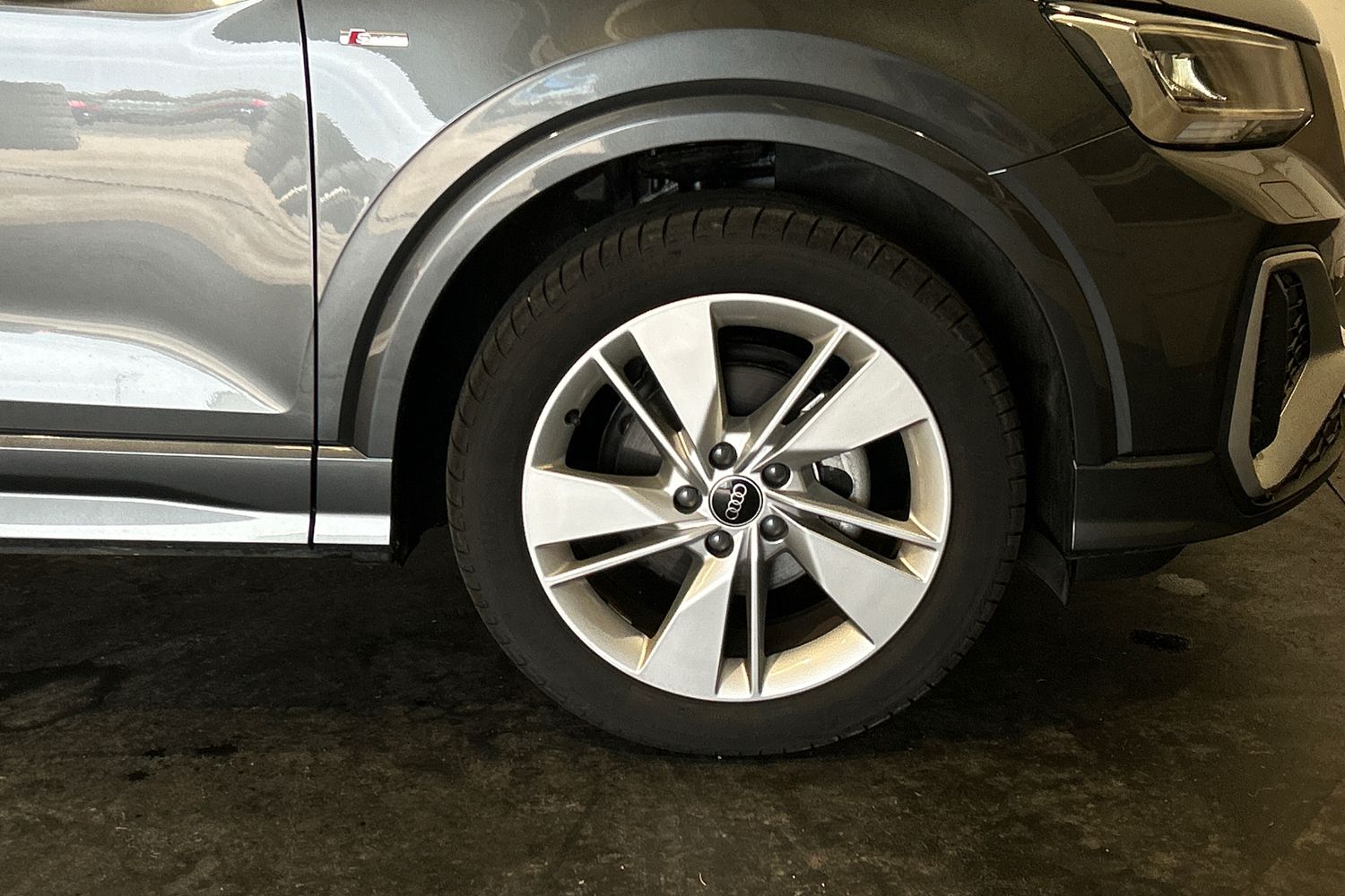 "20\" 5 arm fold design Audi sport alloy wheels in silk matt grey and gloss turned finish",