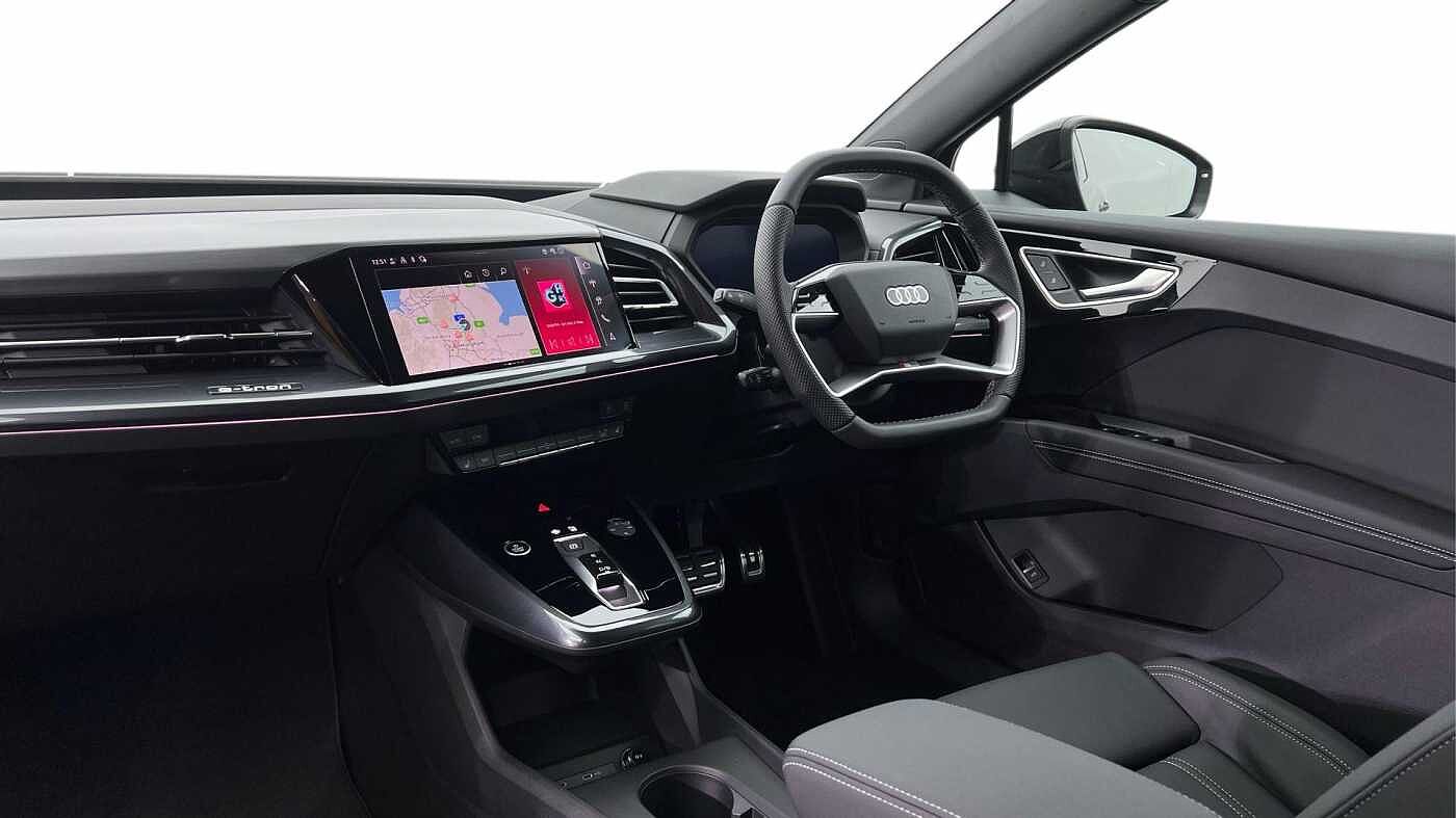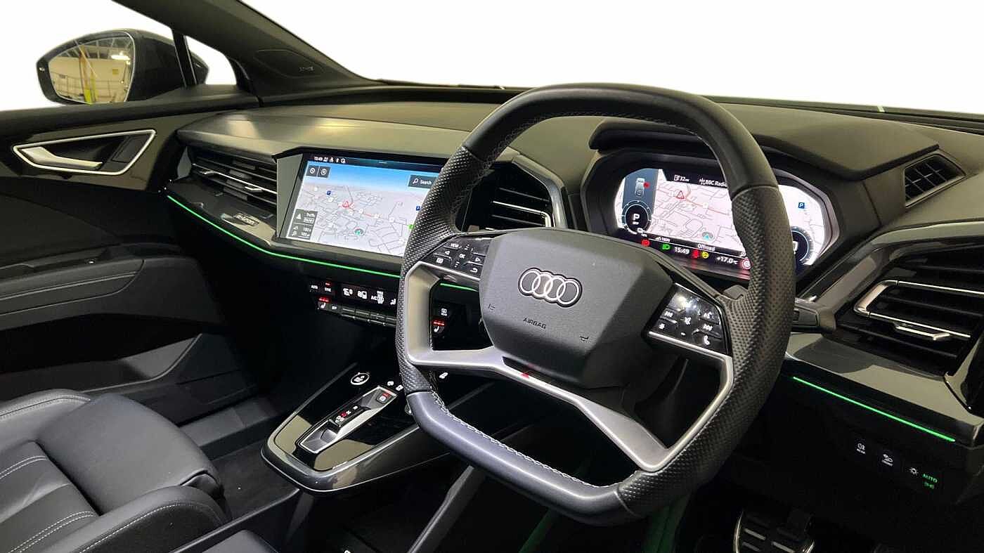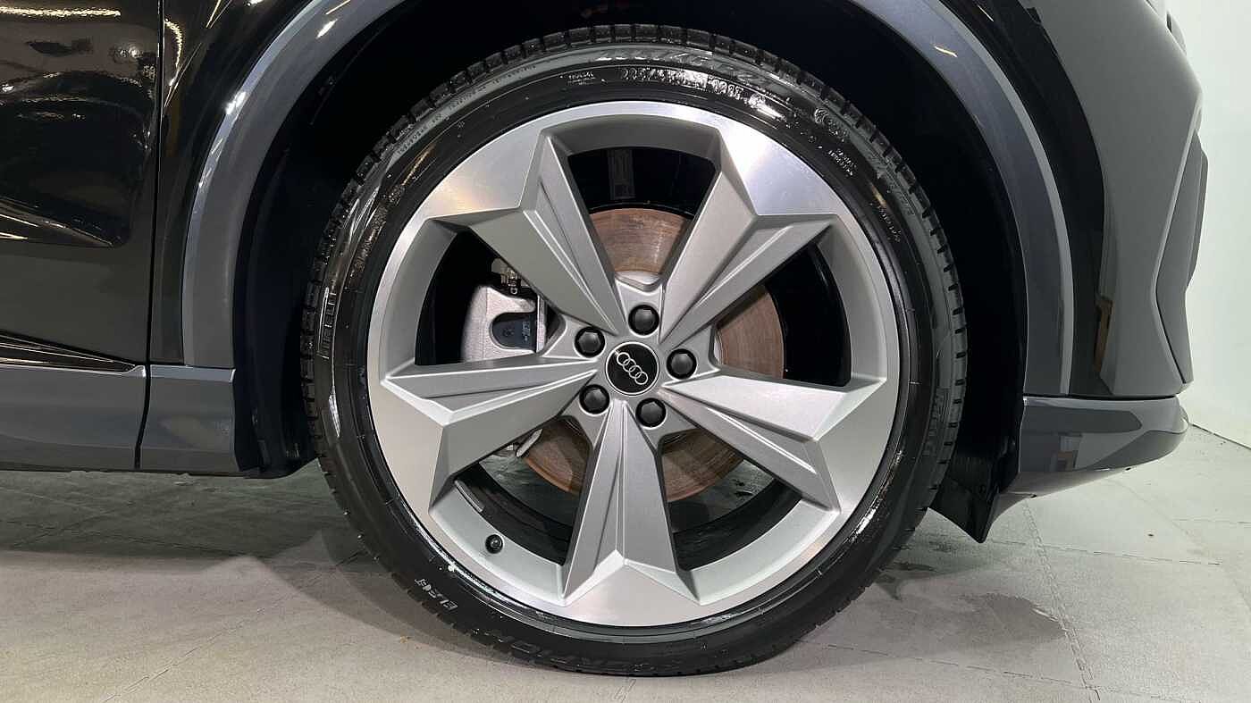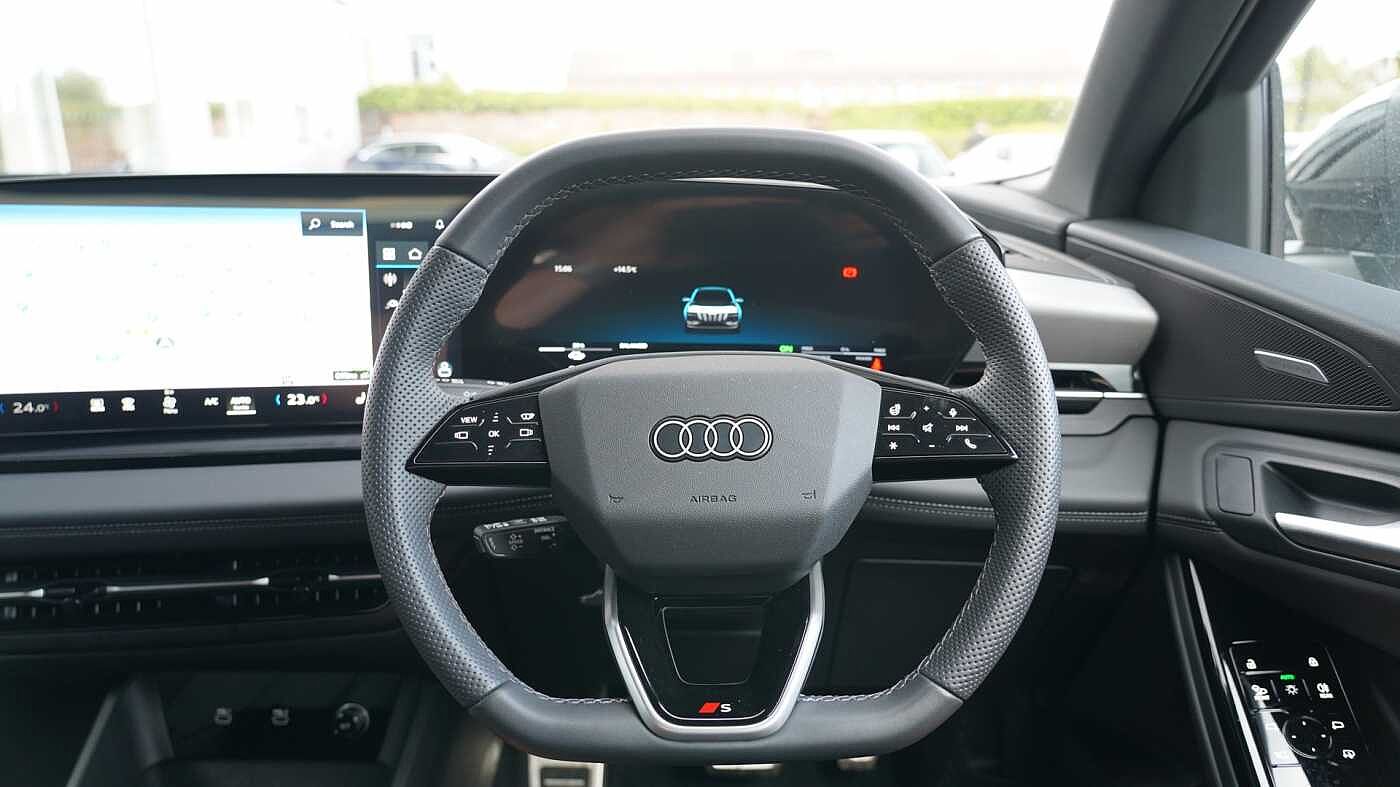 "features": "Adaptive cruise control with speed limiter, Advanced driver attention and drowsiness monitor, Audi application store, Audi connect safety and service (e-call), Audi drive select, Audi smartphone interface, Audi Virtual Cockpit - 10.25\" display, Bluetooth interface, Camera based traffic sign recognition, Lane departure warning including emergency assist, MMI Navigation Plus with high resolution 11.6 inch touchscreen colour display, Power operated tailgate with sensor controlled release, Progressive steering, Rear view camera, Swerve assist and turn assist, 11KW onboard charger, 175kW DC charging capability, AC and DC charging access point positioned on driver's side rear, Control unit with household plug and charging cable, Mode 2, Type 2 / G (10A), Mode 3 type 2 AC charging cable 22kW, Sport suspension, 2 USB-C ports with charge and data functions, Audi sound system with 8 loudspeakers incl. centre speaker, subwoofer and 6-channel amplifier with total output of 180 watts, DAB Digital radio, Audi rings and model badging in black (with powertrain designation removed), Contrast bumpers in Manhattan grey, Door mirror housings in black, Electrically adjustable/heated/folding/auto dimming door mirrors with integrated LED indications + kerb view function for passenger side, Frameless auto dimming interior rear view mirror, Heat insulating glass windscreen, Heated rear window, LED 3rd brake light, LED daytime running lights, LED Headlights, LED rear lights, Privacy glass - dark-tinted rear window, rear door windows and rear side windows, Projection light in the exterior mirrors, e-tron logo projected from the underside of the exterior mirror onto the ground, Rear side wing doors, Rear wiper, S Line badges on the front wings, S line exterior styling, Single frame grille with a structured, closed surface within an octagonal shape, 3 seat bench in 2nd row, 3 zone automatic air conditioning, 4 way electric lumbar support for driver and front passenger, 40/20/40 split folding rear seat bench, Accent surfaces in gloss black - centre console control panel, switch panel and trim on front doors in gloss black, Black cloth headlining, Comfort auxiliary air conditioning, Door armrests in leatherette, Flat top and bottomed twin-spoke leather multifunction sport steering wheel with shift paddles for recuperation, Front centre armrest, Front door sill trims with aluminium inlay, illuminated with S logo, Front sport seats with integrated head restraints, Front/rear floor mats, Heated front seats, Manual seat adjustment for driver and front passenger seats, Pedals in stainless steel, Rear centre armrest with cupholders, Rear head restraints, Single front passenger seat, Ambient lighting plus pack - Q4 E-tron, Black styling pack plus - Q4 E-tron, Non smoking pack - Q4 E-tron, 3x3 point rear seatbelts, Acoustic vehicle alerting system, Convenience key with safelock, Driver and front passenger airbag with passenger airbag deactivation, Electric child locks, First aid kit with warning triangle and vests, Front side airbags with head airbag system and front interaction airbag, i - Size child seat mounting on the front passenger side and i - Size and top tether on the outer rear seats, Pre-sense front with pedestrian and cyclist detection, Rear seat occupant reminder for child presence detection, Seat belt monitoring, Tyre pressure loss indicator, Anti theft alarm, Anti-theft wheel bolts, Keyless Go, Aluminium look interior elements, 21\" 5 arm rotor evo Audi Sport alloy wheels in matt grey, gloss turned finish and tyre seal technology, Vehicle tool kit, ",